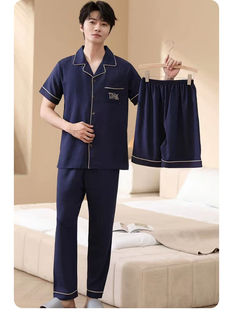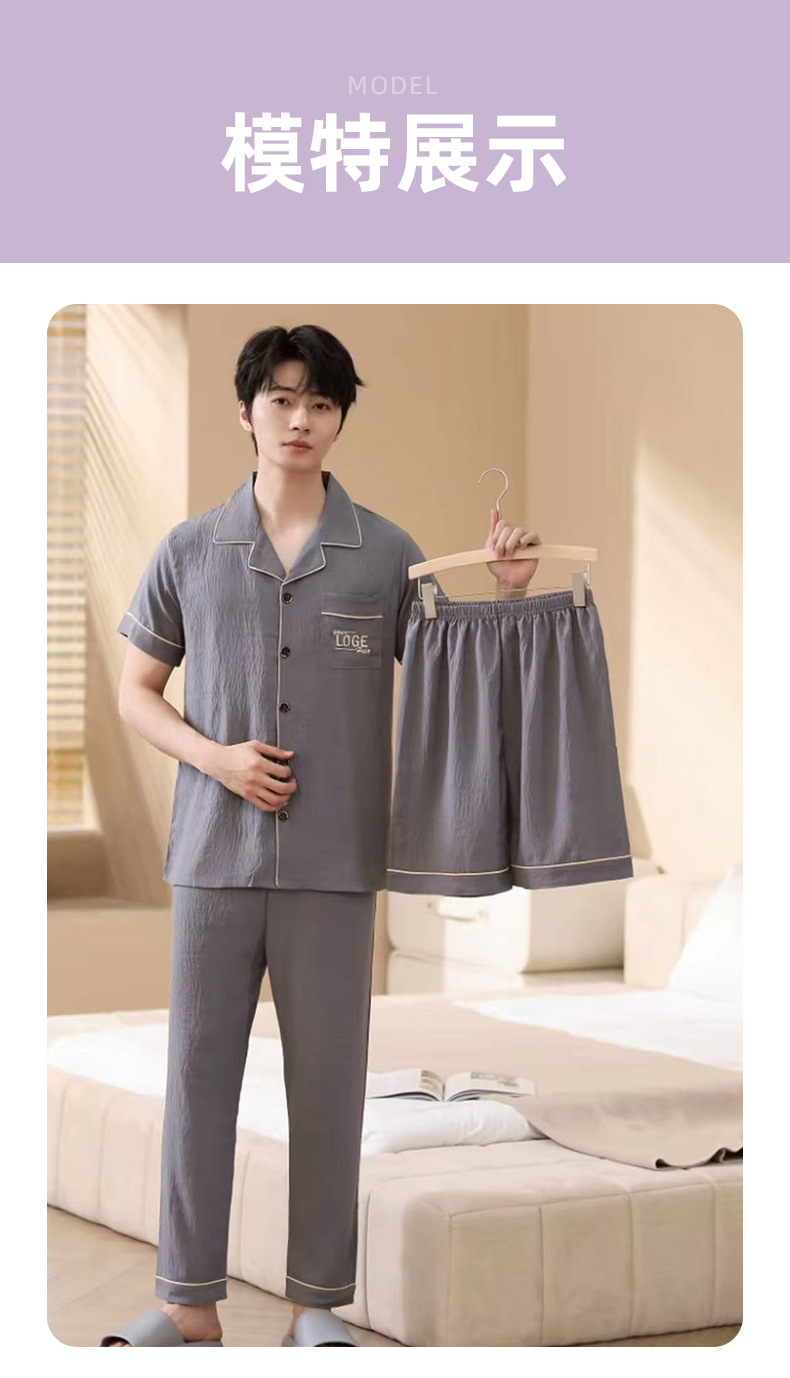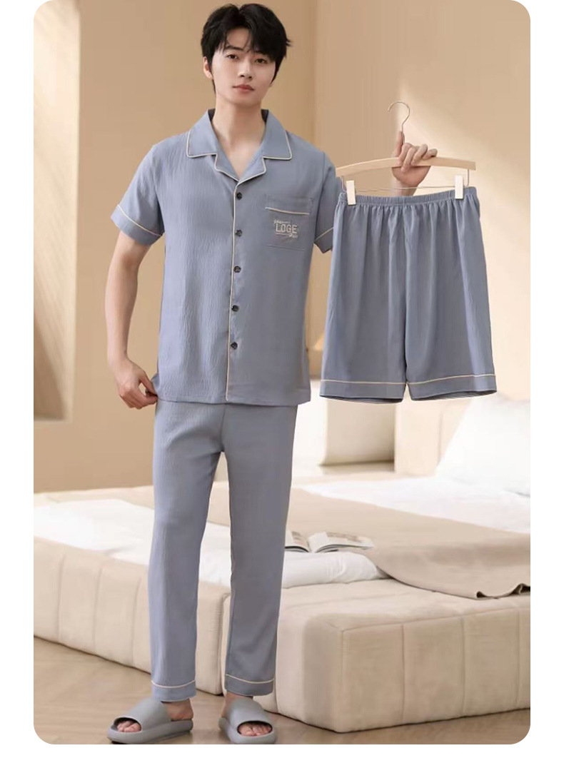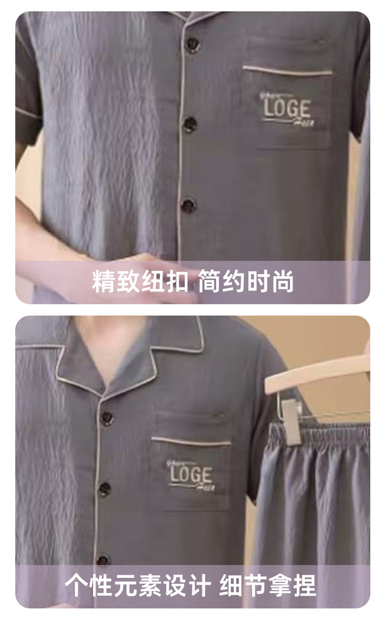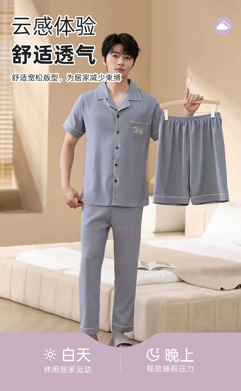 남성용 잠옷 여름 신상품 반팔 얇은 클라우드 스타일 젊은이들을 위한 심플하고 캐주얼하며 피부 친화적인 여름 홈웨어