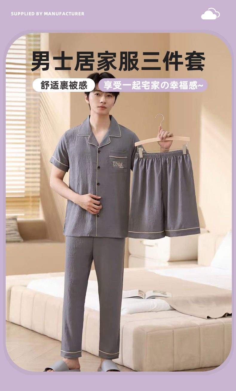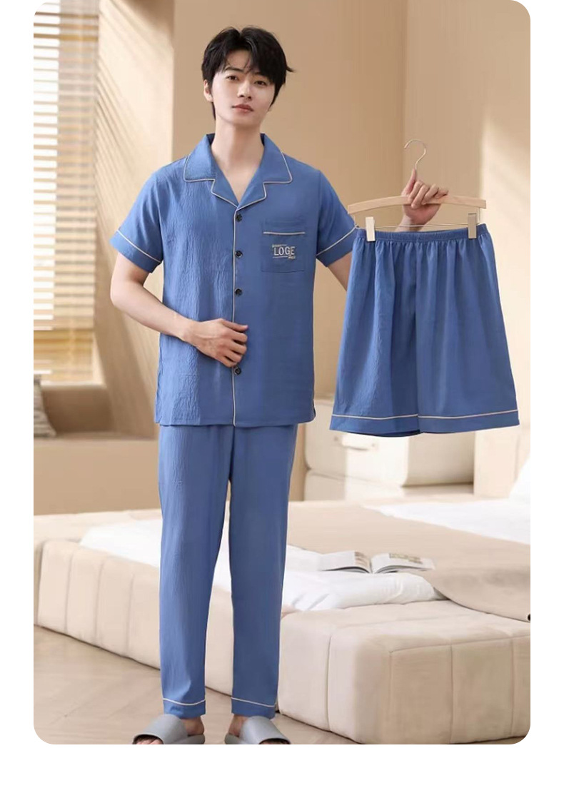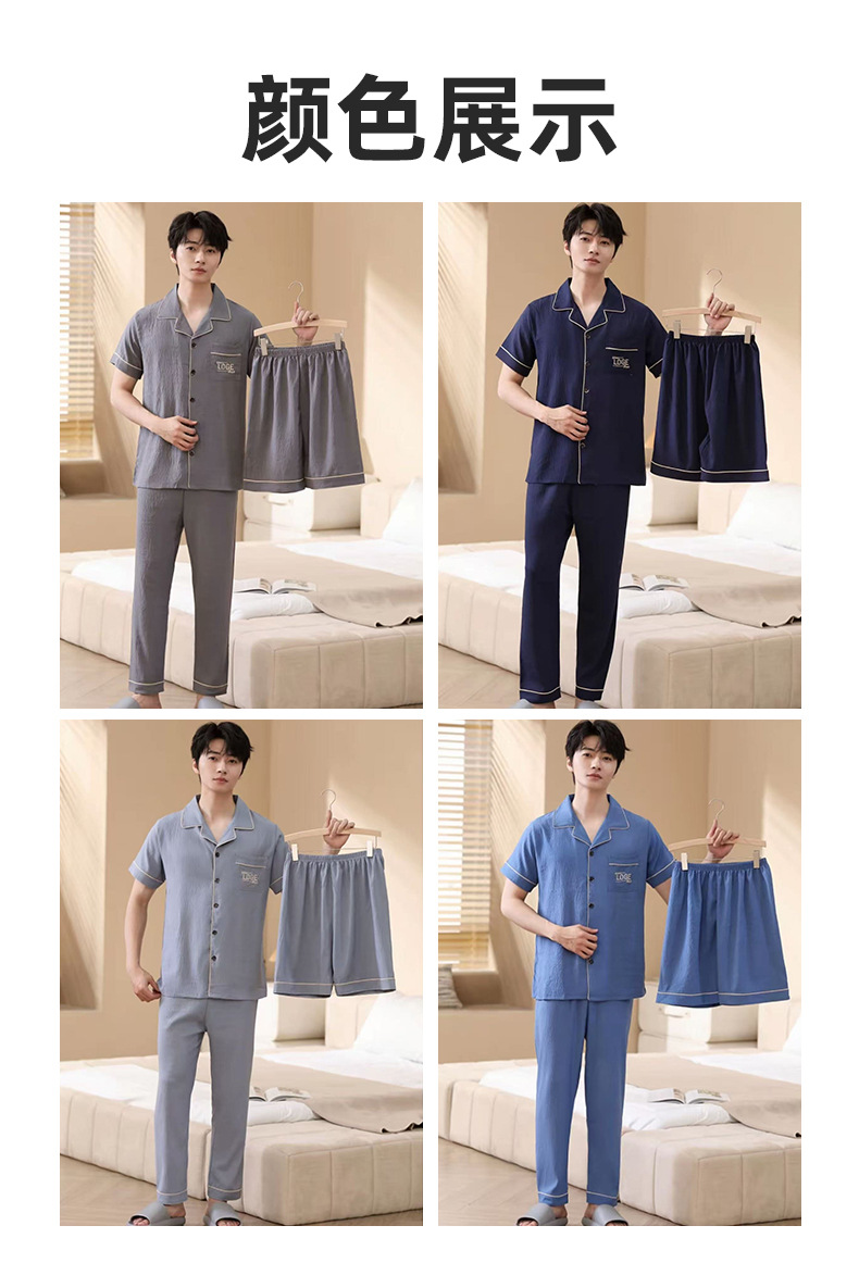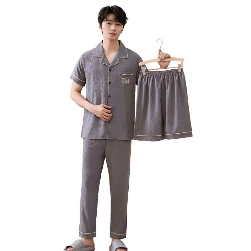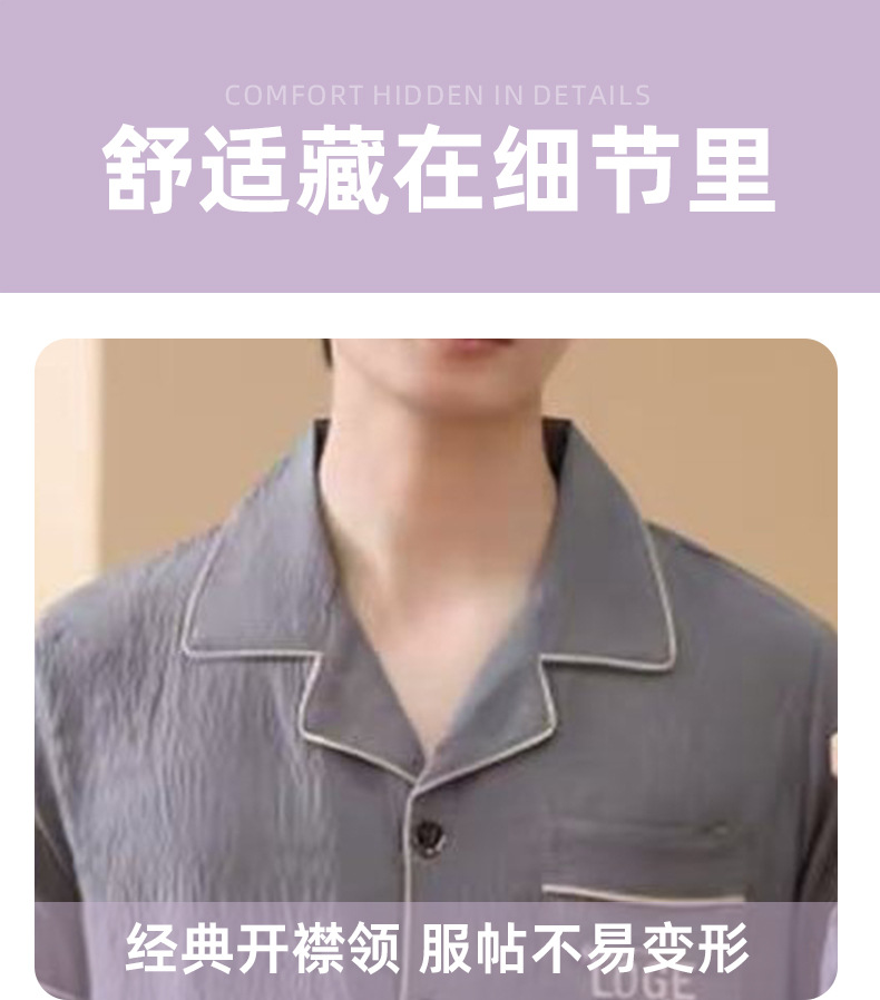 남성용 잠옷 여름 신상품 반팔 얇은 클라우드 스타일 젊은이들을 위한 심플하고 캐주얼하며 피부 친화적인 여름 홈웨어