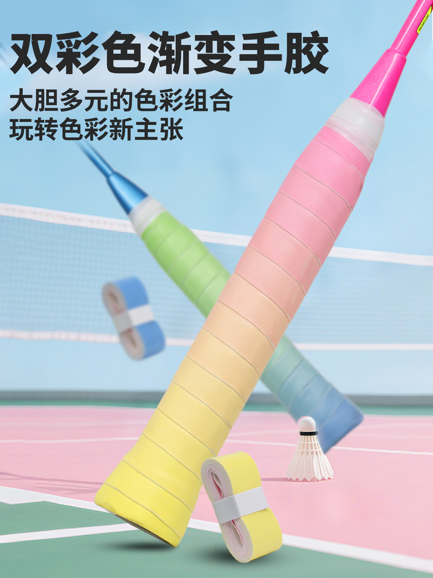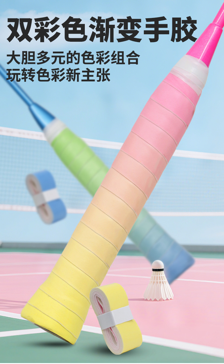 2색 그라데이션 핸들, 스트랩, 깃털 라켓, 메쉬 라켓, 평면 핸드 글루, 얇은 낚싯대, 새총, 미끄럼 방지 접착식 땀 흡수 밴드