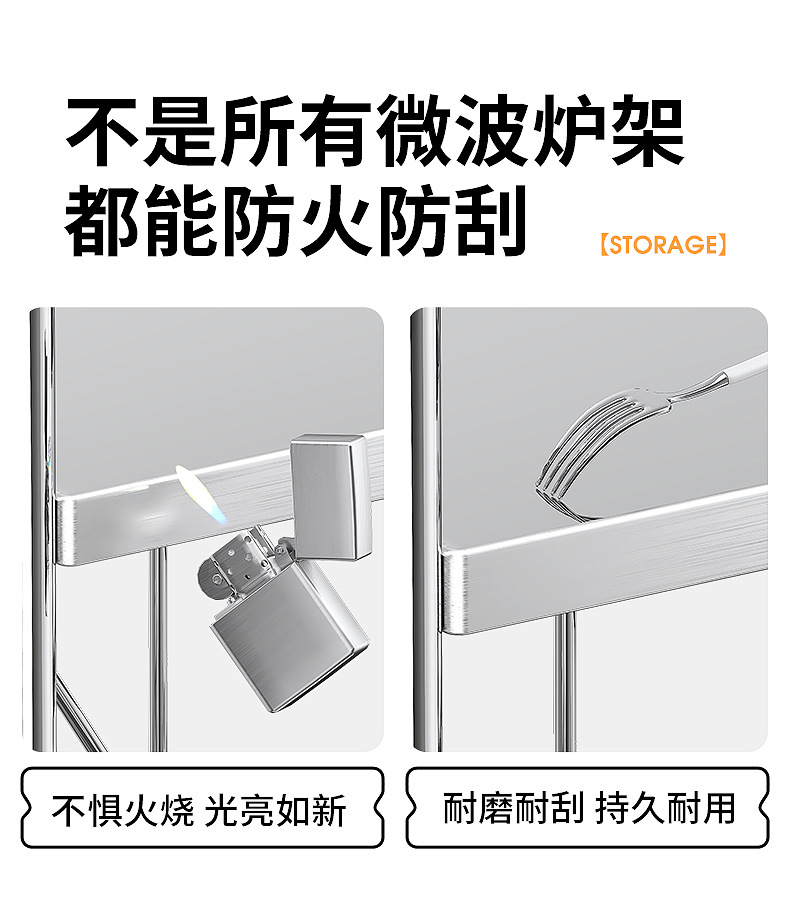 바퀴가 없는 은색 전자레인지 선반 더블 레이어 완비