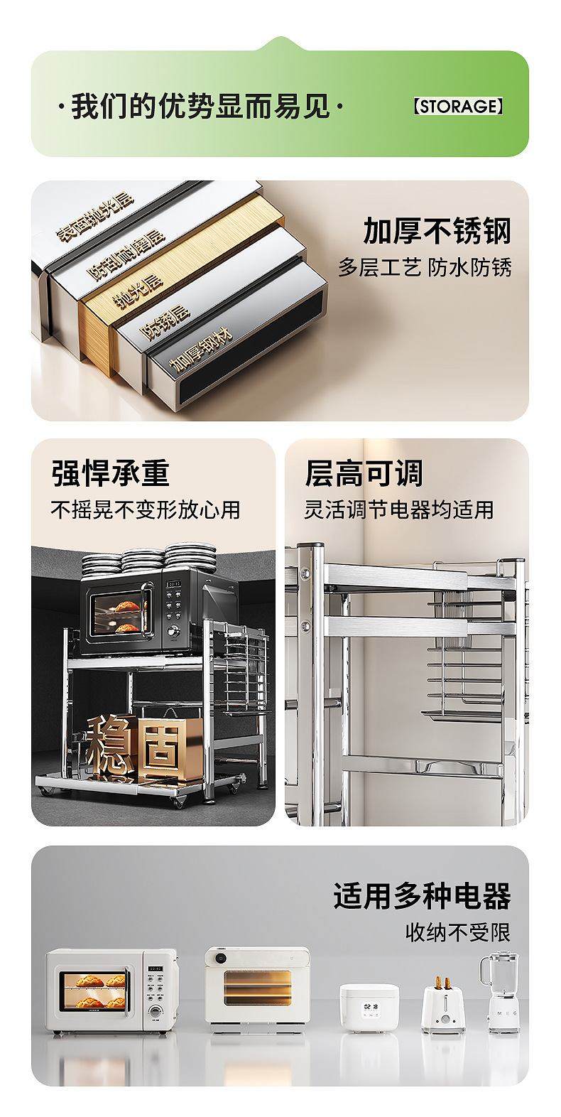 스테인레스 스틸 주방 선반 조리대 다층 전자 레인지 랙 데스크탑 스토리지 스토브 밥솥 홀더 파티션