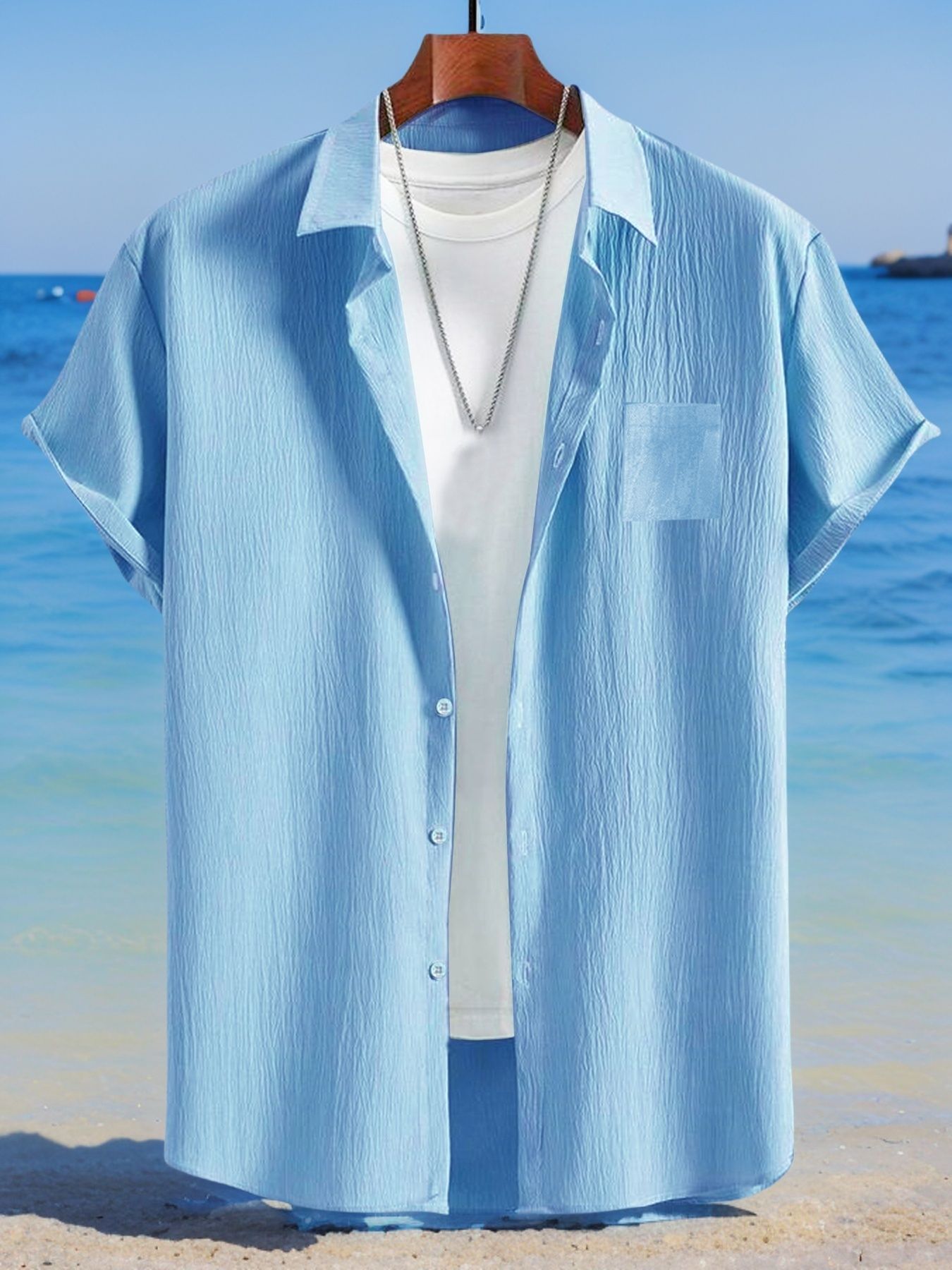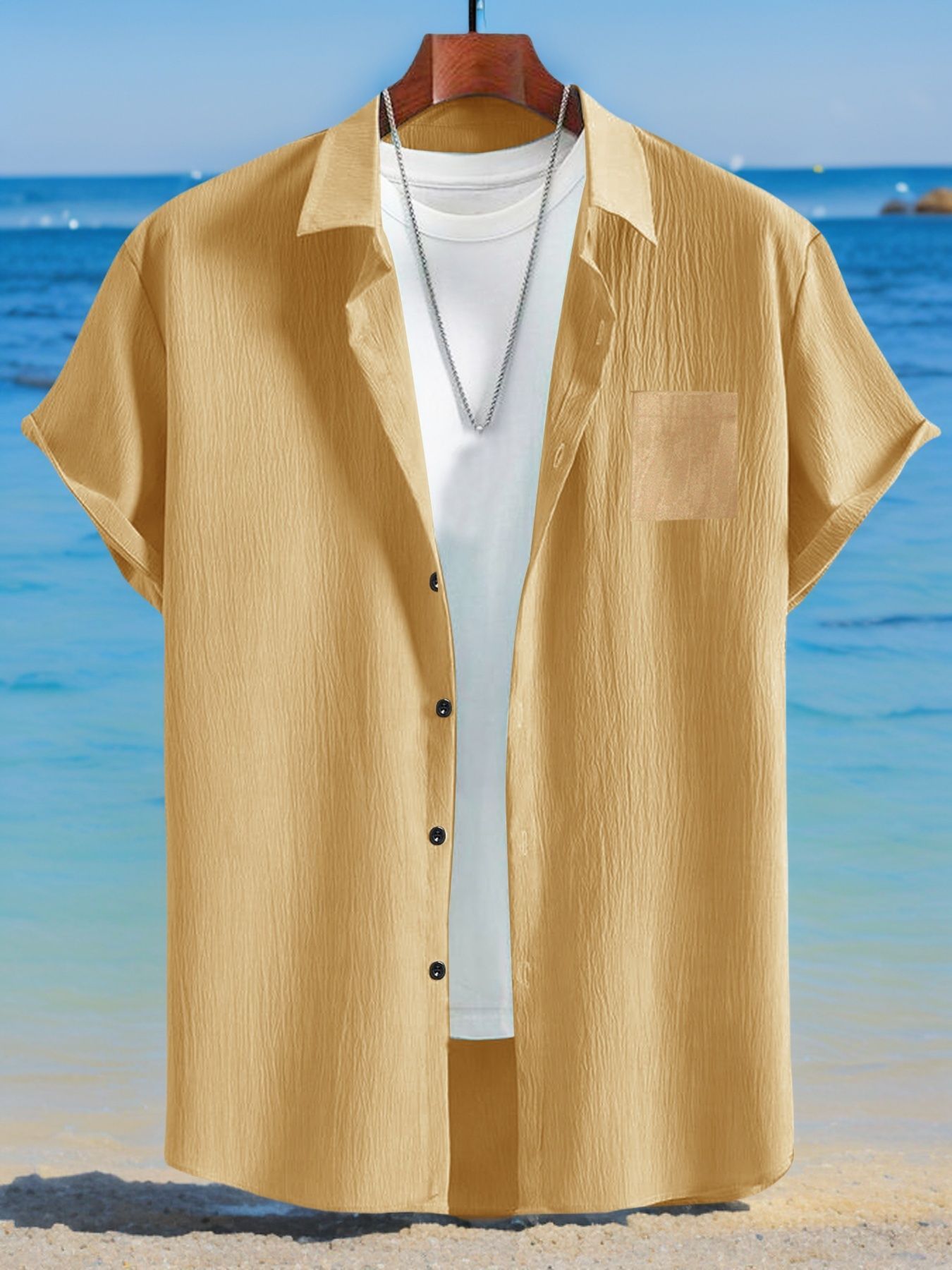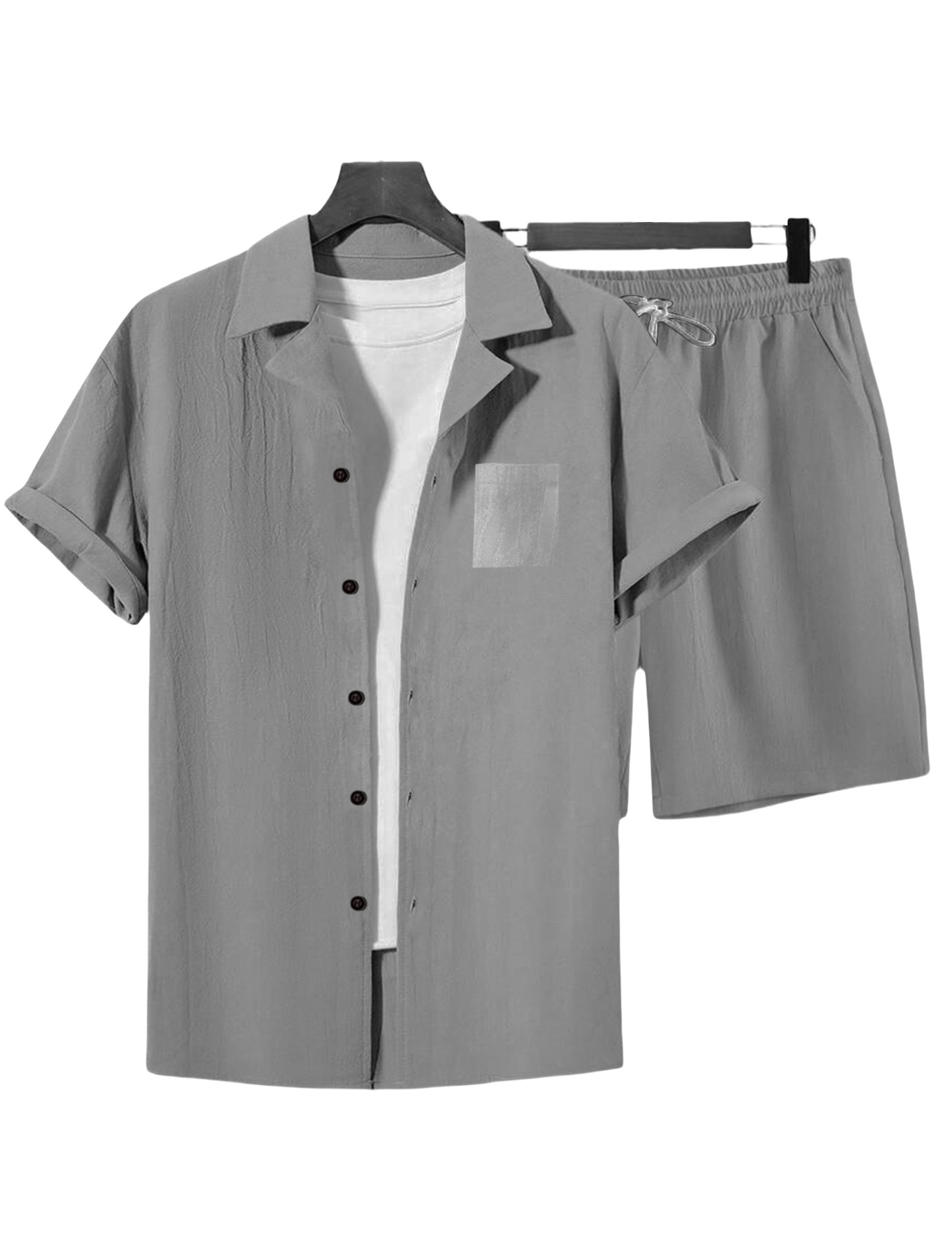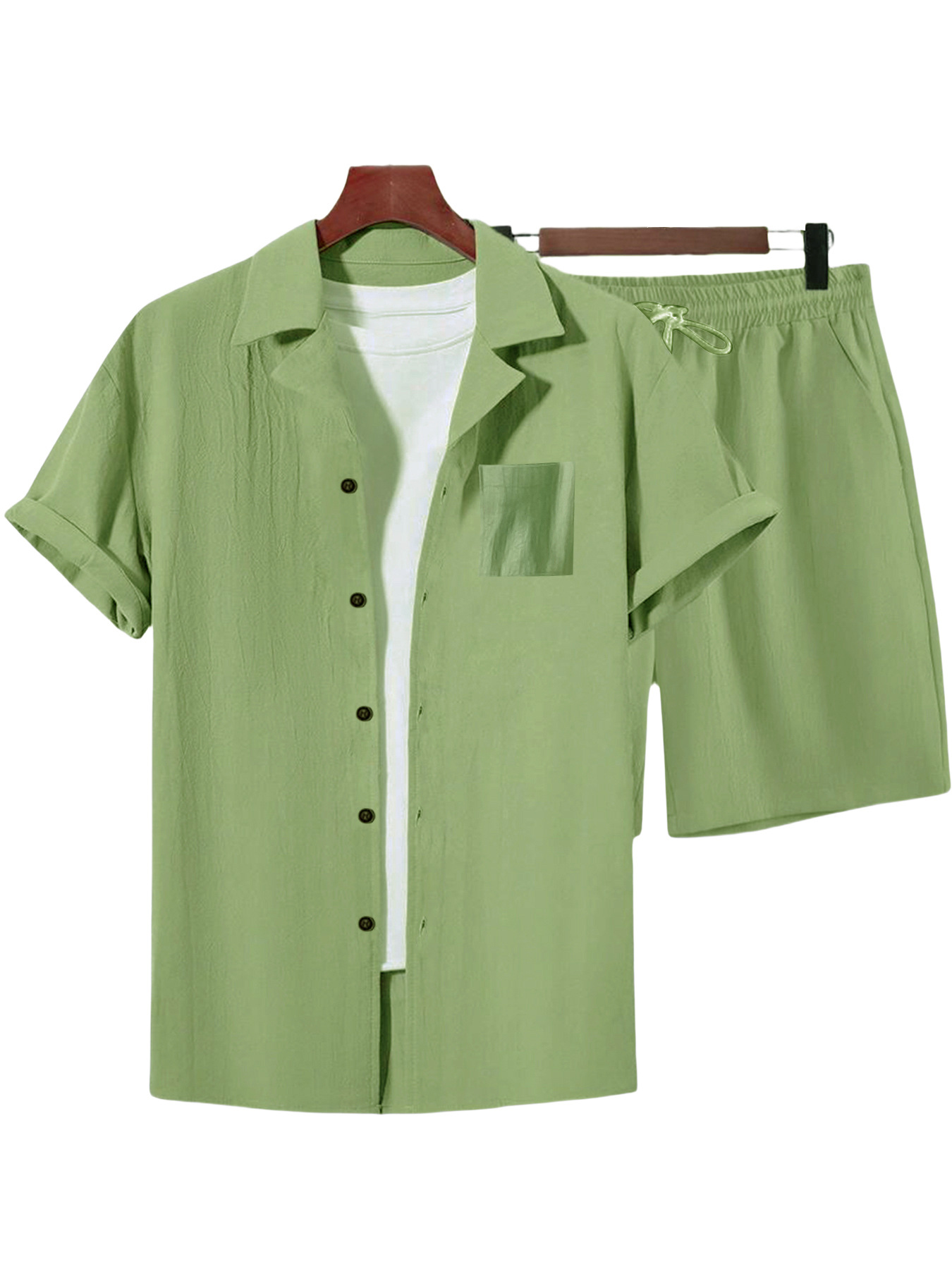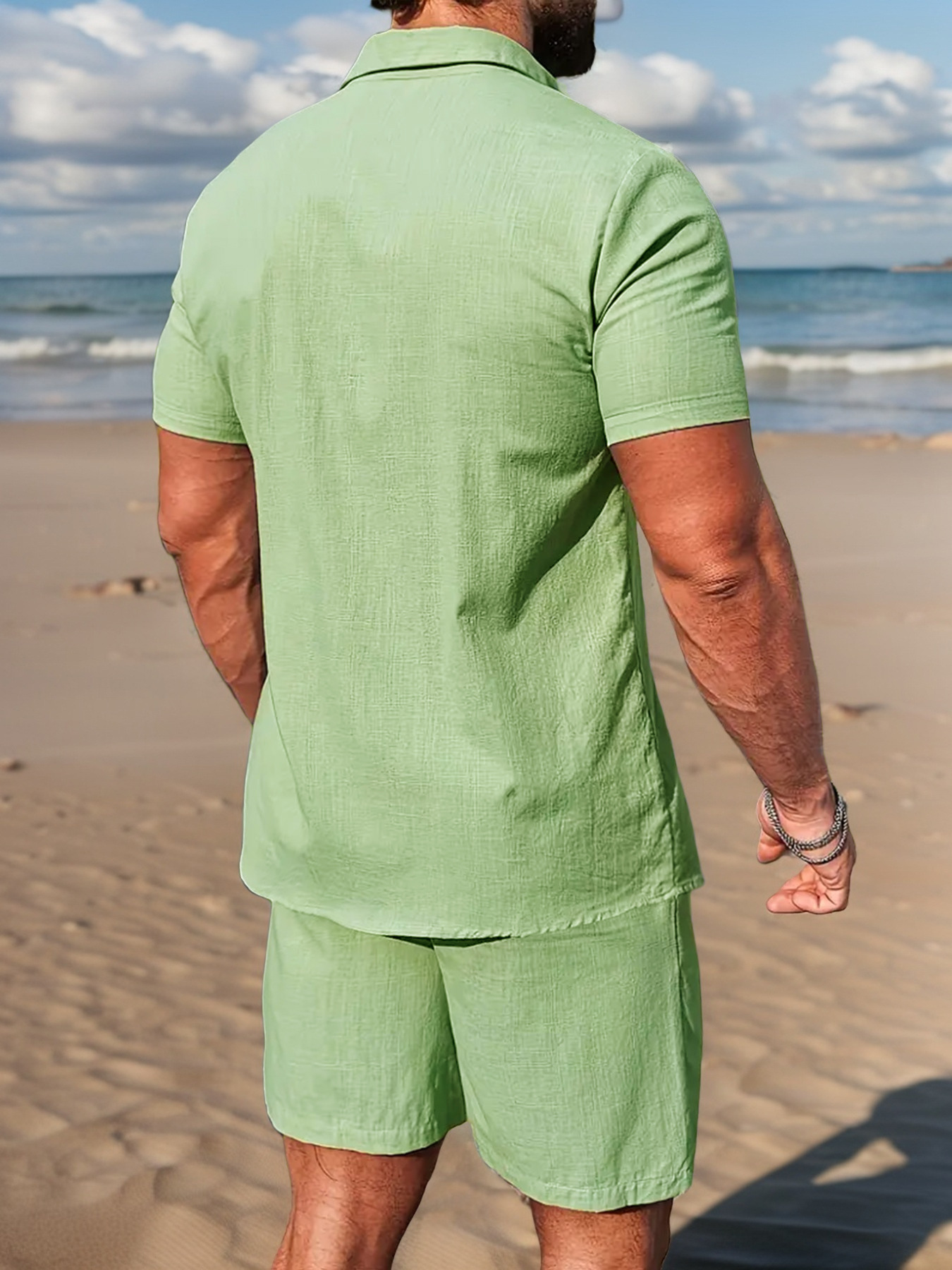 국경 간 유럽과 미국 남성 캐주얼 정장 리넨 느슨한 버튼 옷깃 셔츠 솔리드 컬러 야외 비치 바지 정장