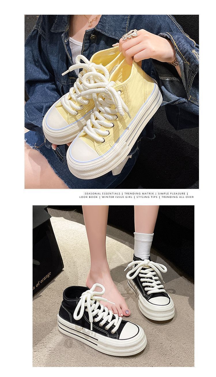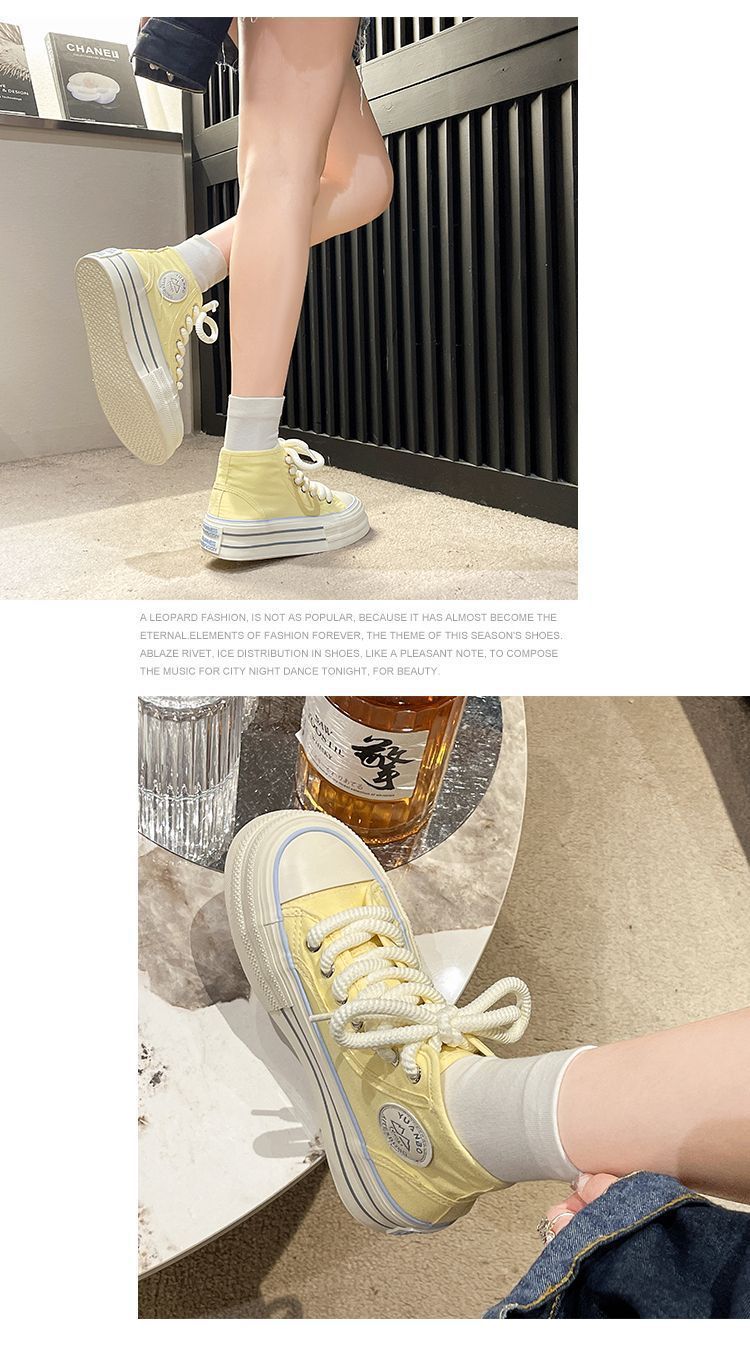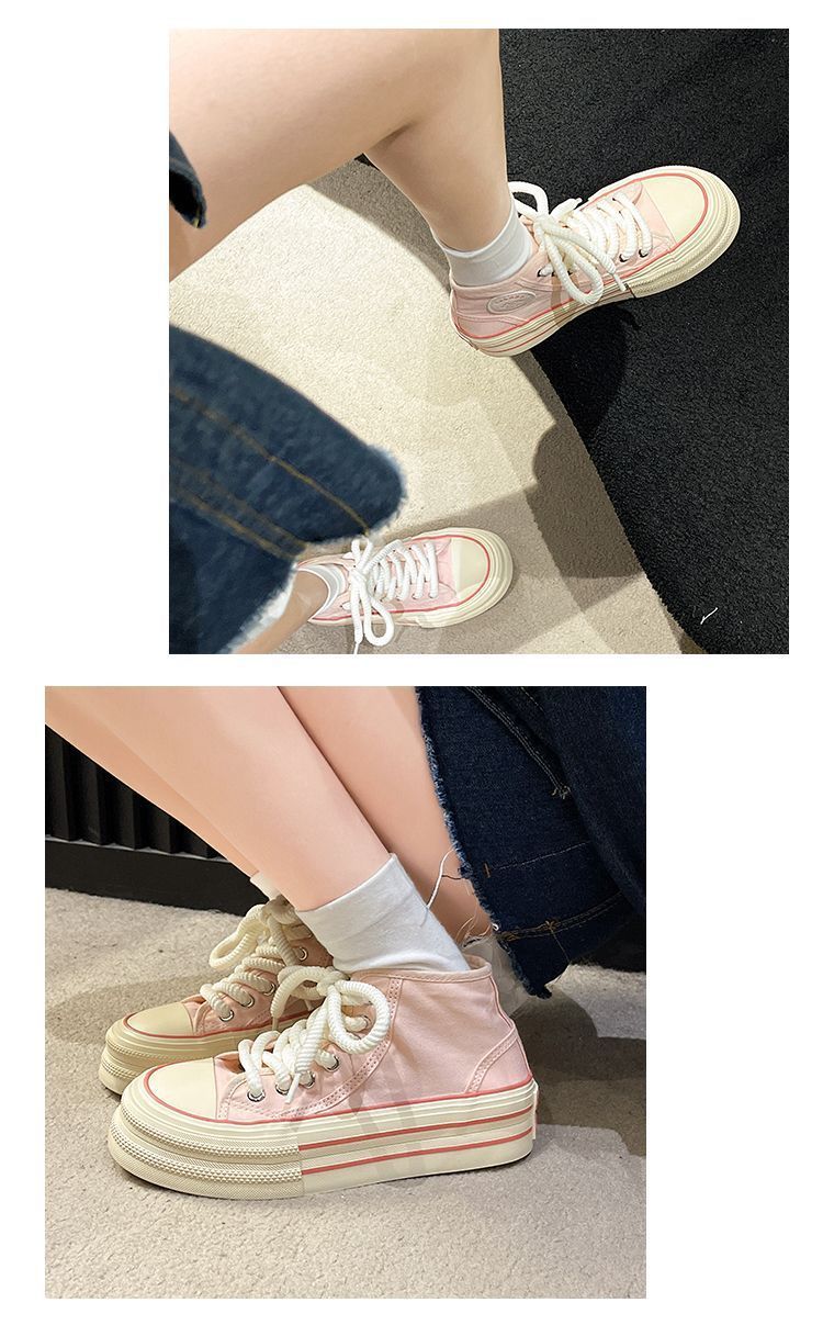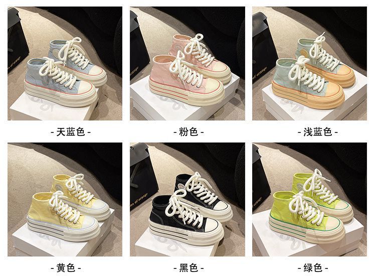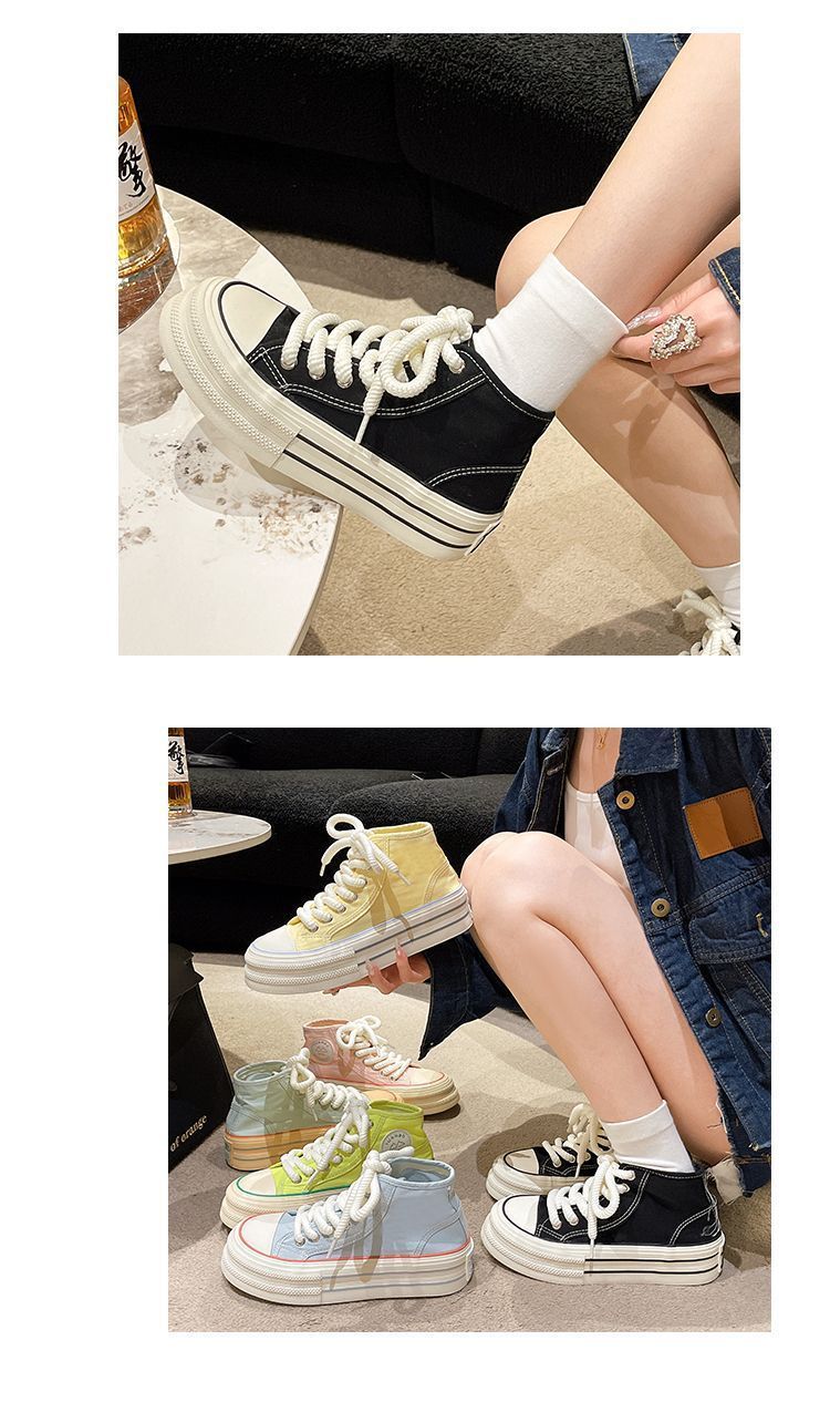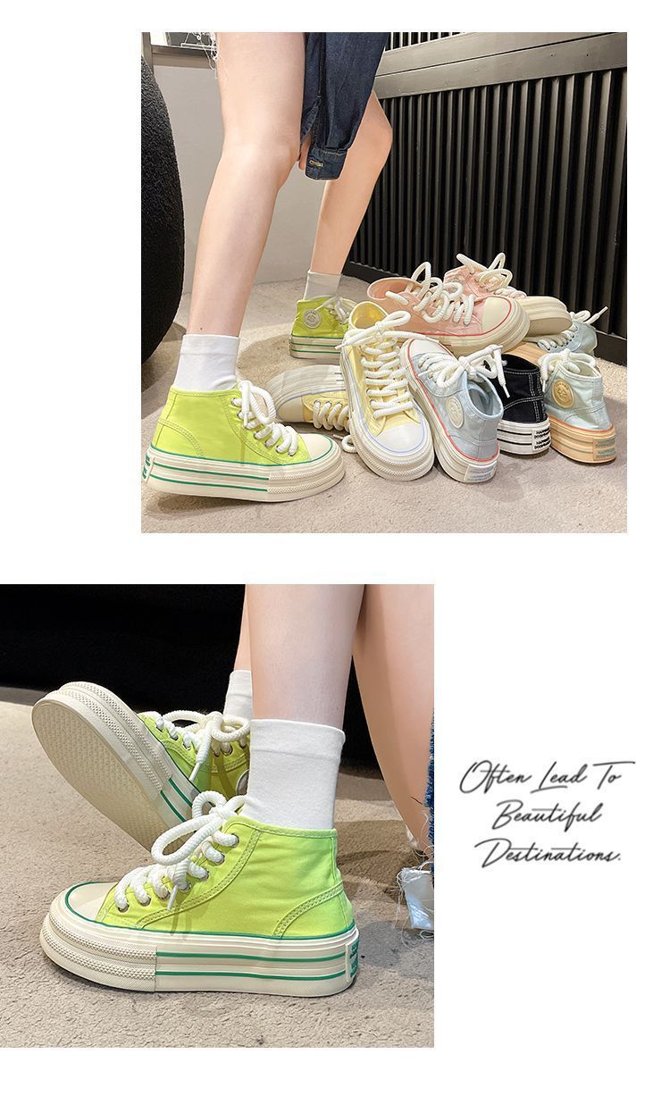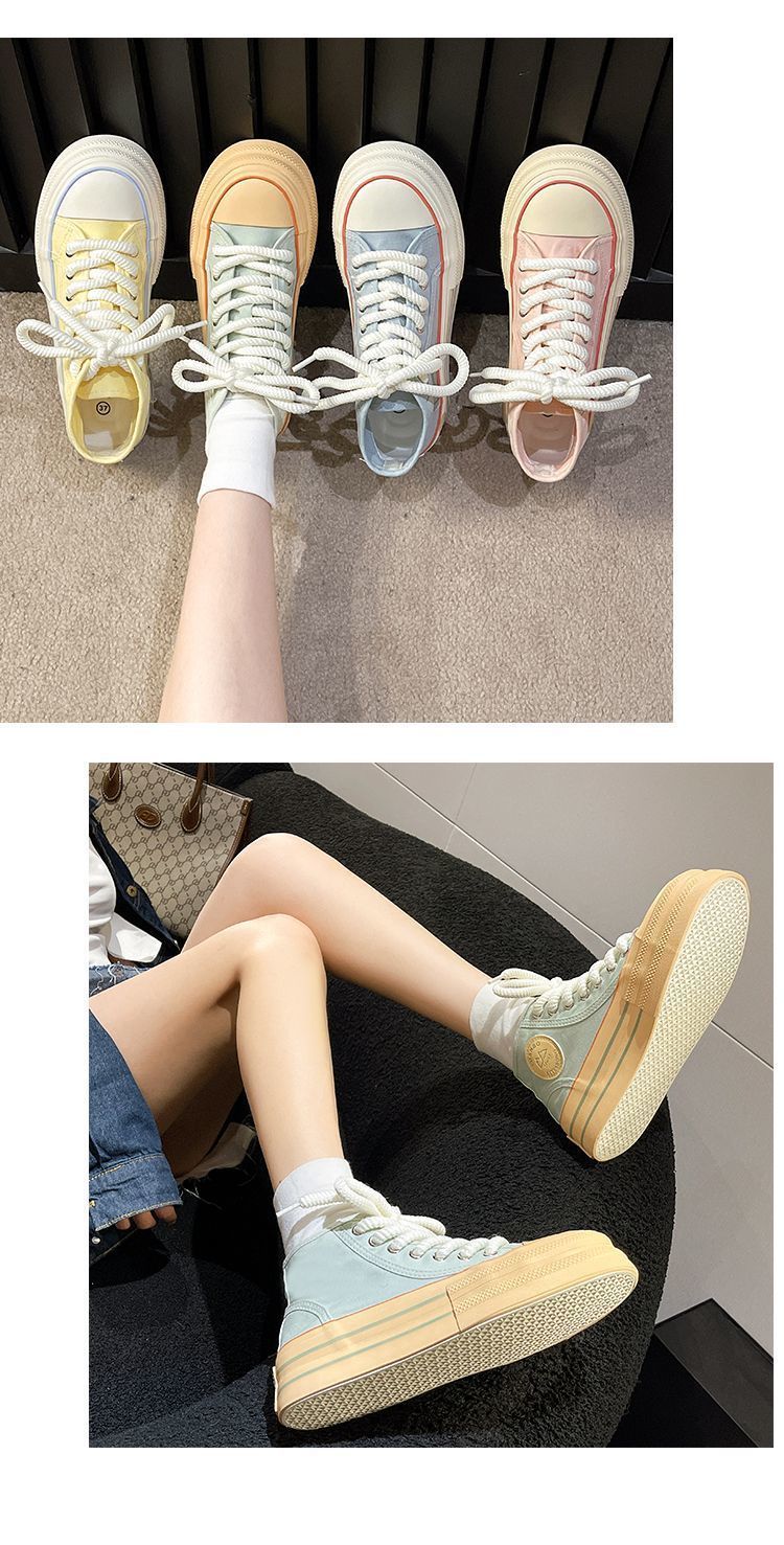 도파민 컬러 매칭 두꺼운 밑창 통기성 캔버스 신발 여성 2025 여름 새로운 다목적 높이 증가 보드 신발