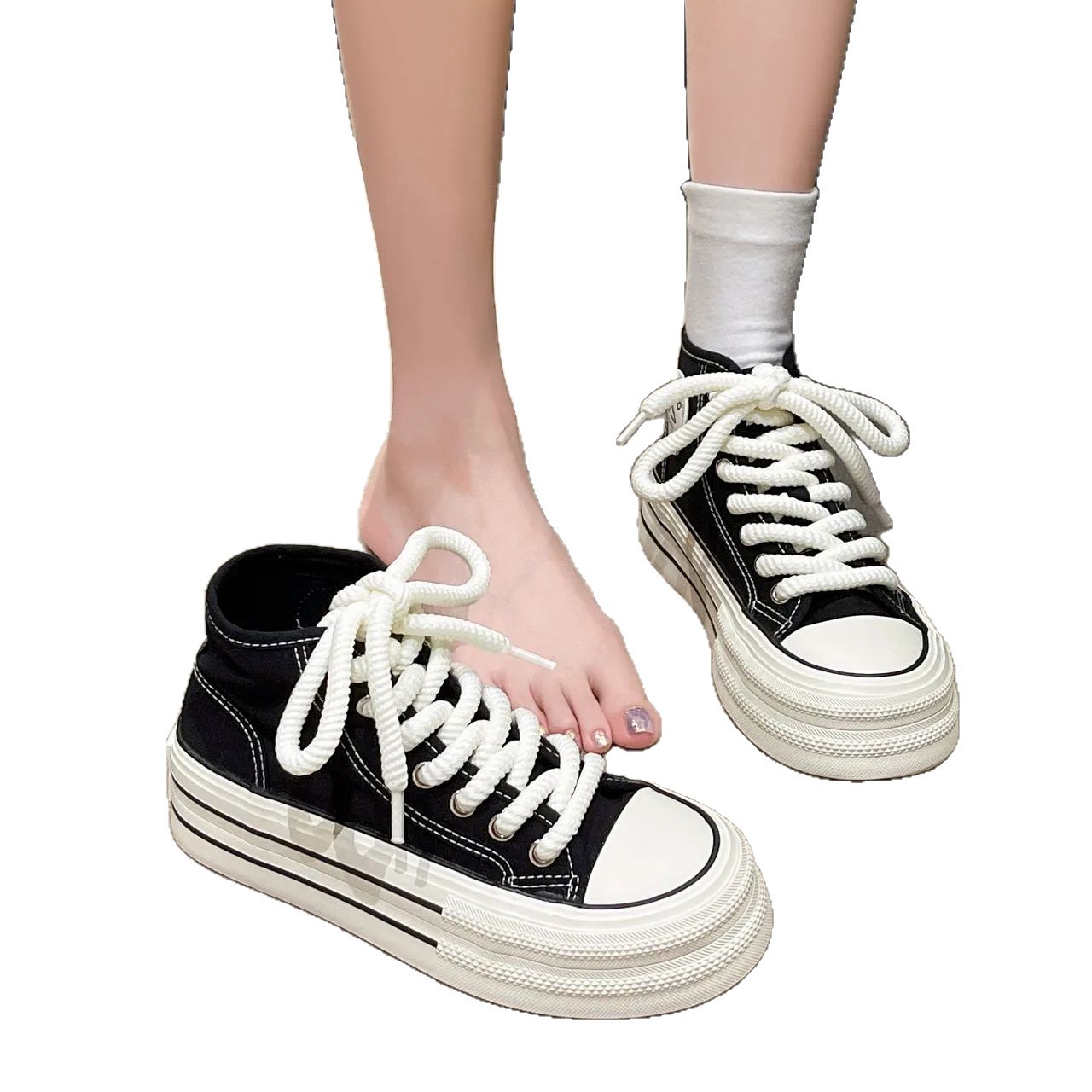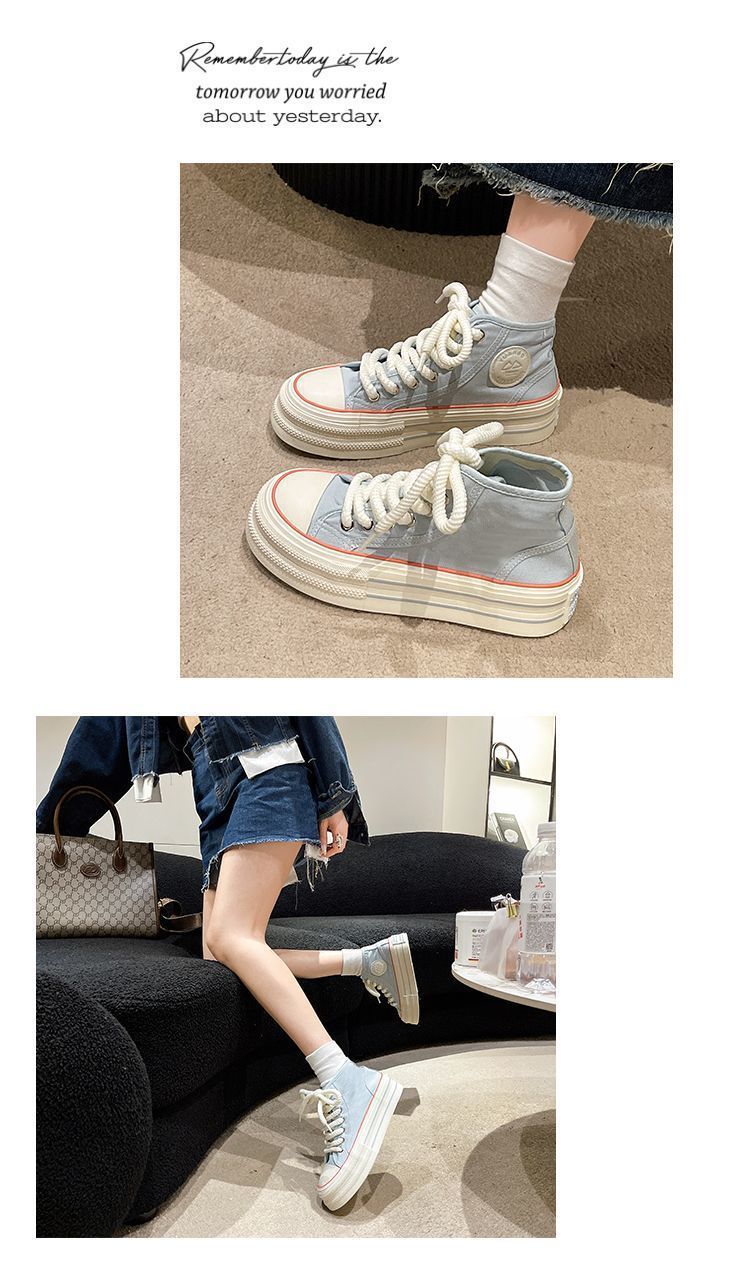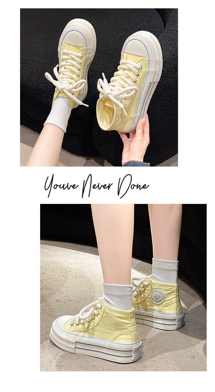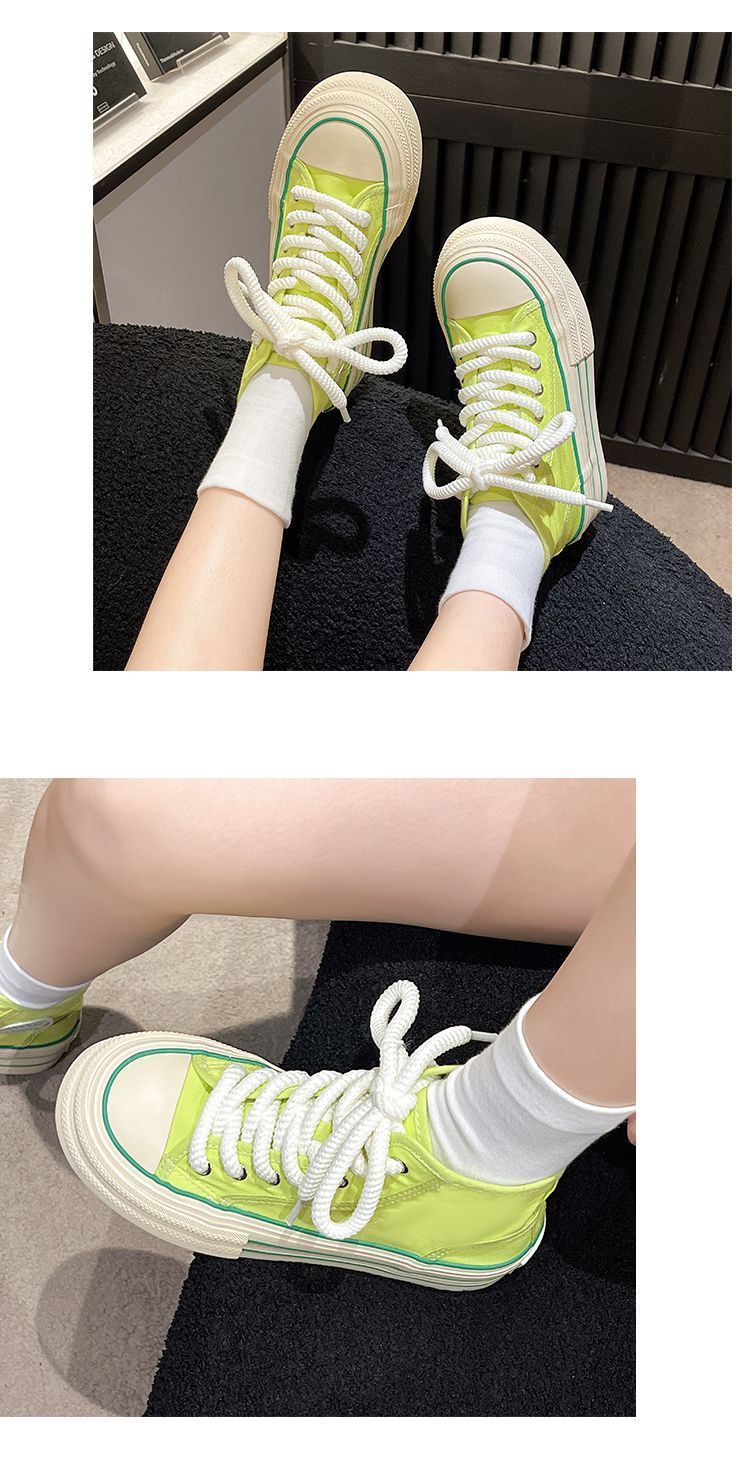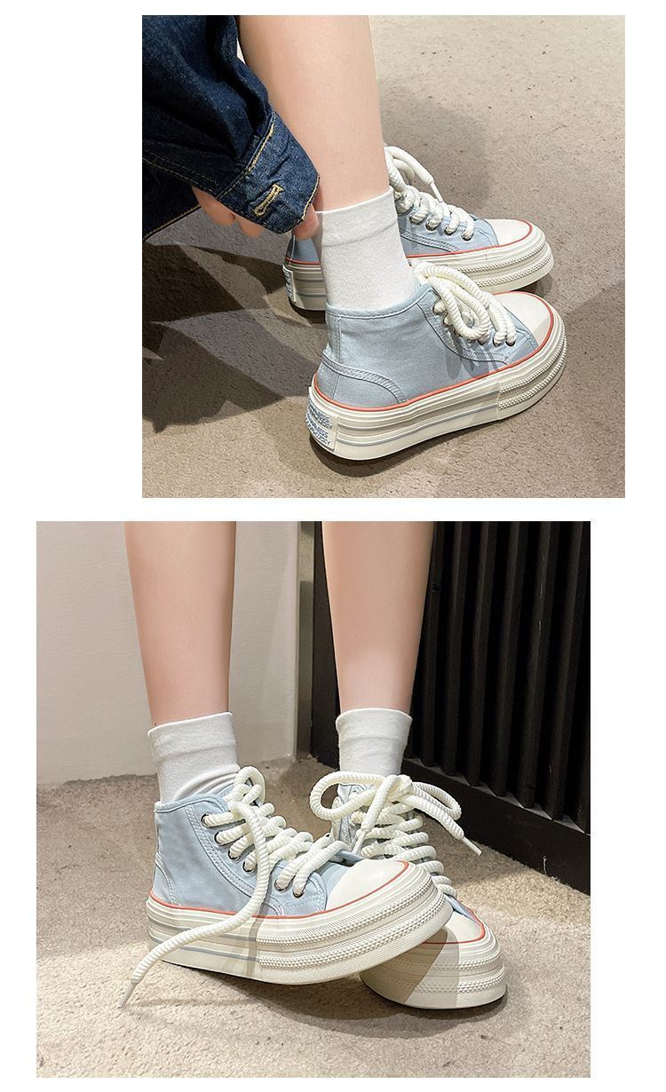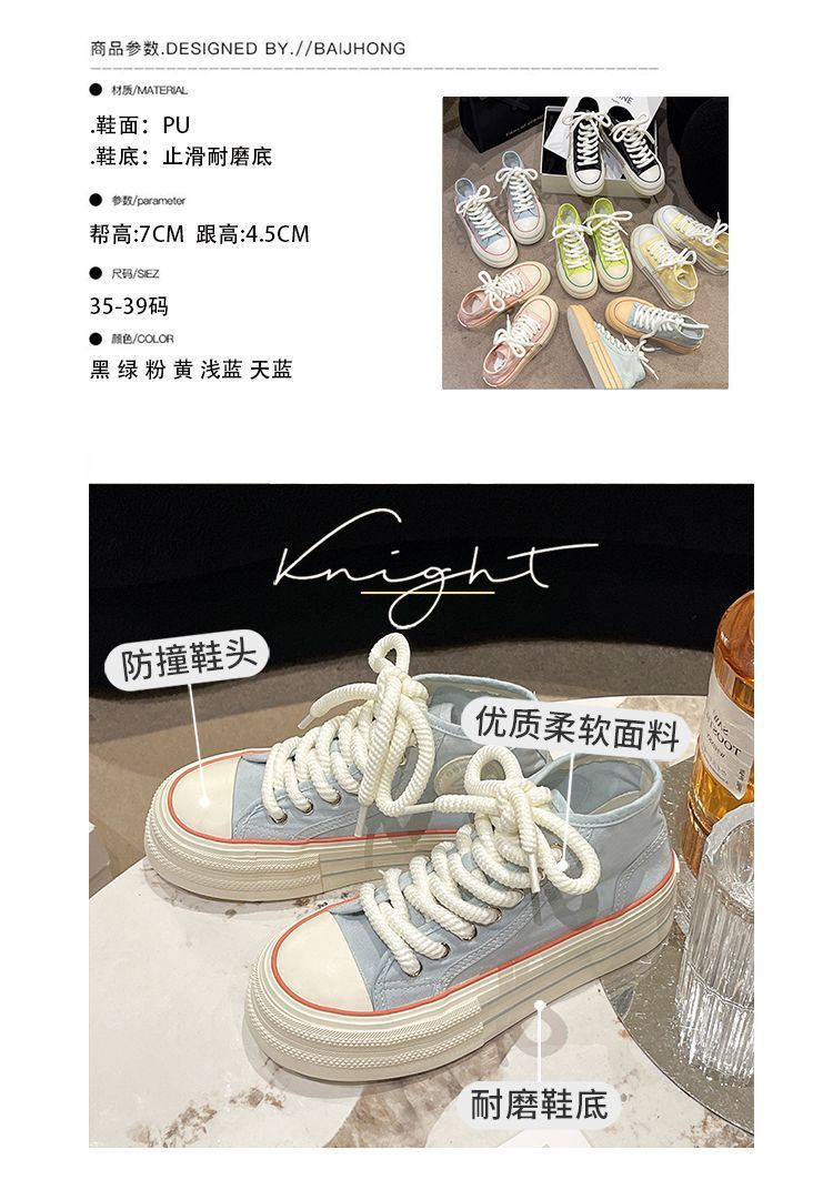 도파민 컬러 매칭 두꺼운 밑창 통기성 캔버스 신발 여성 2025 여름 새로운 다목적 높이 증가 보드 신발
