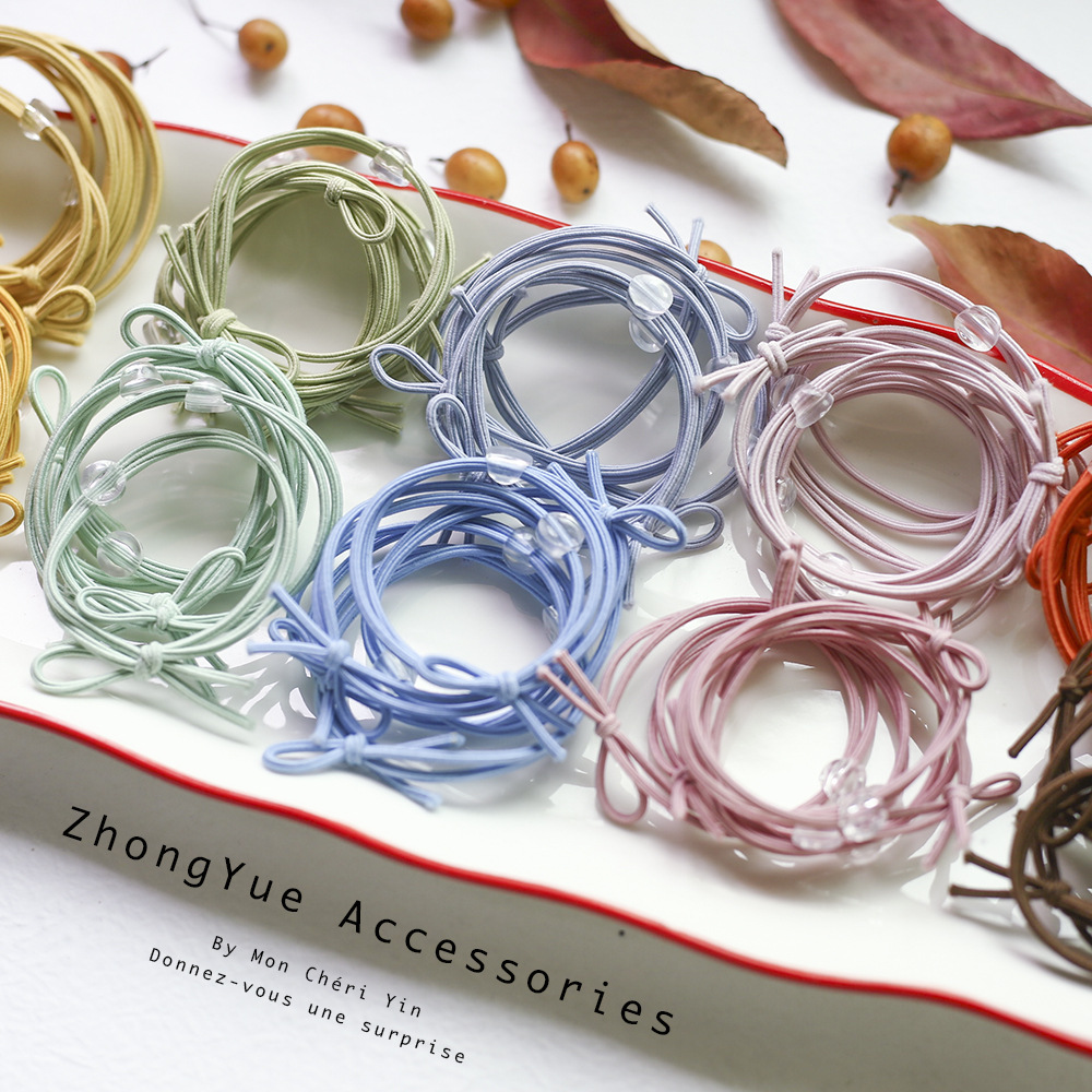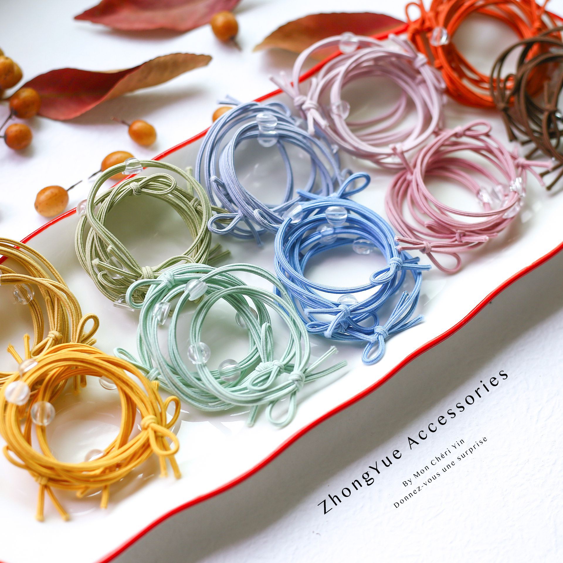 간단하고 손상되지 않는 고탄성 DIY 고무 밴드 매듭 버클 솔리드 컬러 헤어 링 더블 스트랜드 헤어 로프 헤어 액세서리 소재 도매