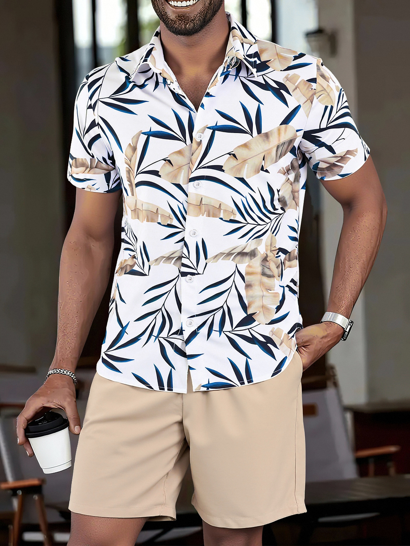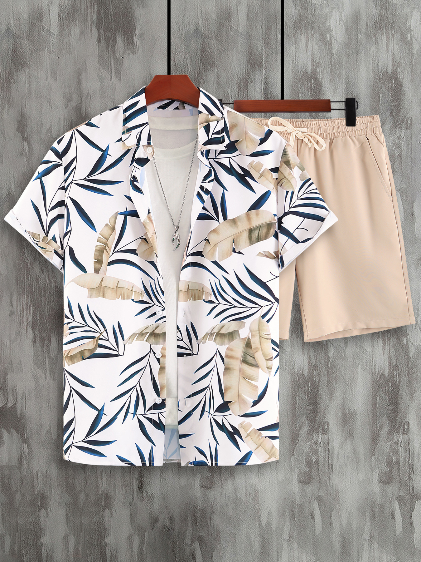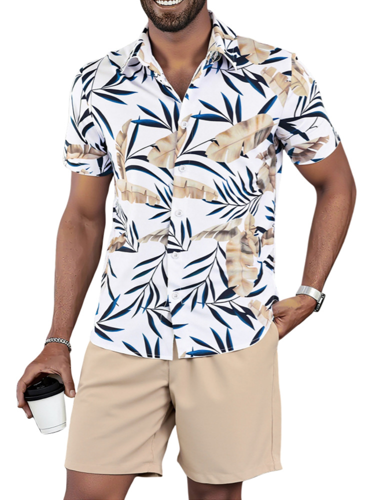 하와이 남자 정장 여름 휴가 해변 캐주얼 반팔 반바지 셔츠 투피스 세트 느슨한 대외 무역 도매