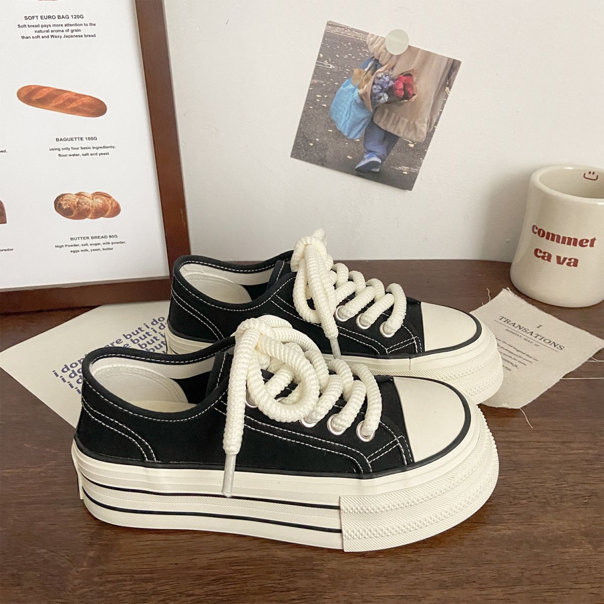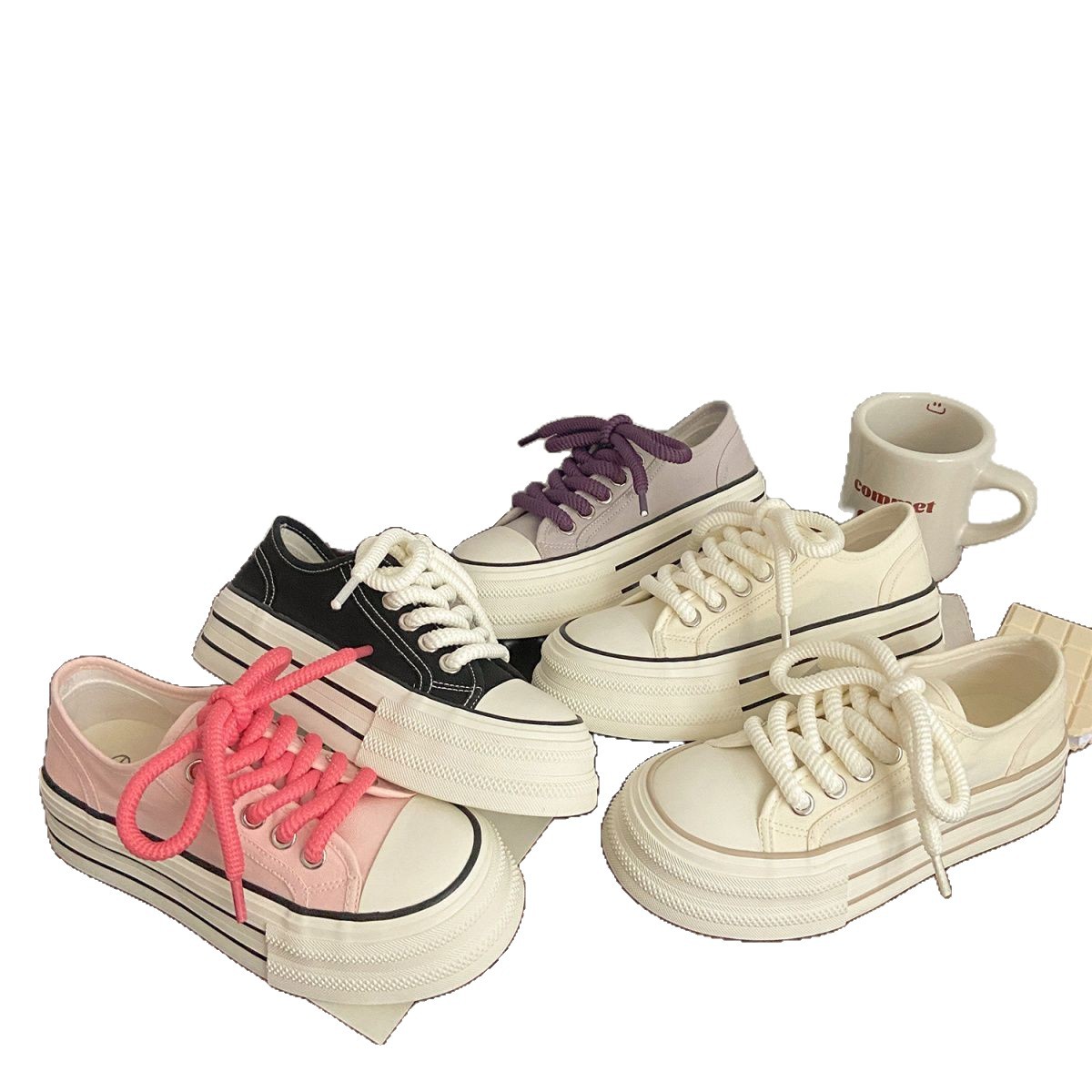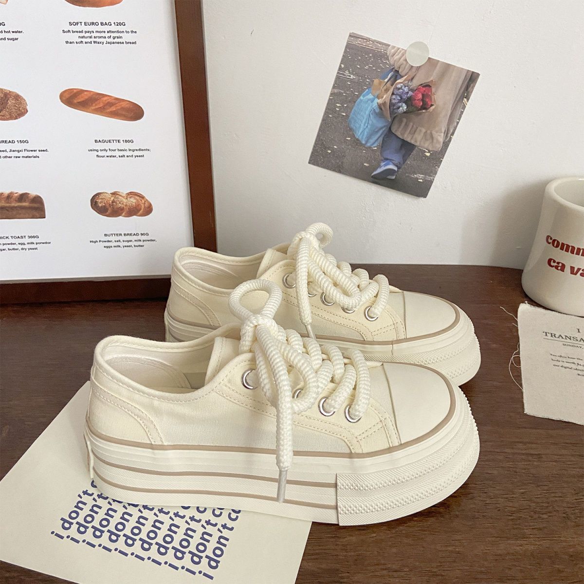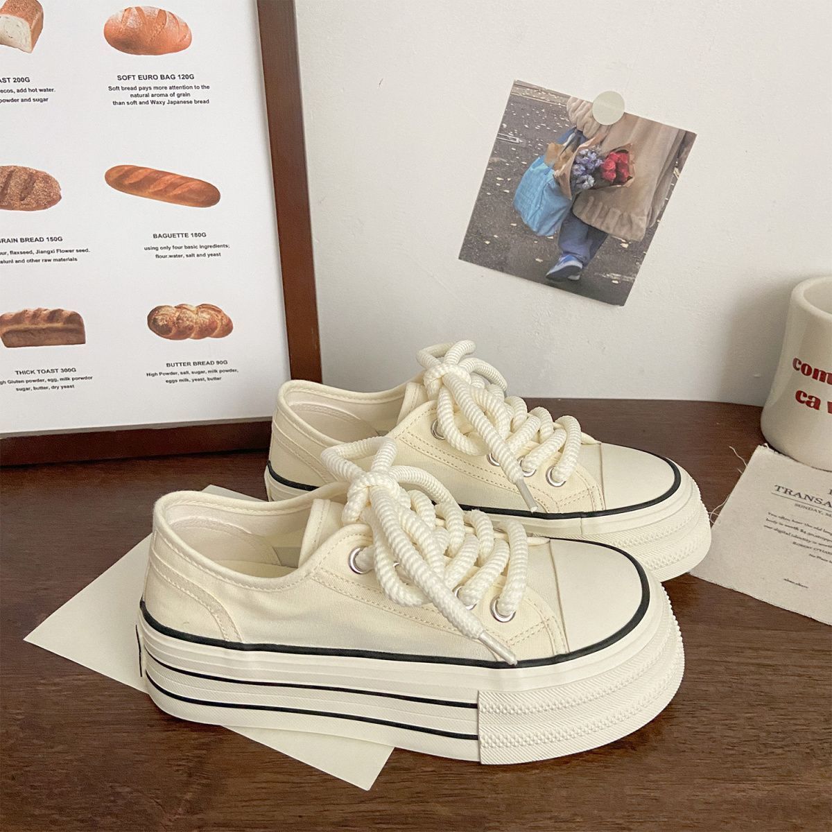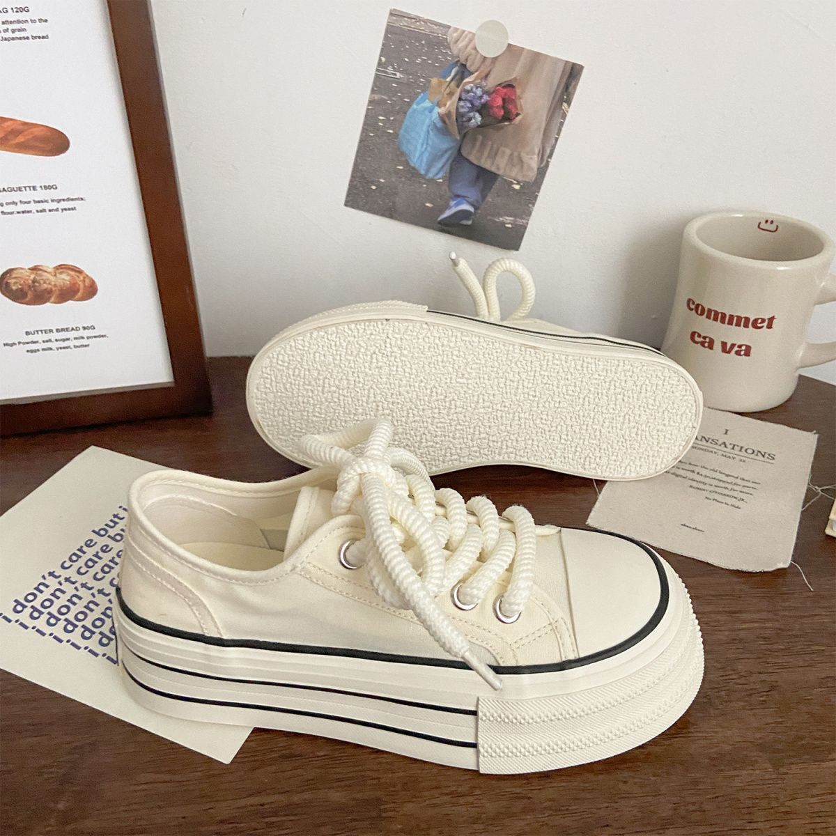 여성을위한 밀키 화이트 신발 2025 새로운 가을 얇은 통기성 신발 두꺼운 밑창 캔버스 신발 학생 다목적 운동화