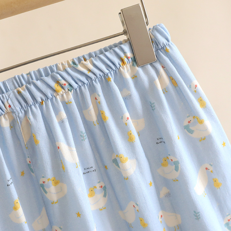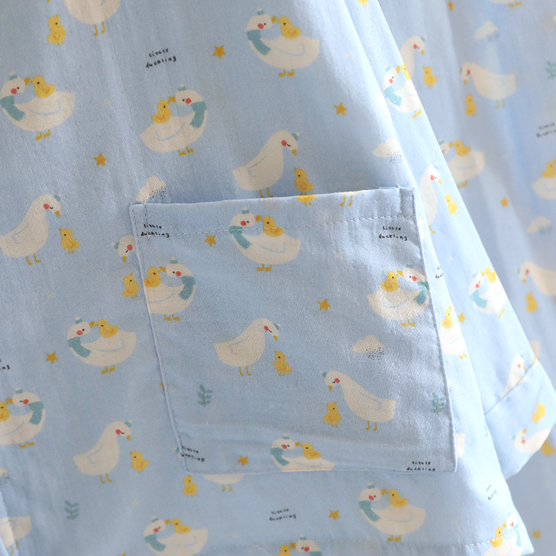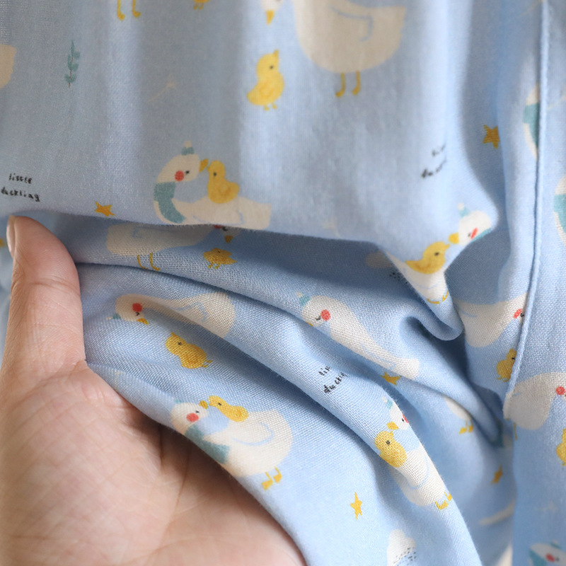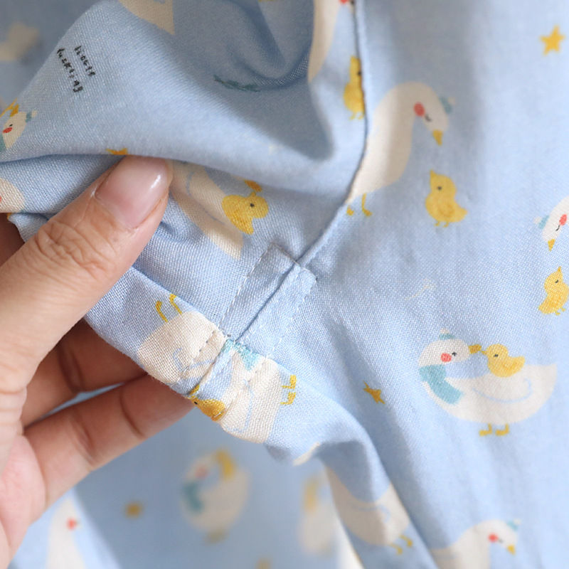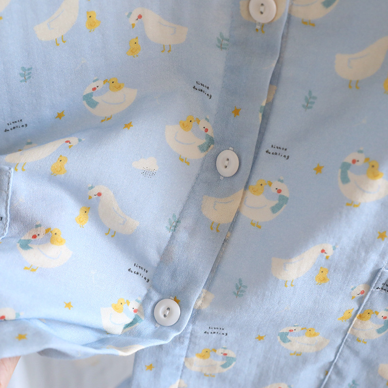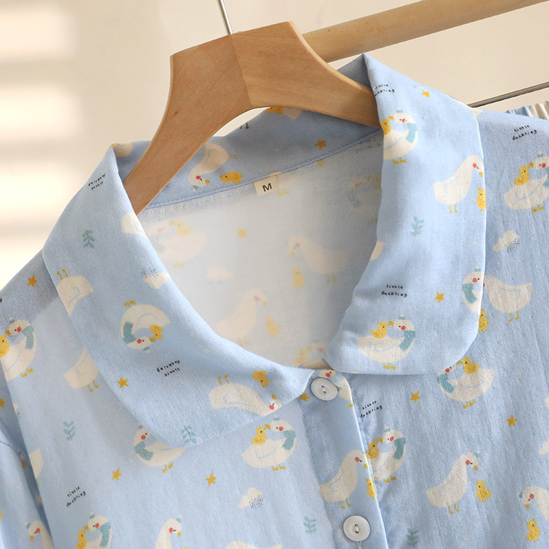 여성을위한 만화 흰색 거위 잠옷 봄, 가을, 여름 순수 코튼 거즈 긴팔 가정 의류 세트 얇은 에어컨 룸