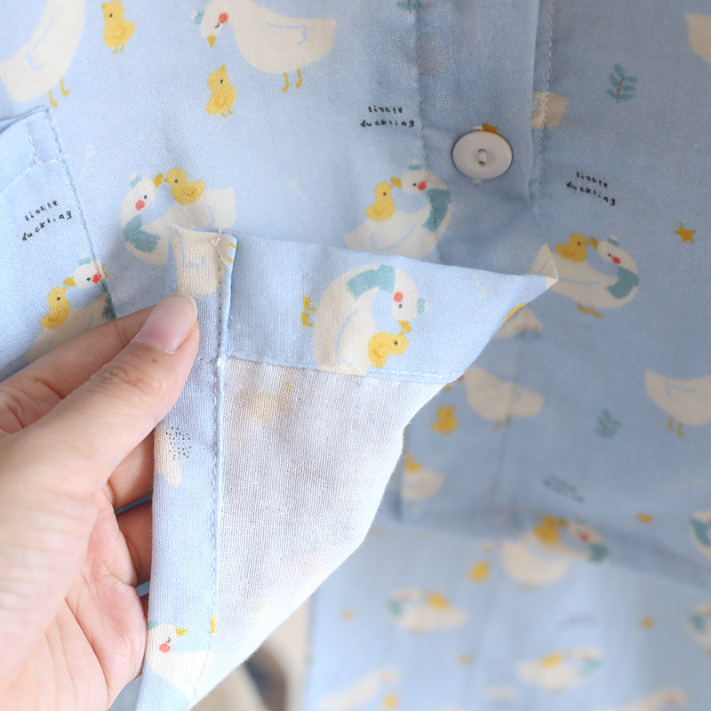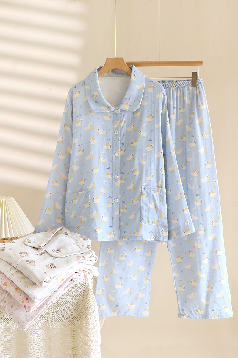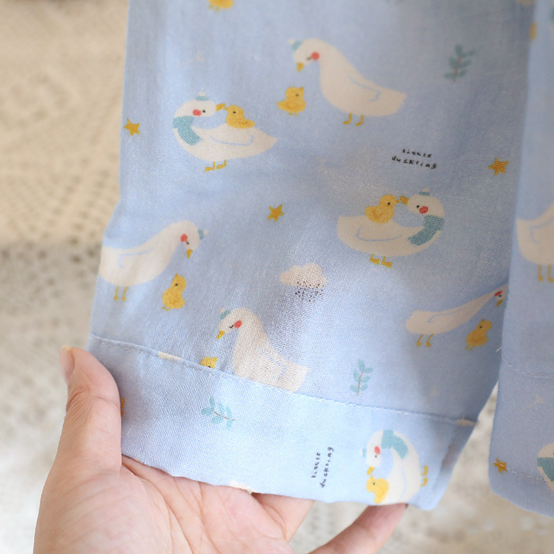 파란색 아기 거위 - 긴팔 거즈 홈웨어 세트