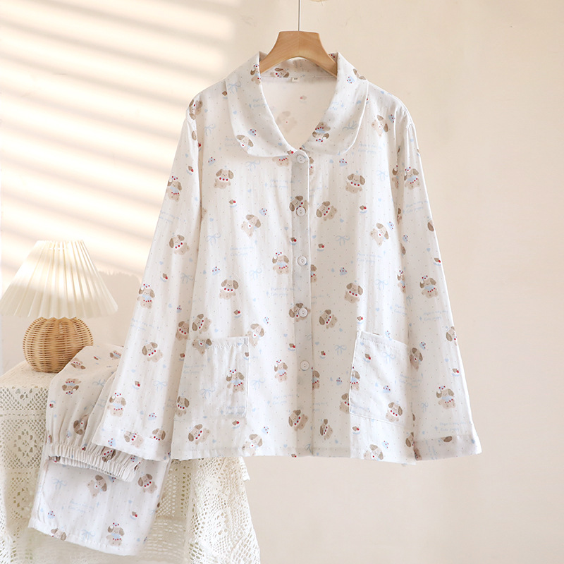컬리 테리어---긴팔 거즈 홈웨어 세트
