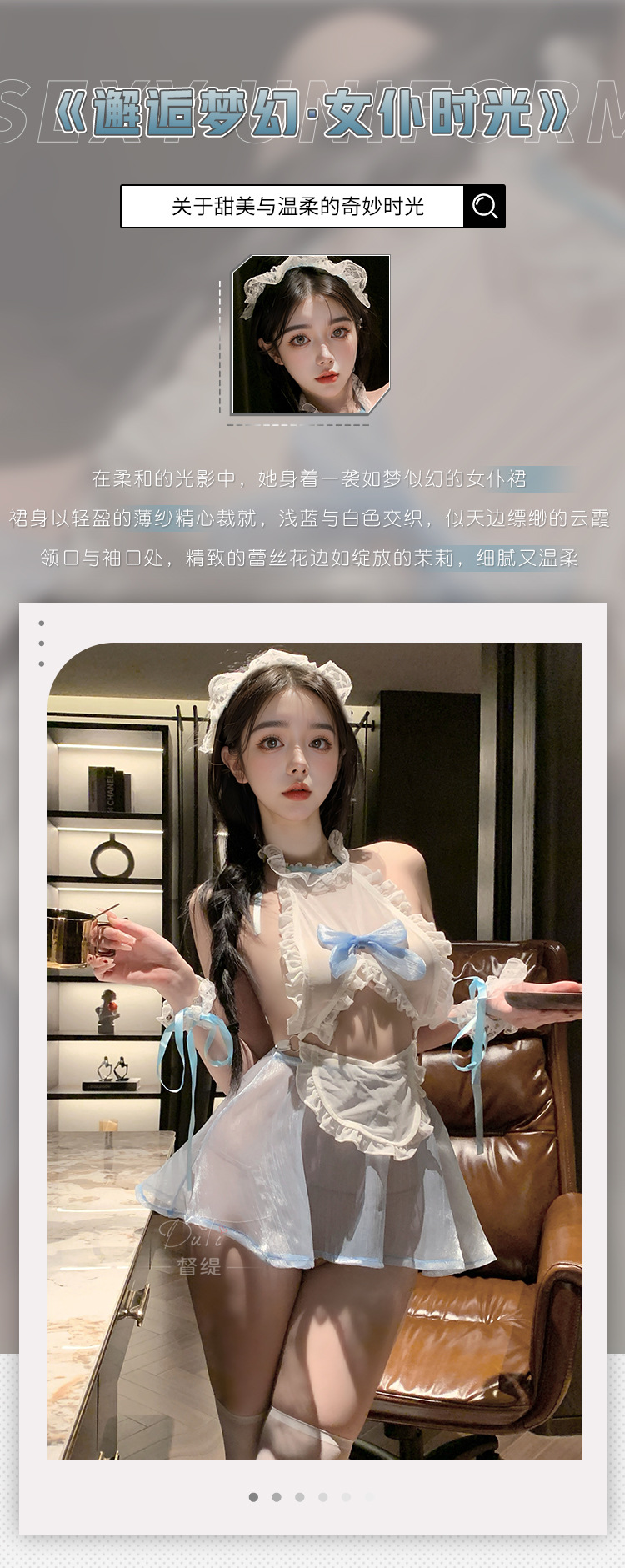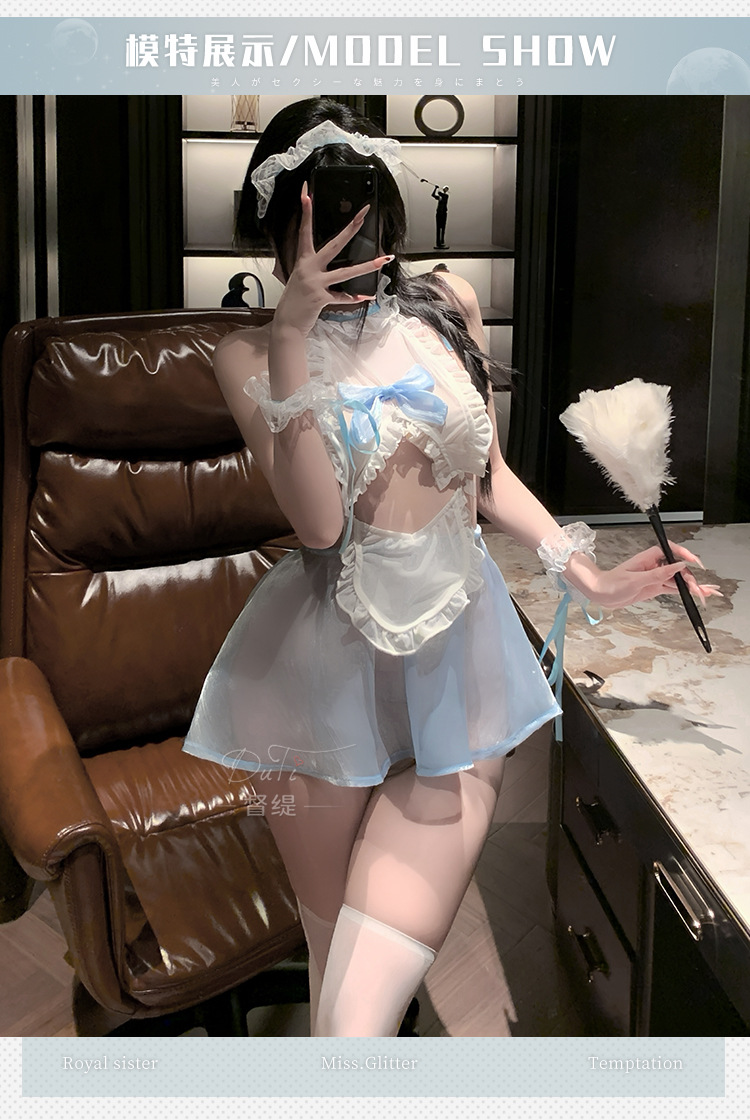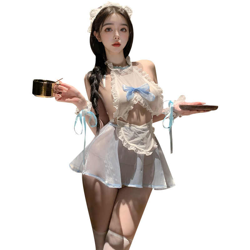 시안이 섹시 란제리, 섹시한 메쉬 시스루 리본 매듭 유혹 잠옷, qqny 금욕풍 메이드 노리필 세트