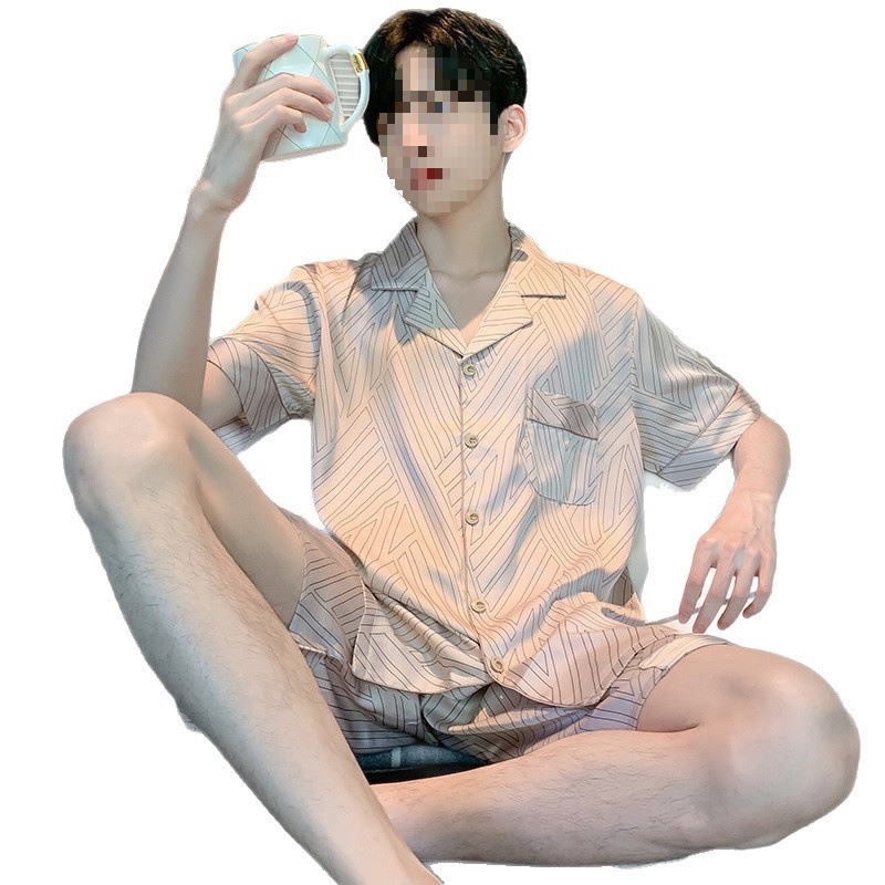 남성용 잠옷 여름 얼음 실크 반팔 여름 남성용 시뮬레이션 실크 여름 2025 새로운 얇은 가정 의류 세트