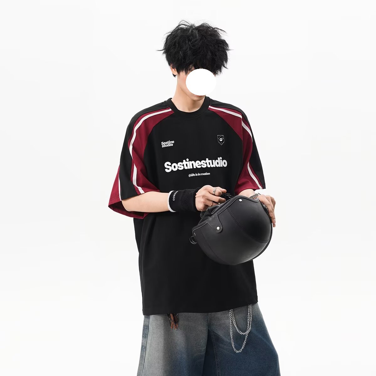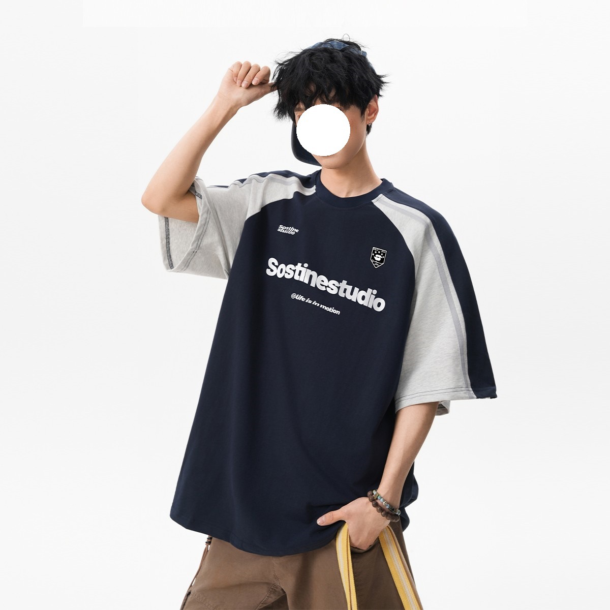레트로 헤비 스플라이싱 대비 색상 반팔 남성 2025 여름 유행 대학 스타일 문자 인쇄 커플 반팔 티셔츠
