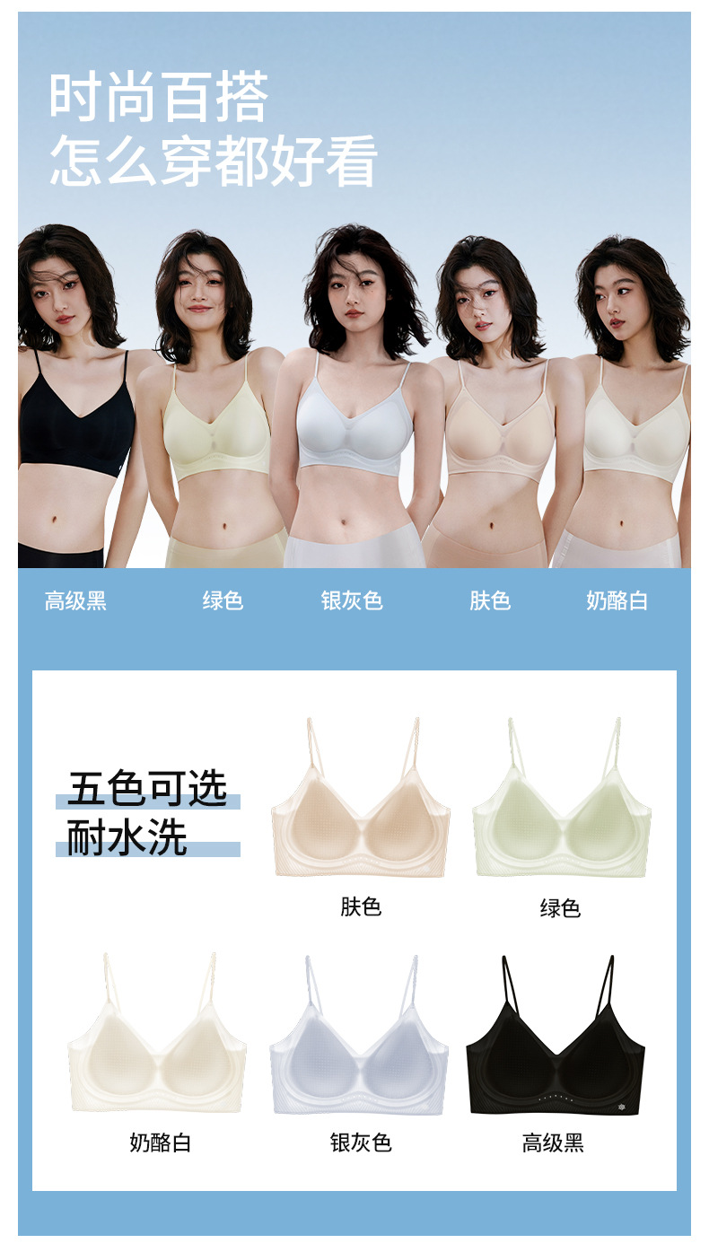2025 핫 스타일 소프트 서포트 쿨링 초박형 심리스 속옷 스파게티 스트랩 조끼 스타일 뷰티 백 리프팅 젤리 스트립 브라