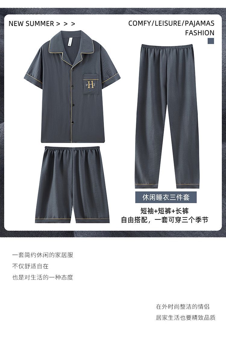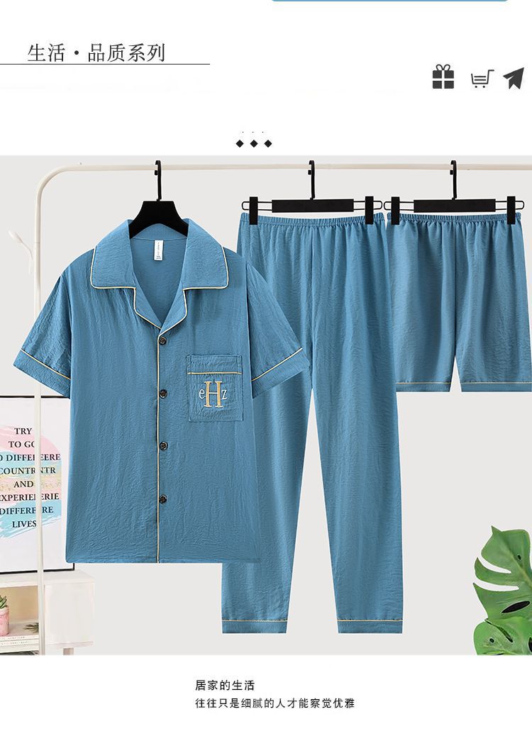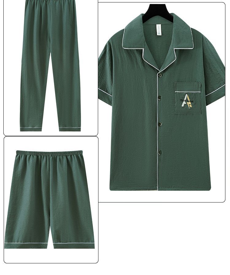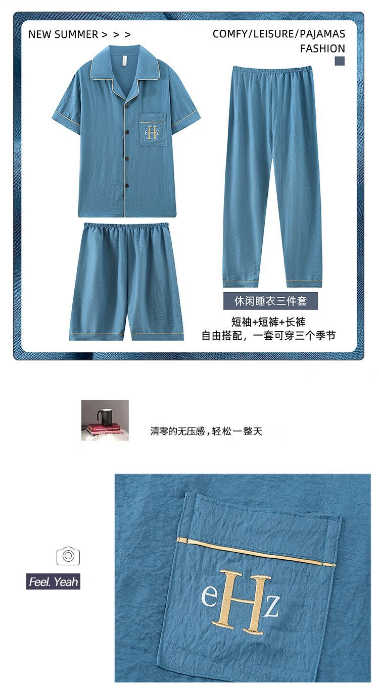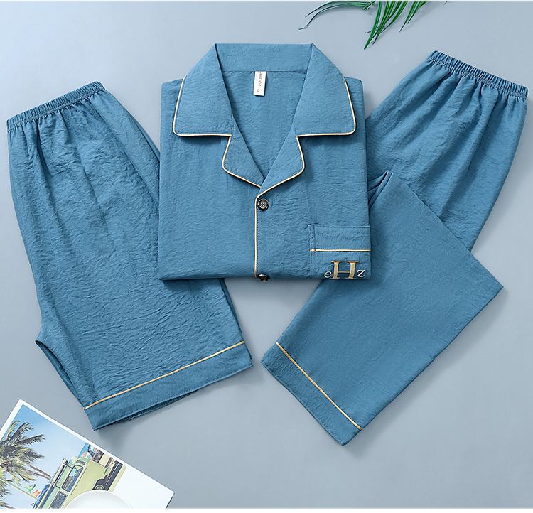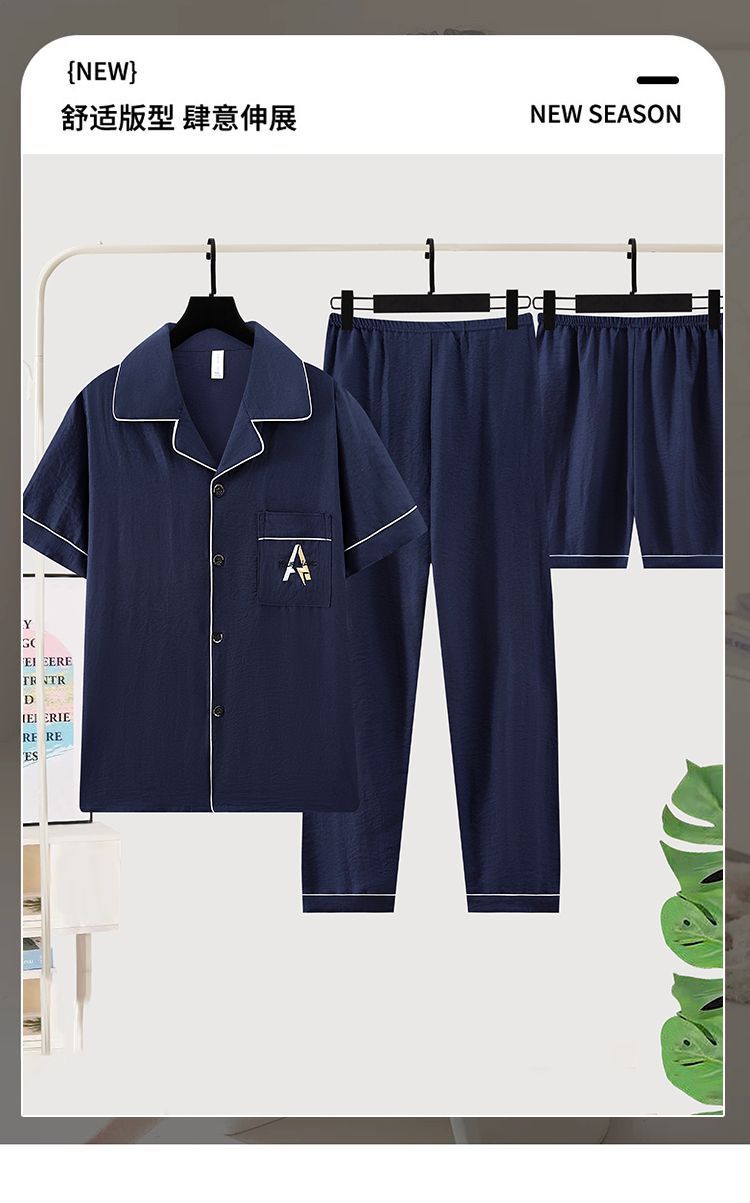 남성용 잠옷 여름 클라우드 코튼 3 피스 세트 2025 새로운 얇은 코튼 반팔 여름 중년 및 젊은층 가정 의류