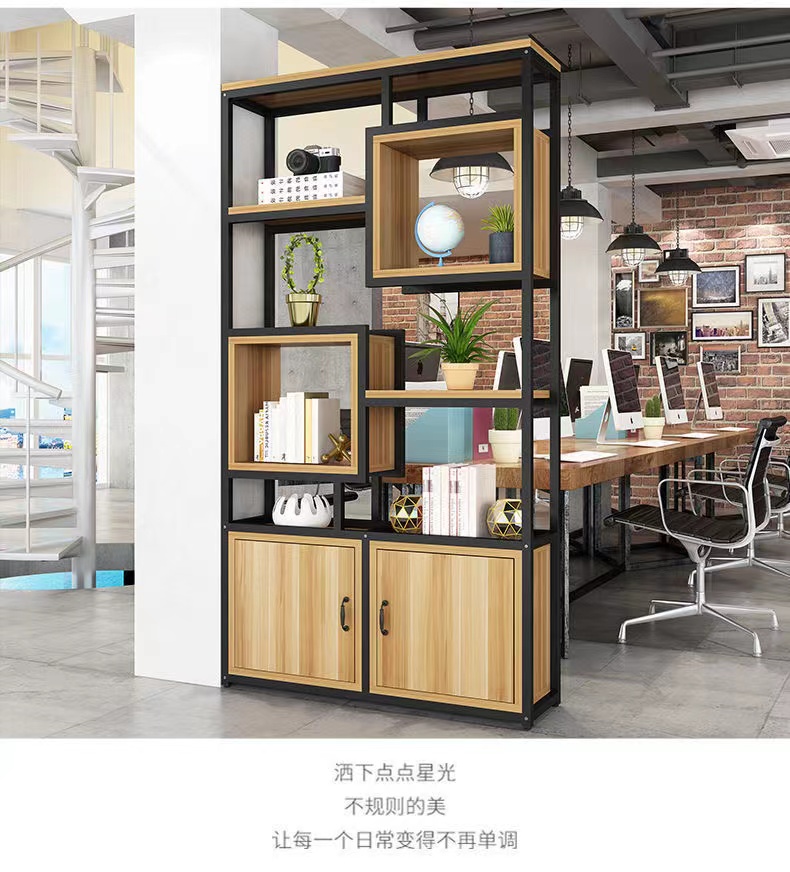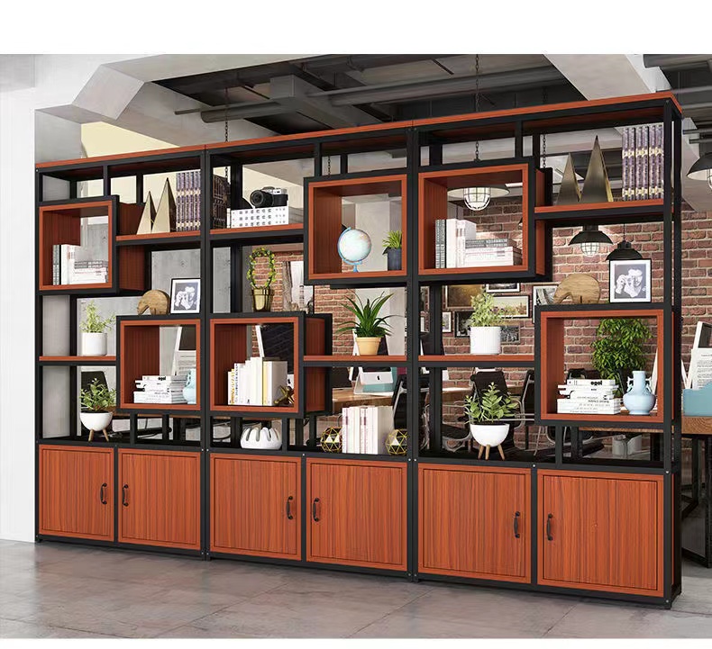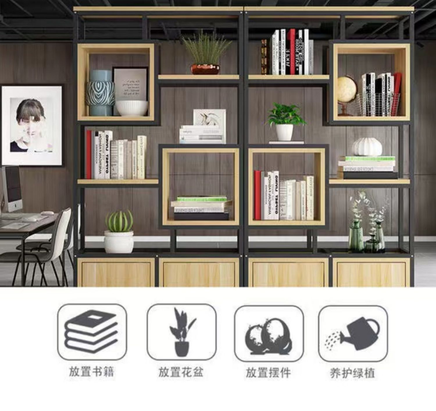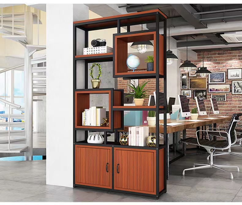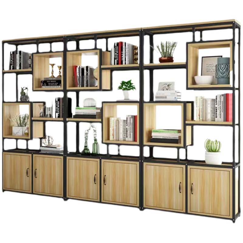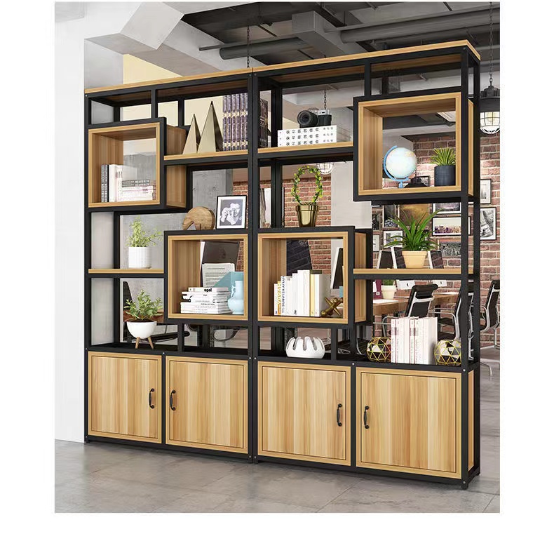 책장 바닥에서 천장까지 간단한 강철과 목재 다층 책장 사무실 현대 스크린 꽃 스탠드 거실 철 파티션 보관함