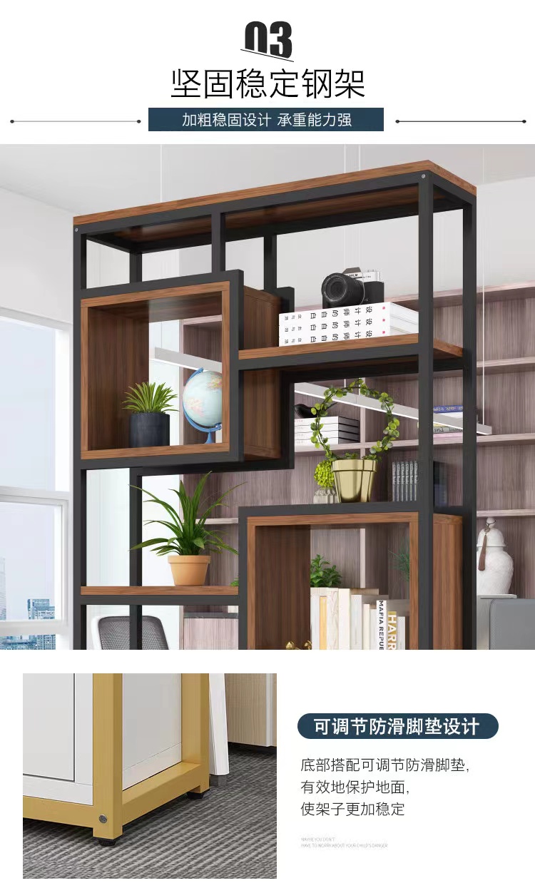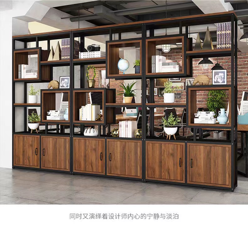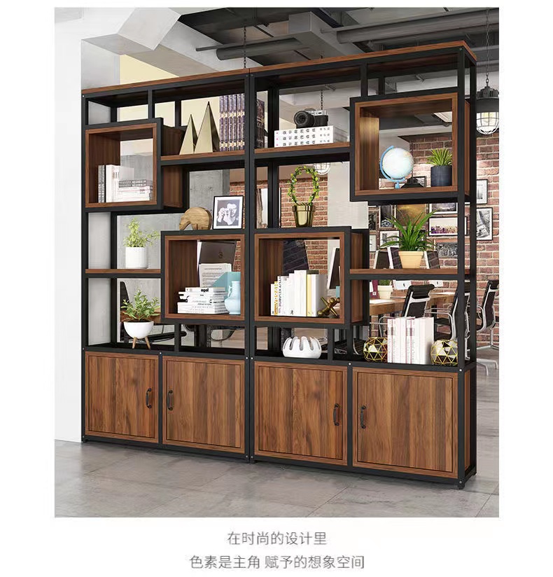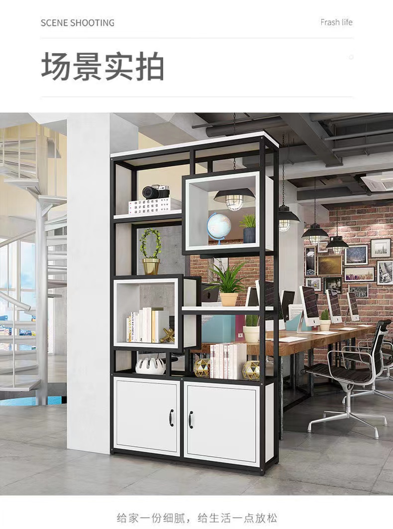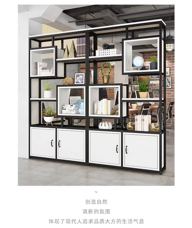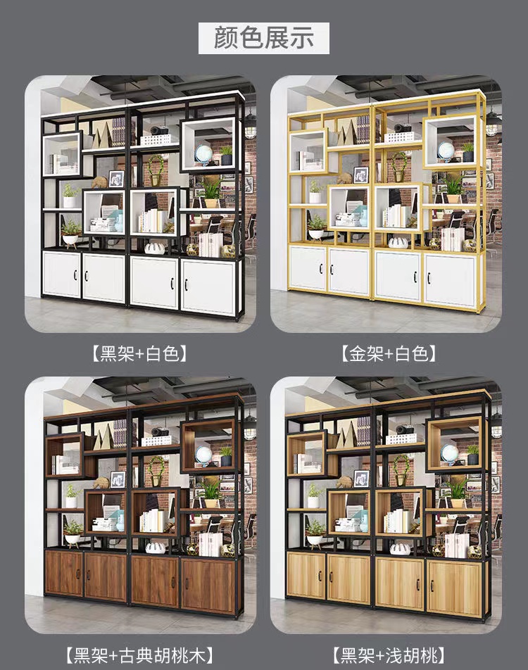 책장 바닥에서 천장까지 간단한 강철과 목재 다층 책장 사무실 현대 스크린 꽃 스탠드 거실 철 파티션 보관함