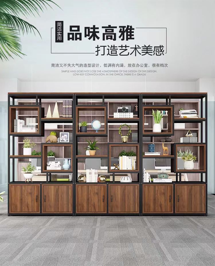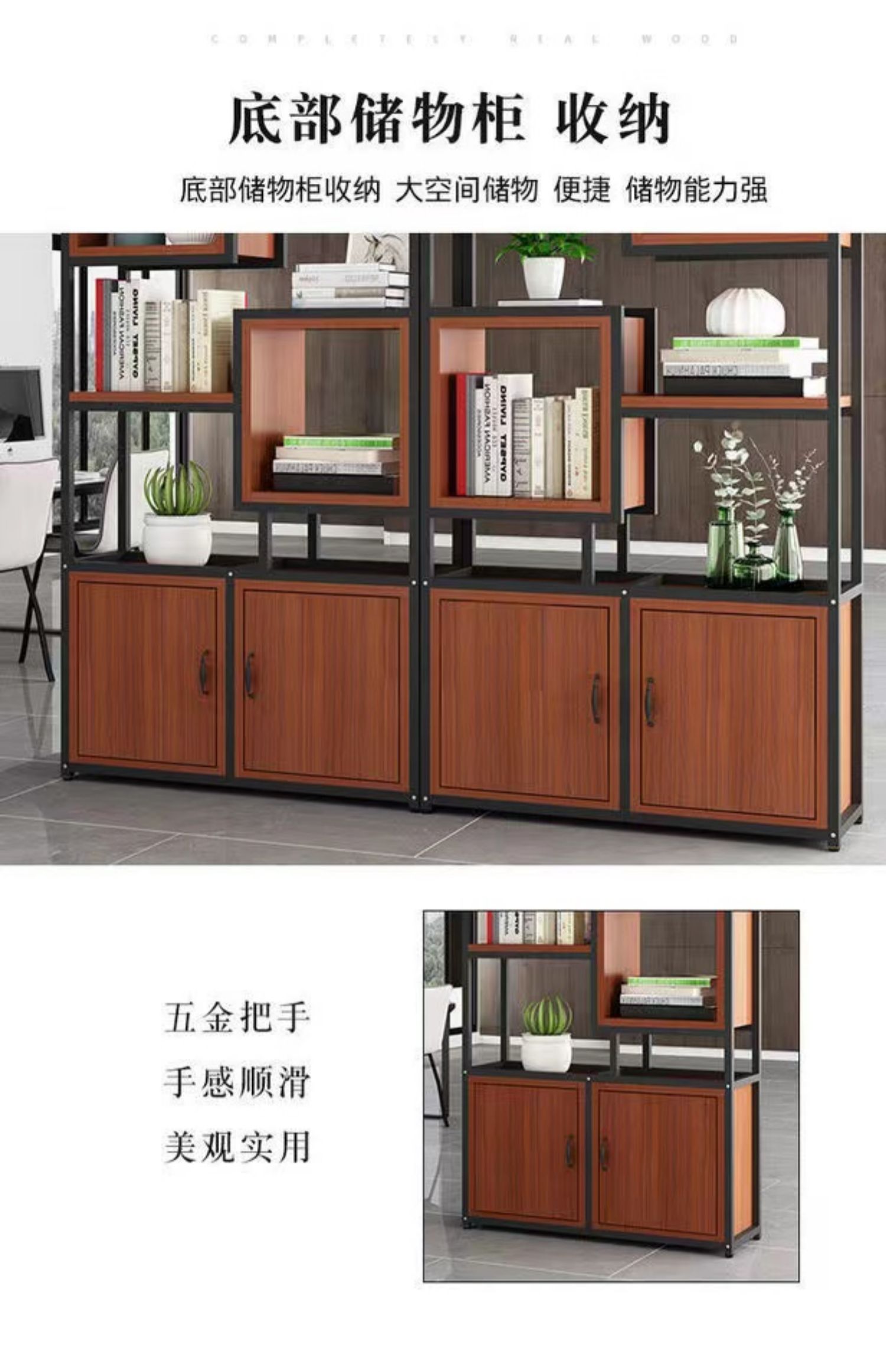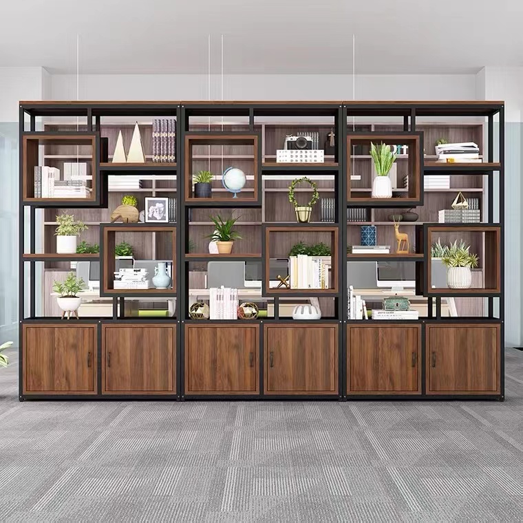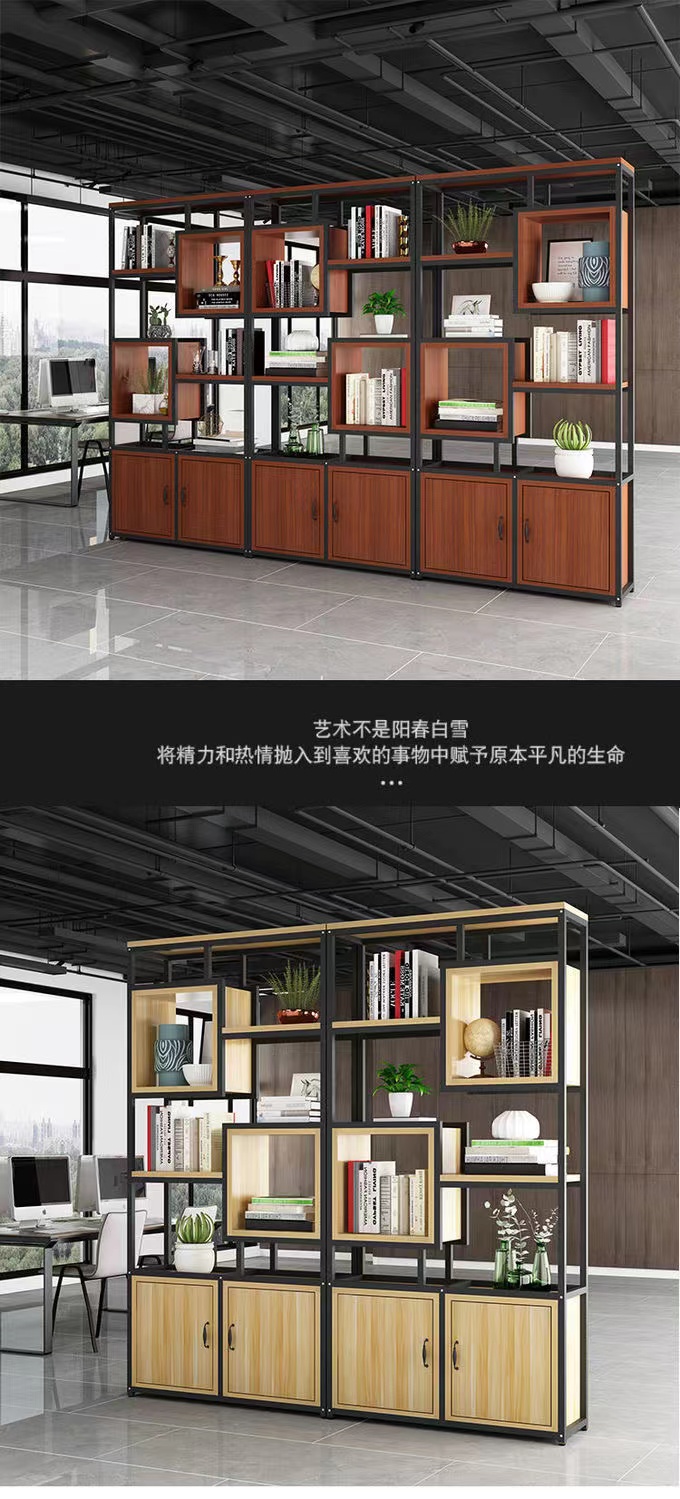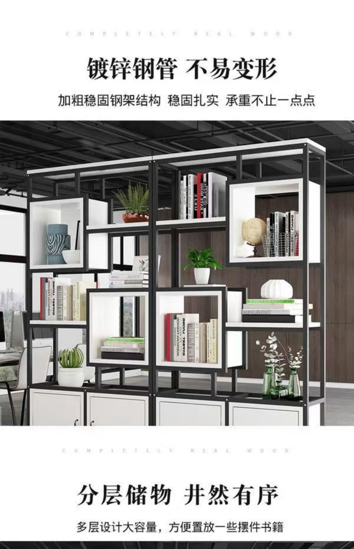 책장 바닥에서 천장까지 간단한 강철과 목재 다층 책장 사무실 현대 스크린 꽃 스탠드 거실 철 파티션 보관함