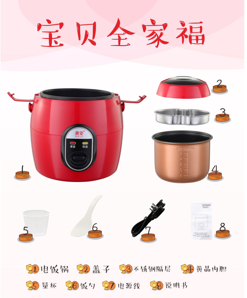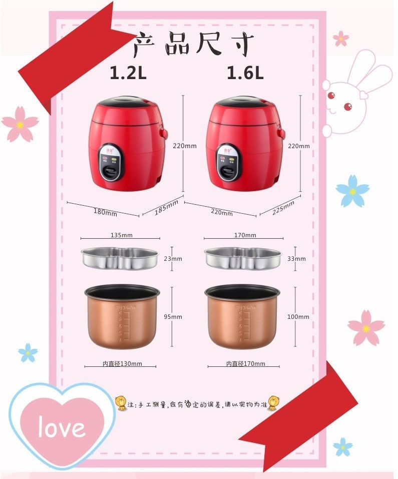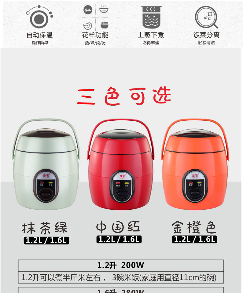 미니 전기밥솥 소형 1L 밥솥 학생 기숙사 다기능 소형 가정용 1.2L/1.6L 전기밥솥