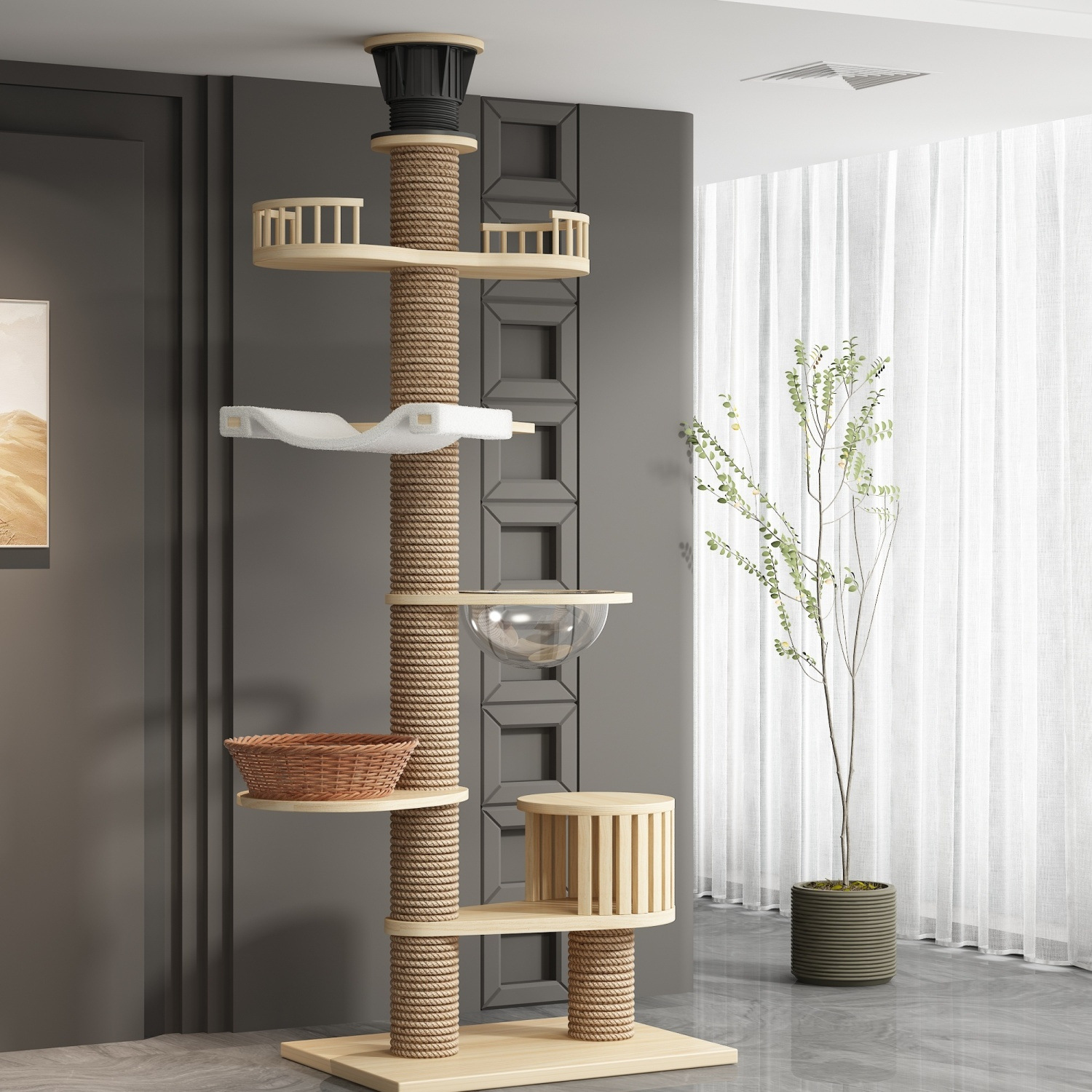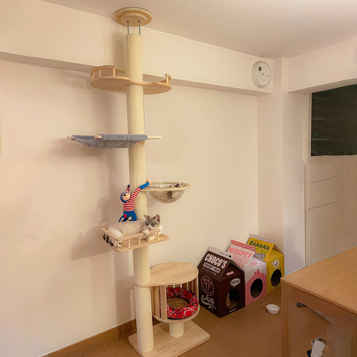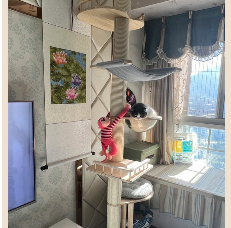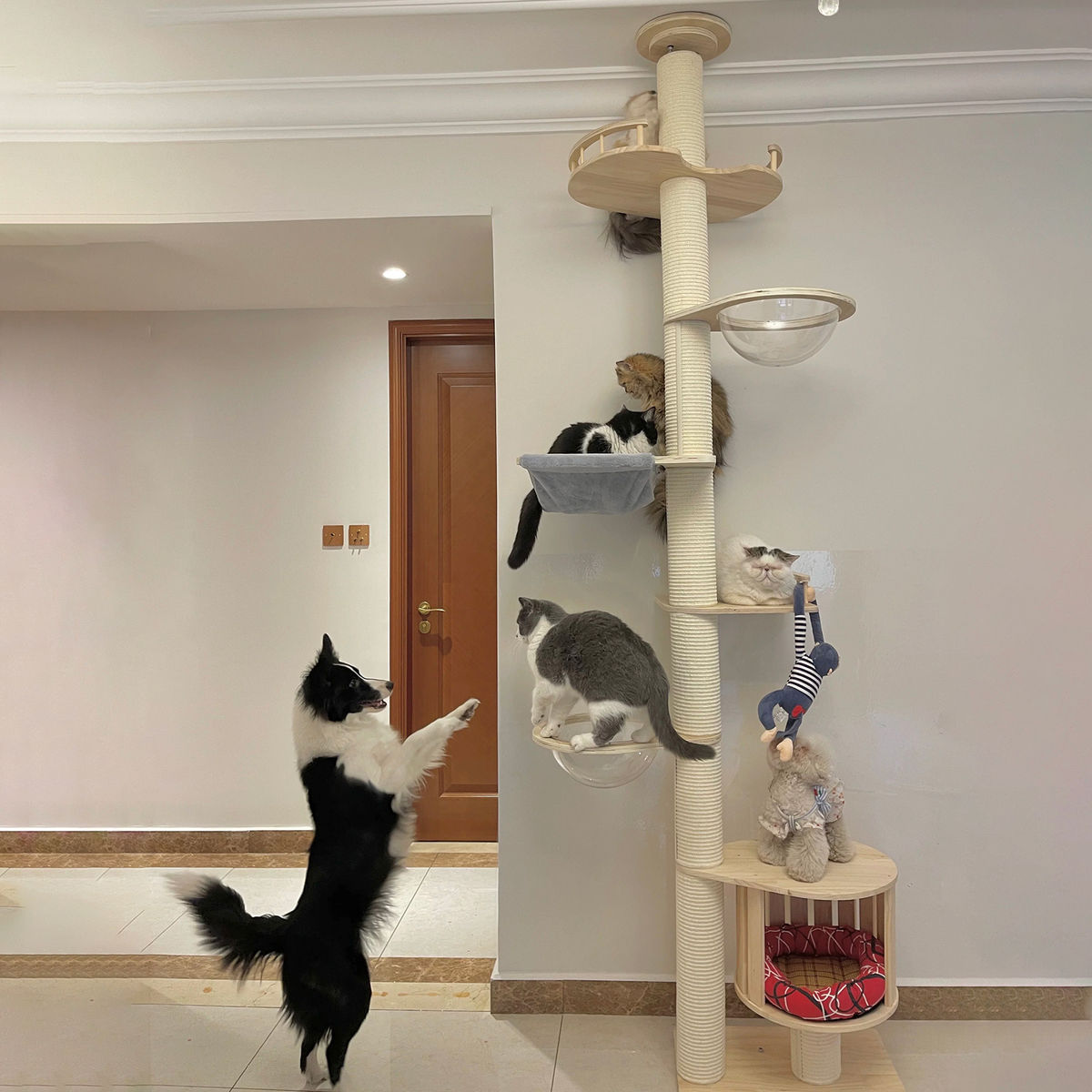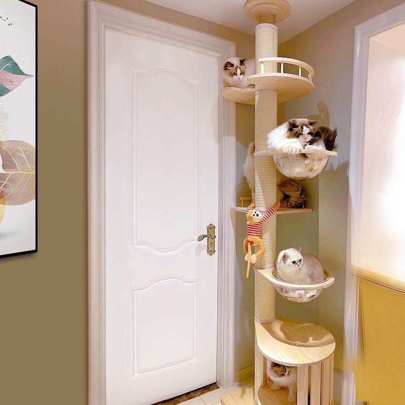 Optimus Prime 고양이 클라이밍 프레임, 고양이 둥지, 일체형 고양이 점프 플랫폼, 천장부터 바닥까지 이어지는 원목 선반, 공간을 차지하지 않는 소형 고양이 장난감