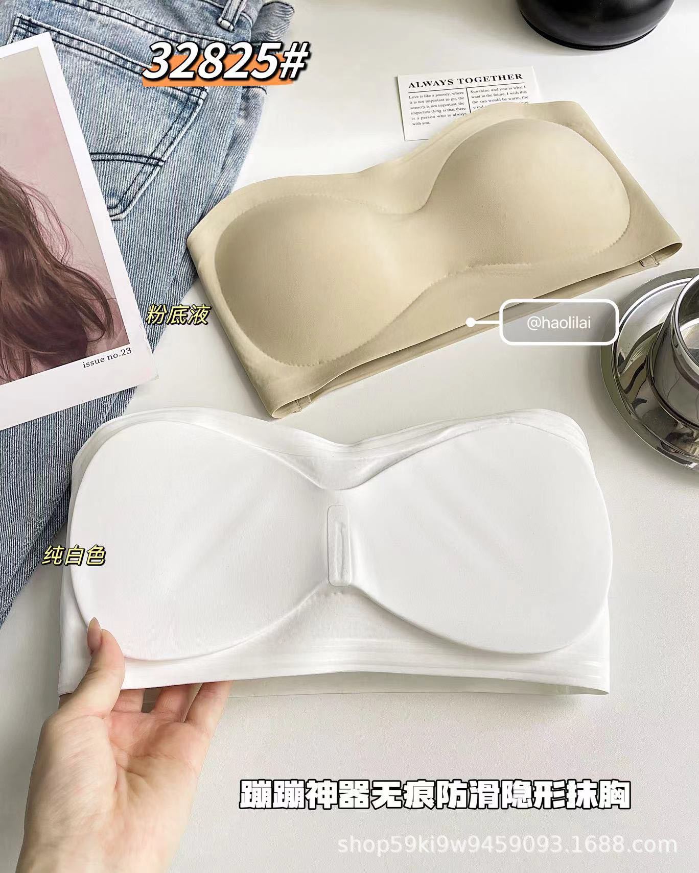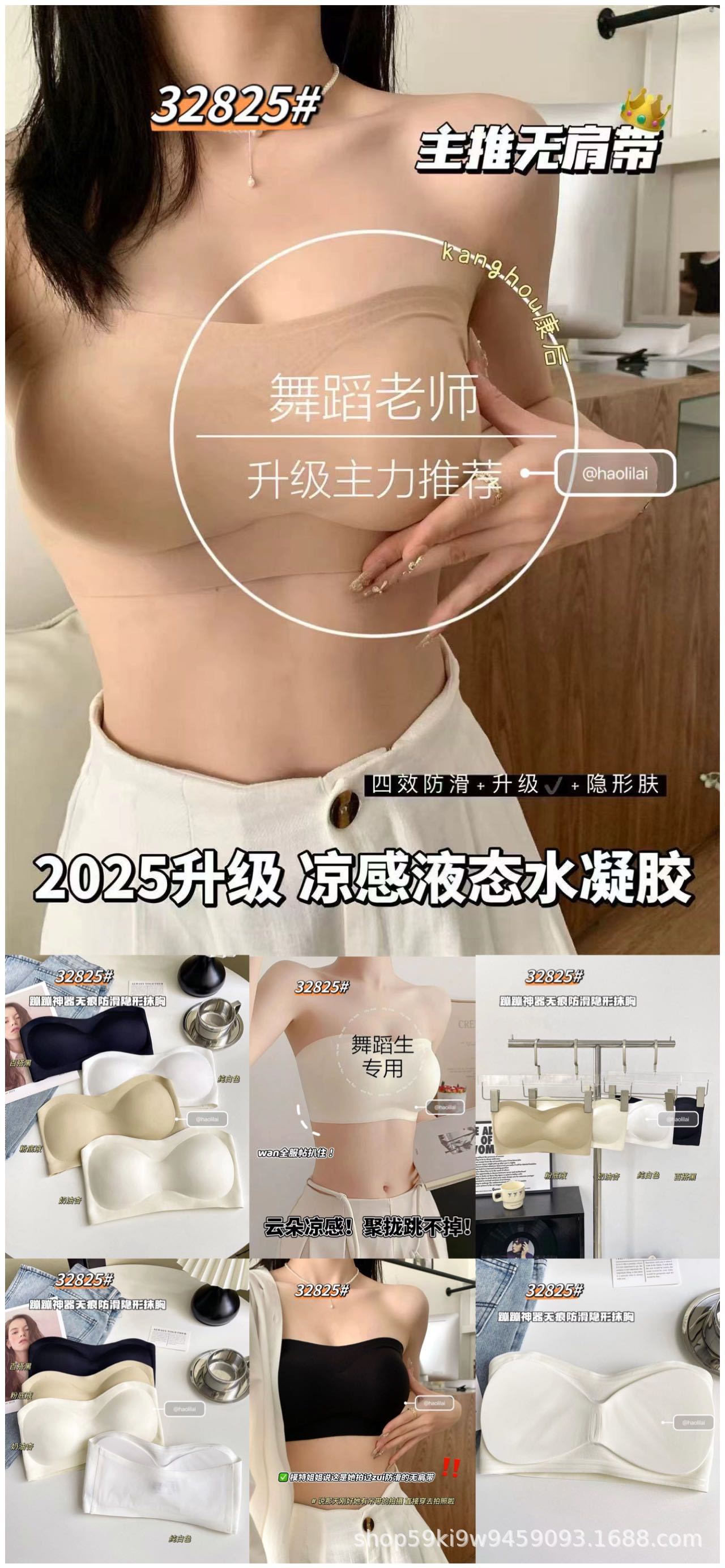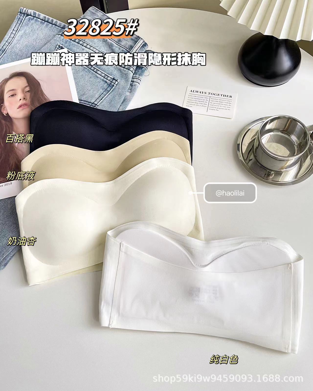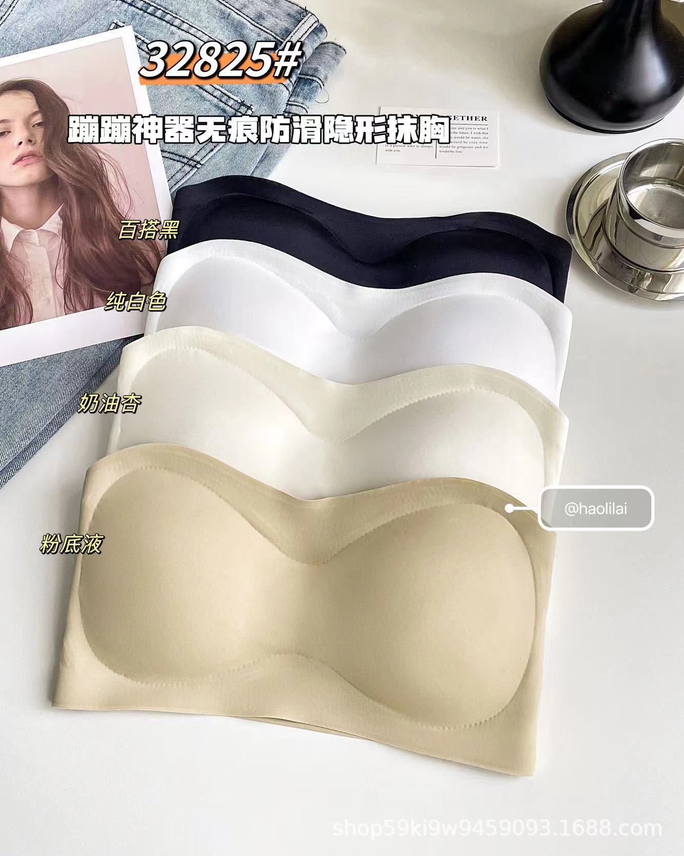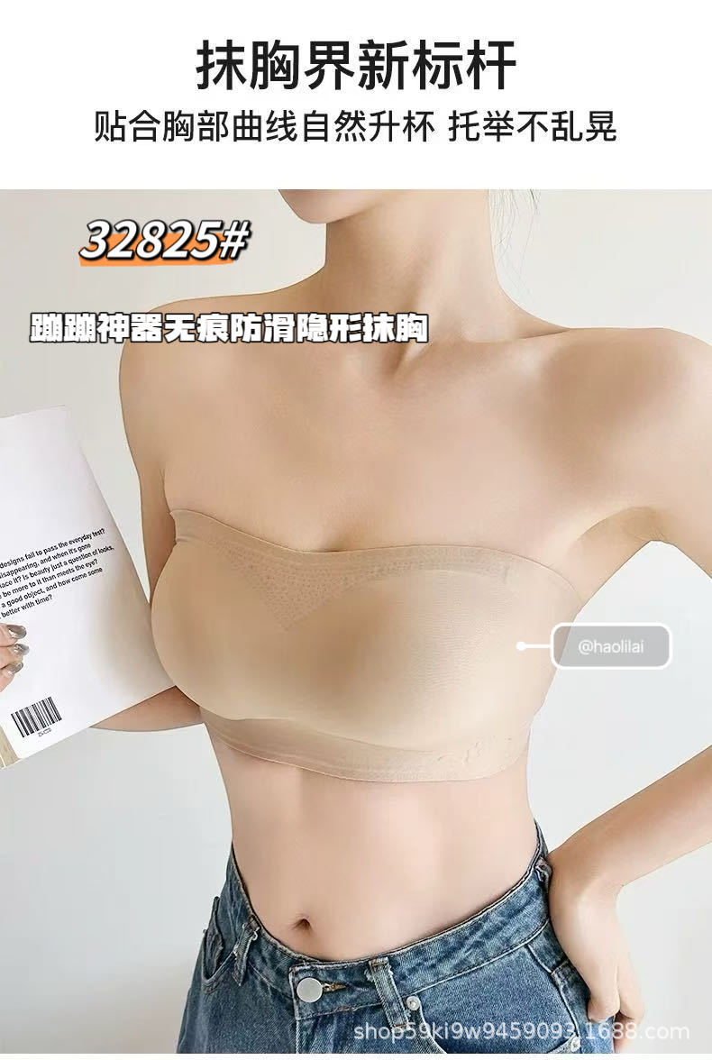 32825 # Bounce artifact, 흔적 없는 미끄럼 방지 보이지 않는 튜브 탑, 일체형 가슴 패드 내장, 슬림핏 푸쉬업 이너웨어 여성용