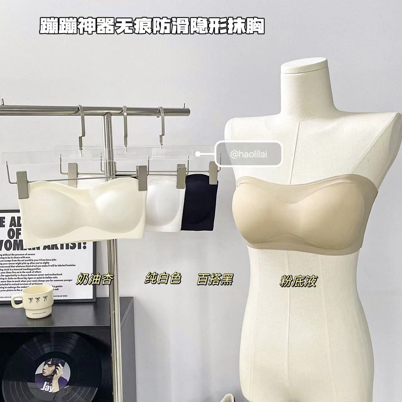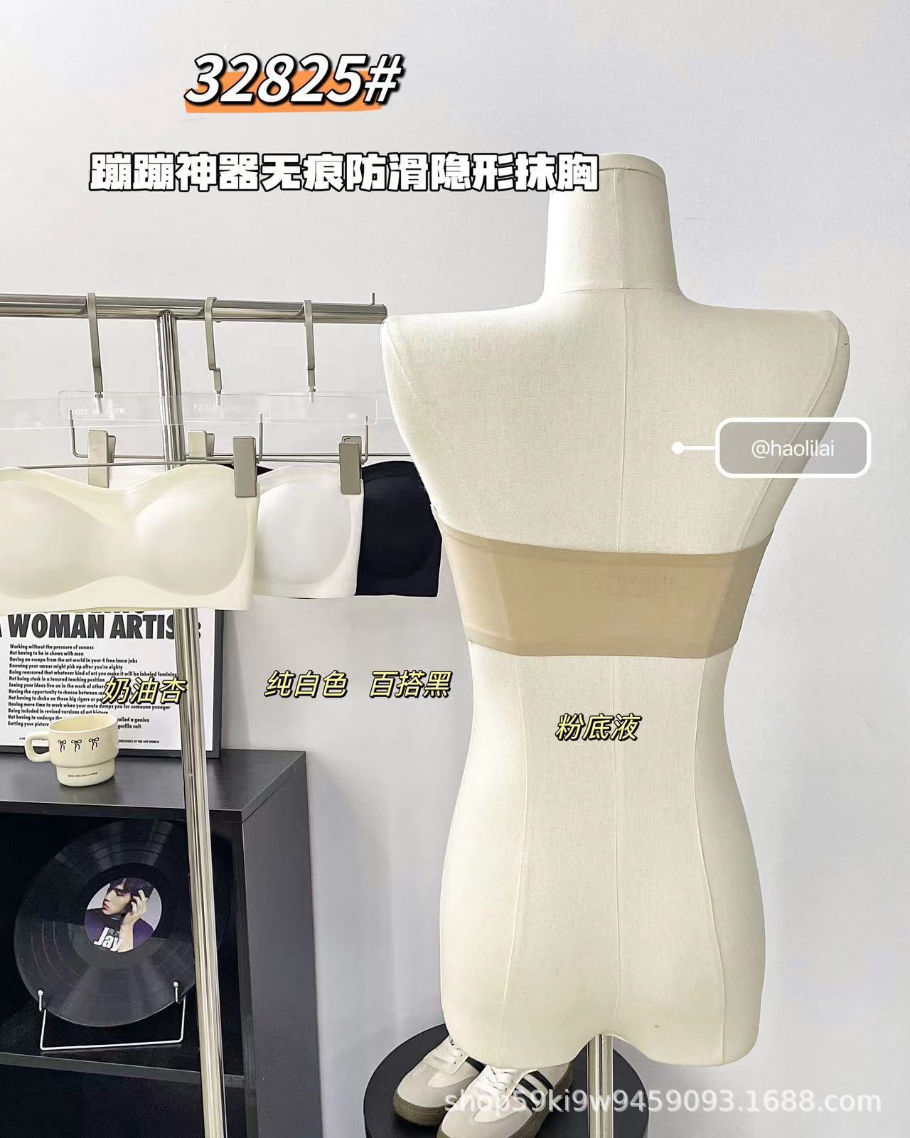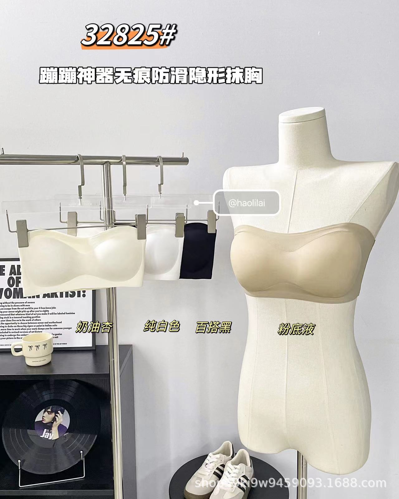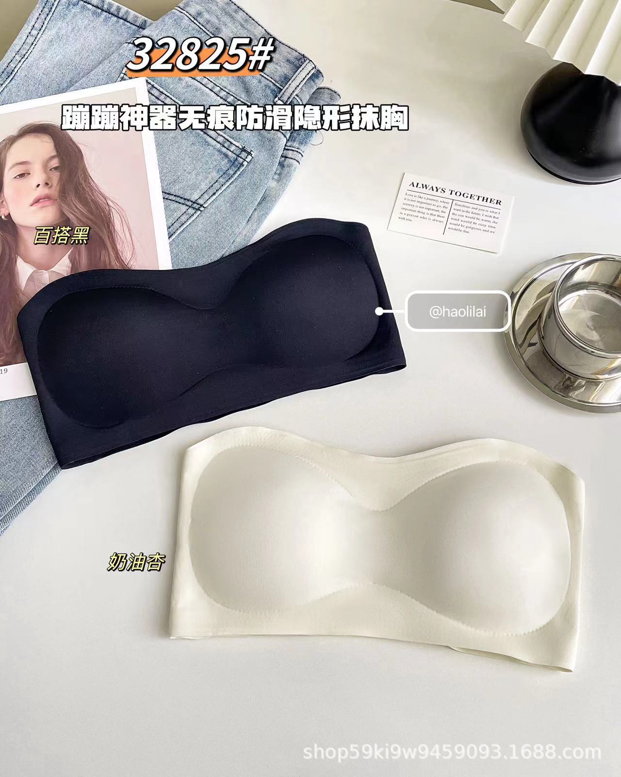32825 # Bounce artifact, 흔적 없는 미끄럼 방지 보이지 않는 튜브 탑, 일체형 가슴 패드 내장, 슬림핏 푸쉬업 이너웨어 여성용