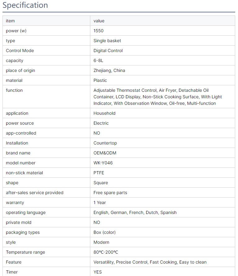 디지털 터치 스크린이 장착된 6-8L 스마트 컬러 스크린 에어 프라이어 7-in-1 요리 기능 가정용 주방 오일 프리 요리