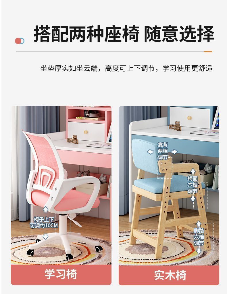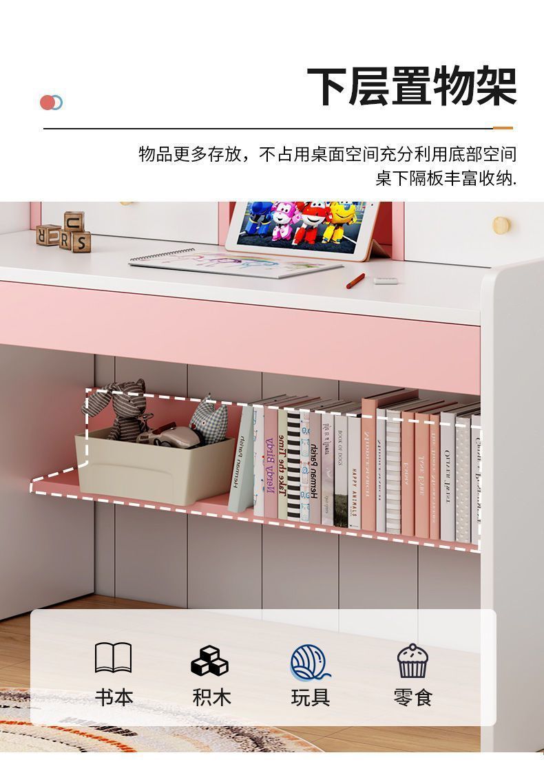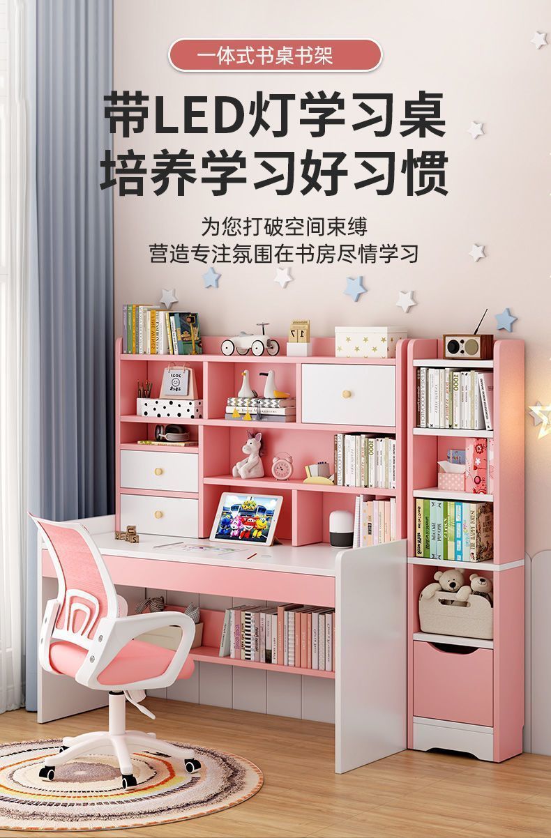 학생 책상, 책장, 책장 일체형 테이블, 초등학생 소녀 하트 책상, 학습 테이블, 간이 침실 컴퓨터 테이블