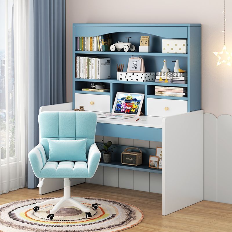 100 파란색 책상 + 책장 + 덮개를 씌운 의자