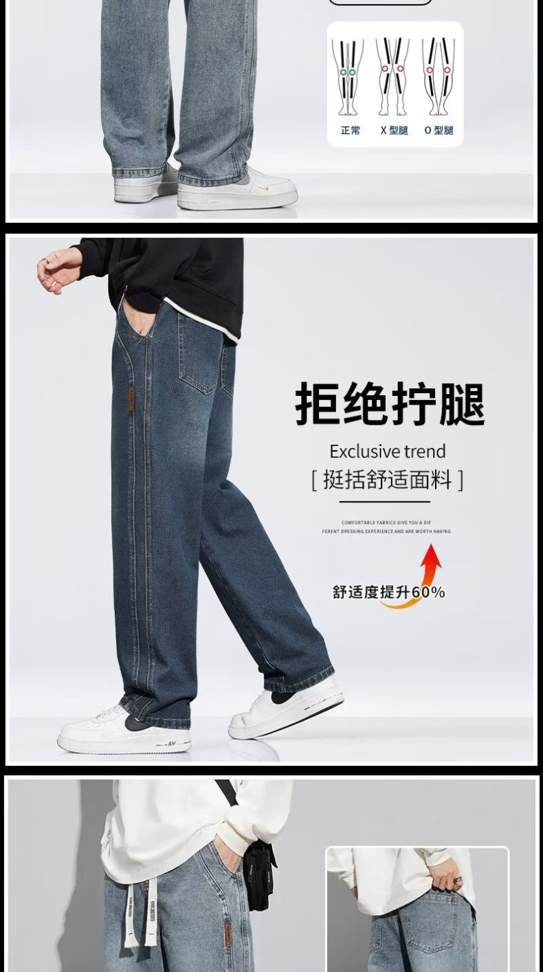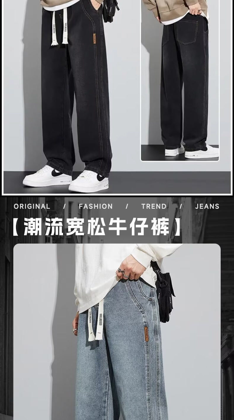 남성용 인기 미국 청바지 2025 봄, 가을 새로운 스타일 청소년 소년용 루즈 스트레이트 캐주얼 긴 바지