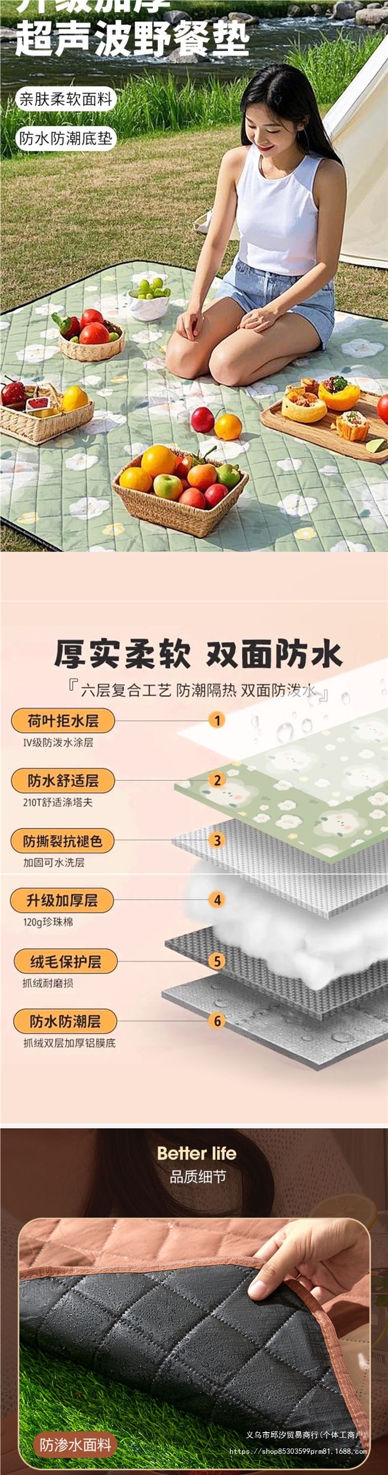 초대형 초음파 피크닉 매트, 방습 매트, 두꺼운 야외 캠핑 매트, 쿠션, 비치 매트, 휴대용 바닥 매트