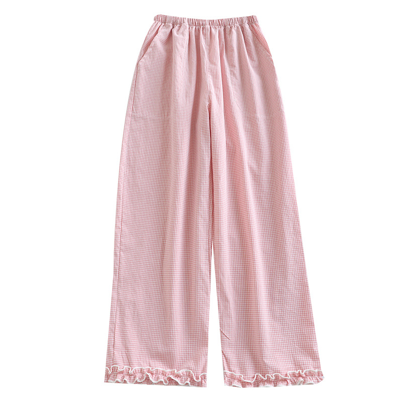 봄과 여름 격자 무늬 잠옷 순수 코튼 워시 코튼 얇은 여성의 느슨한 부드러운 홈 바지 느슨한 대형 바지