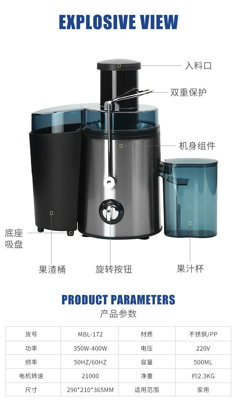 국경을 넘는 다기능 주서기, 주방용 전기 스테인리스 대용량 밀크티 제조기, 과일 분리 및 혼합 가정용