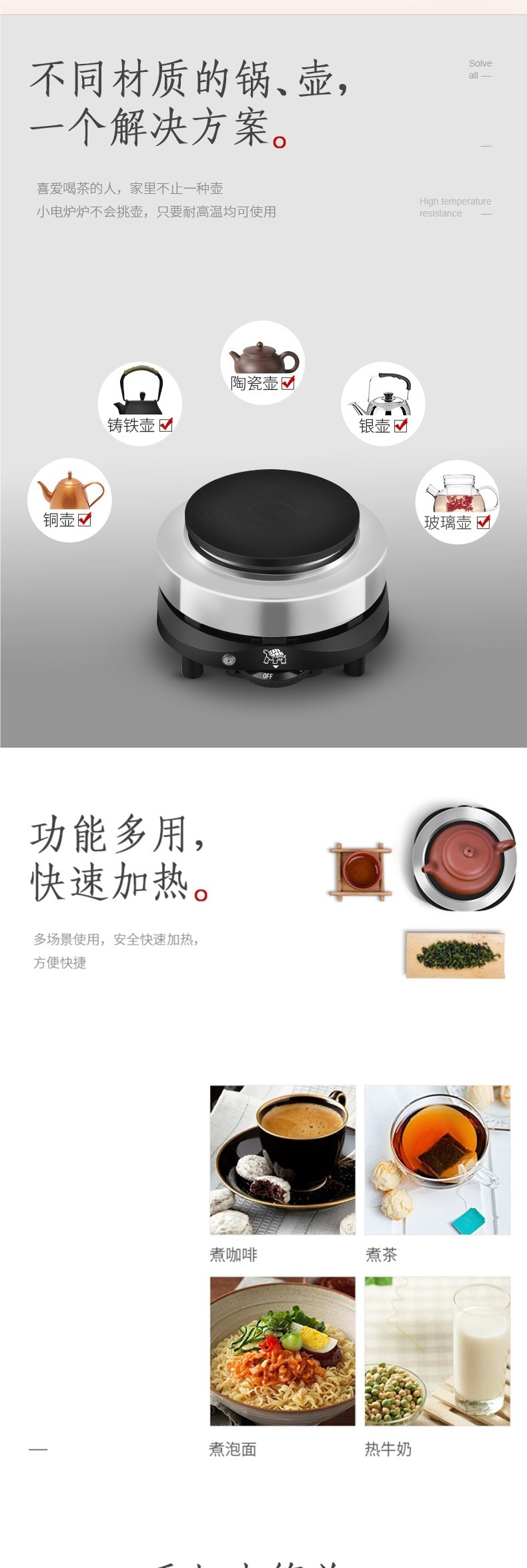 ●빠른 요리 미니 전기 세라믹 스토브 화이트