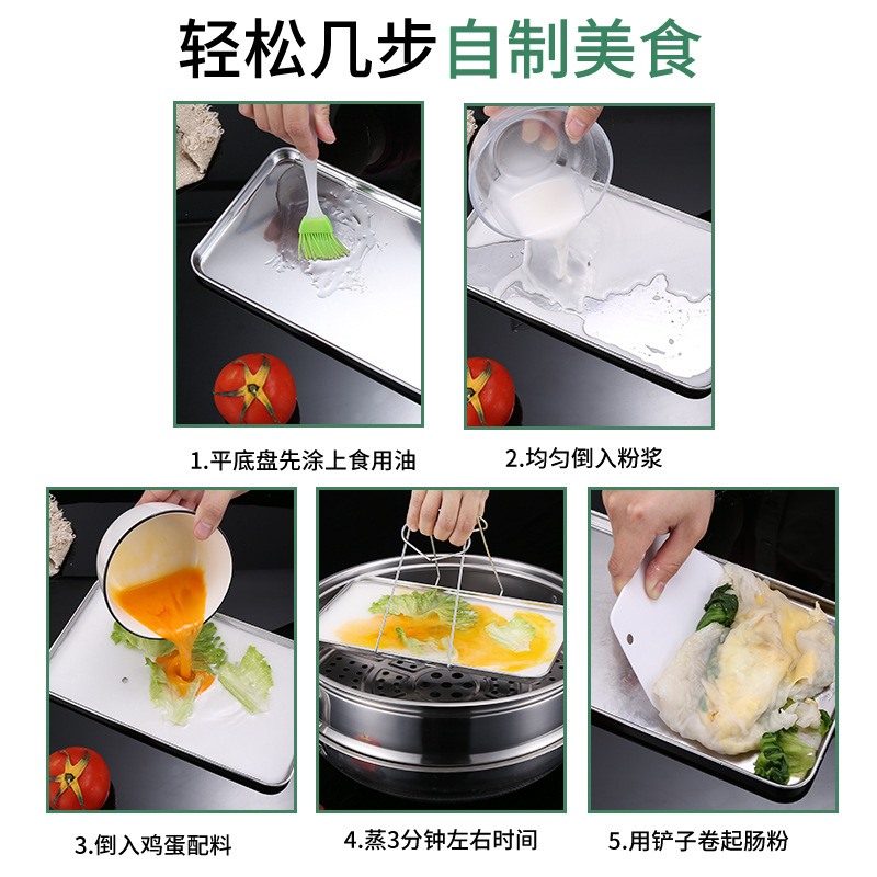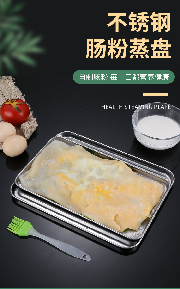 스테인레스 스틸 일본식 평면 사각형 접시 두꺼운 냉면 소시지 파우더 찜 접시 주방 베이킹 팬 304 요리 물 트레이