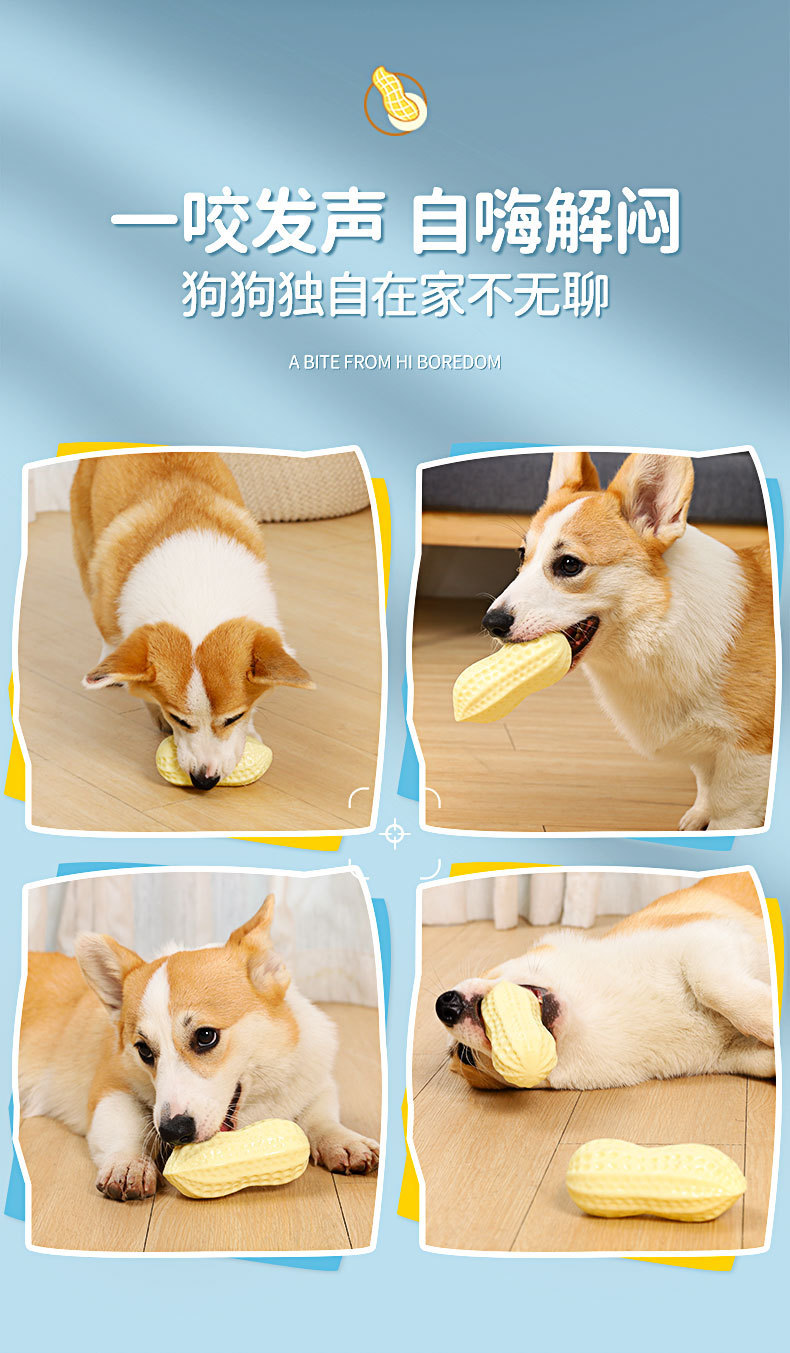 강아지 장난감, 물림 방지, 어금니 방지, 소리나는 땅콩 장난감, 중형 및 대형 애완견, 코기 프렌치 불독, 지루함 해소 도구