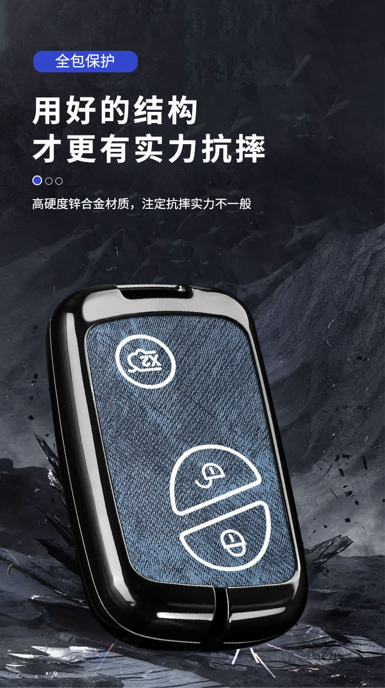 A형 3버튼 - 데님 패턴 [건쉘 블루 가죽] + 핸드 스트랩 버클