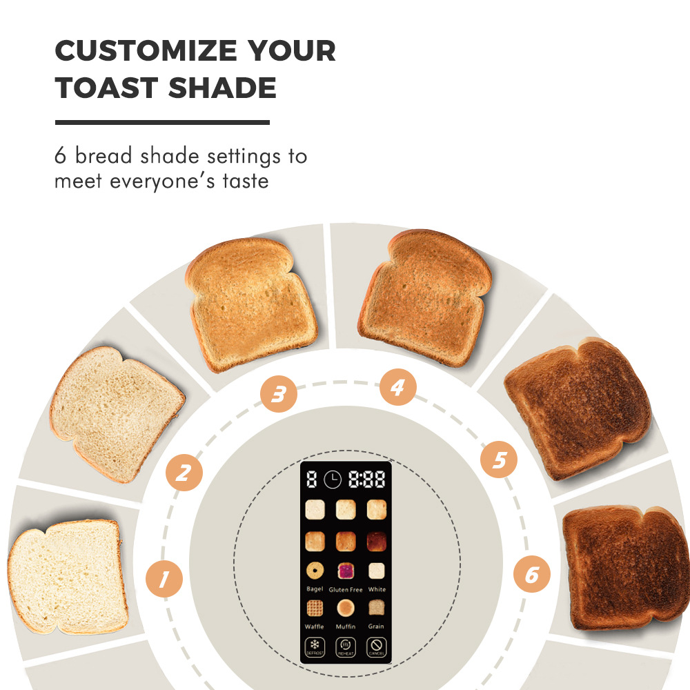 • digital screen ,shows the selected toast shade setting and countdown at a glance