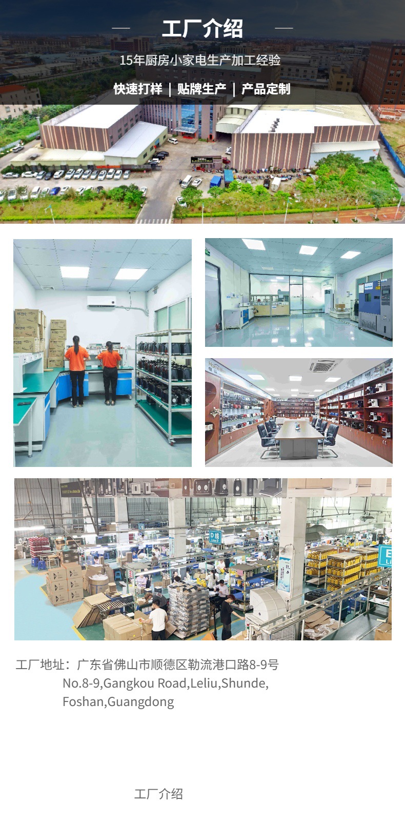 Benefiting from the advantages of Shunde’s strong home appliance product industry chain,huge regional distribution network and fast logistics,our goal is to produce personalized,multi-functional and convenient home appliance.We insist on independent development,