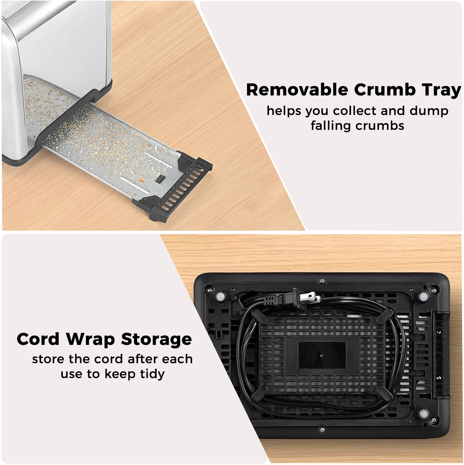 • 9 Smart functions: Bagel, Gluten Free, White, Waffle, Muffin, Grain, Defrost, Reheat, Cancel,add time