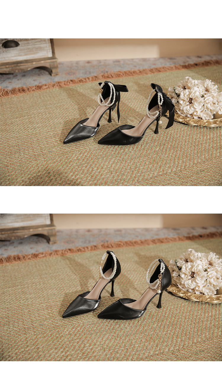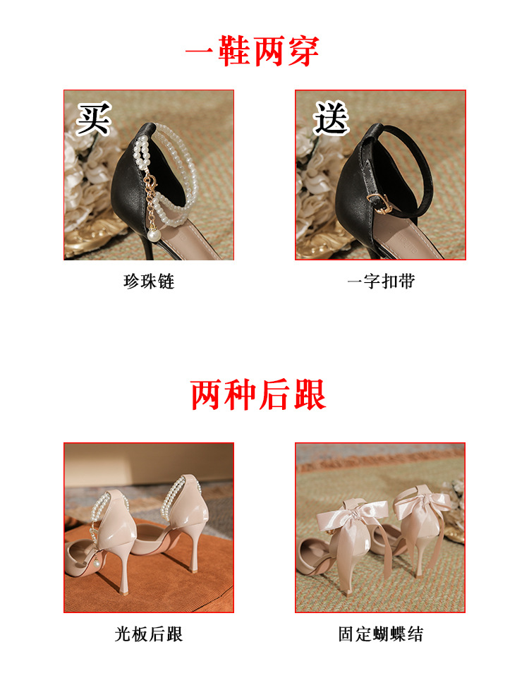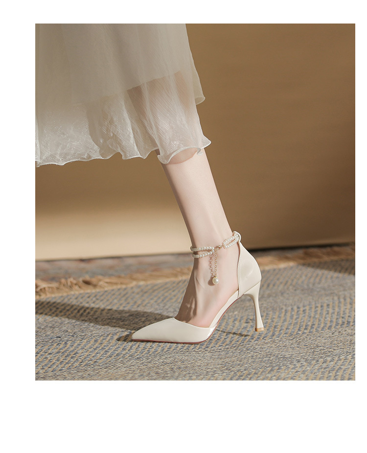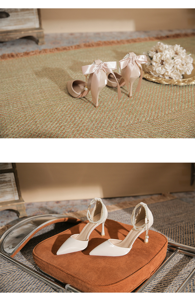 발이 피곤하지 않은 여성용 얇은 굽의 고급 누드 포인티드 토 하이힐 2024 신상 여름 중공기질 하이힐 샌들