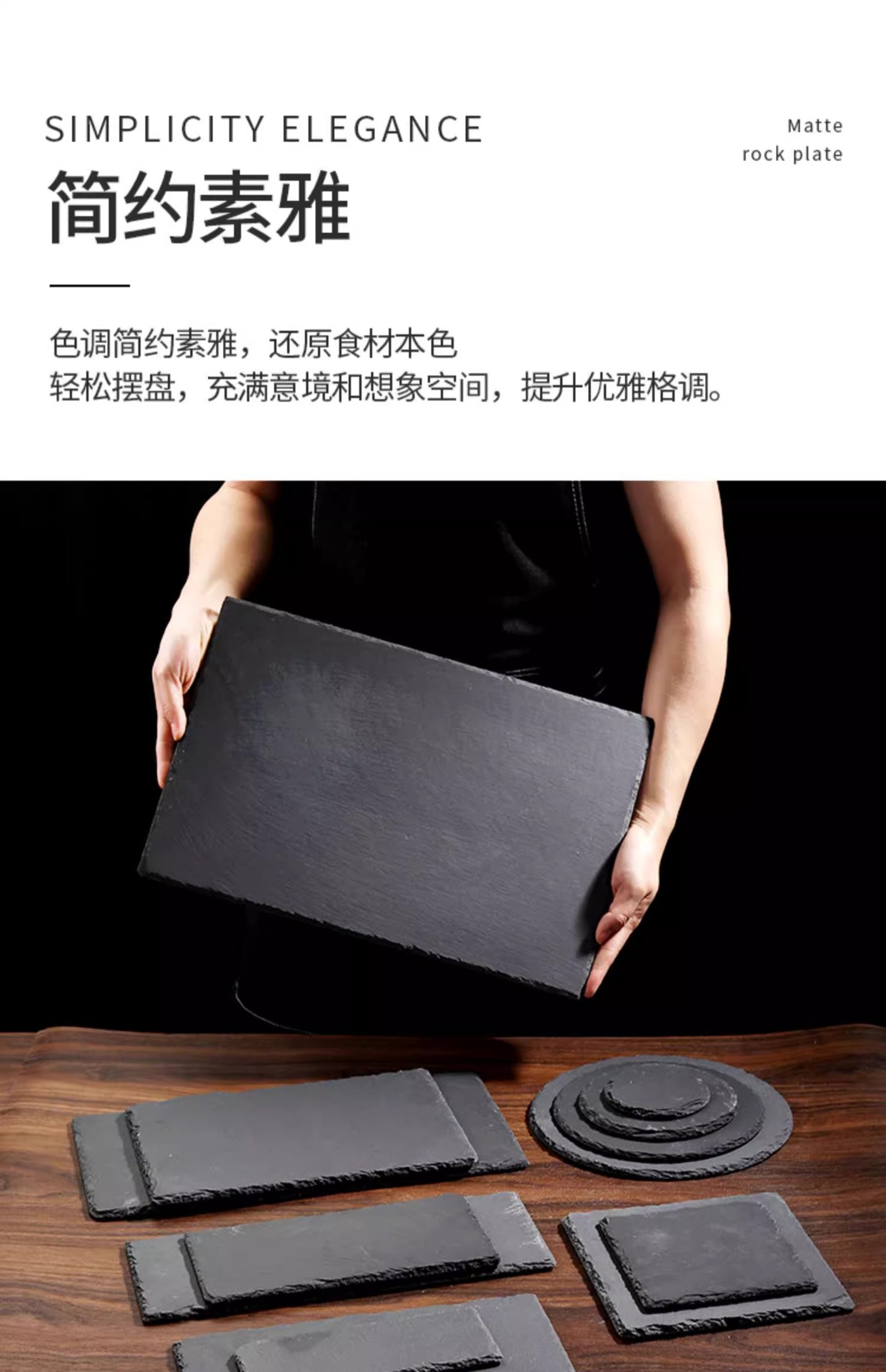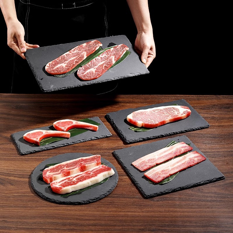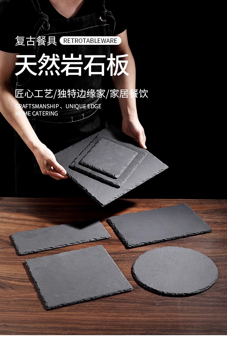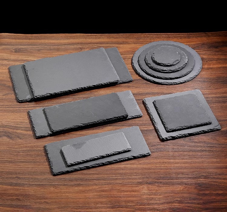 락 디너 플레이트 블랙 슬레이트 플레이트 일본 요리 스시 플레이트 식기 서양 스테이크 스톤 트레이 슬레이트 플레이트