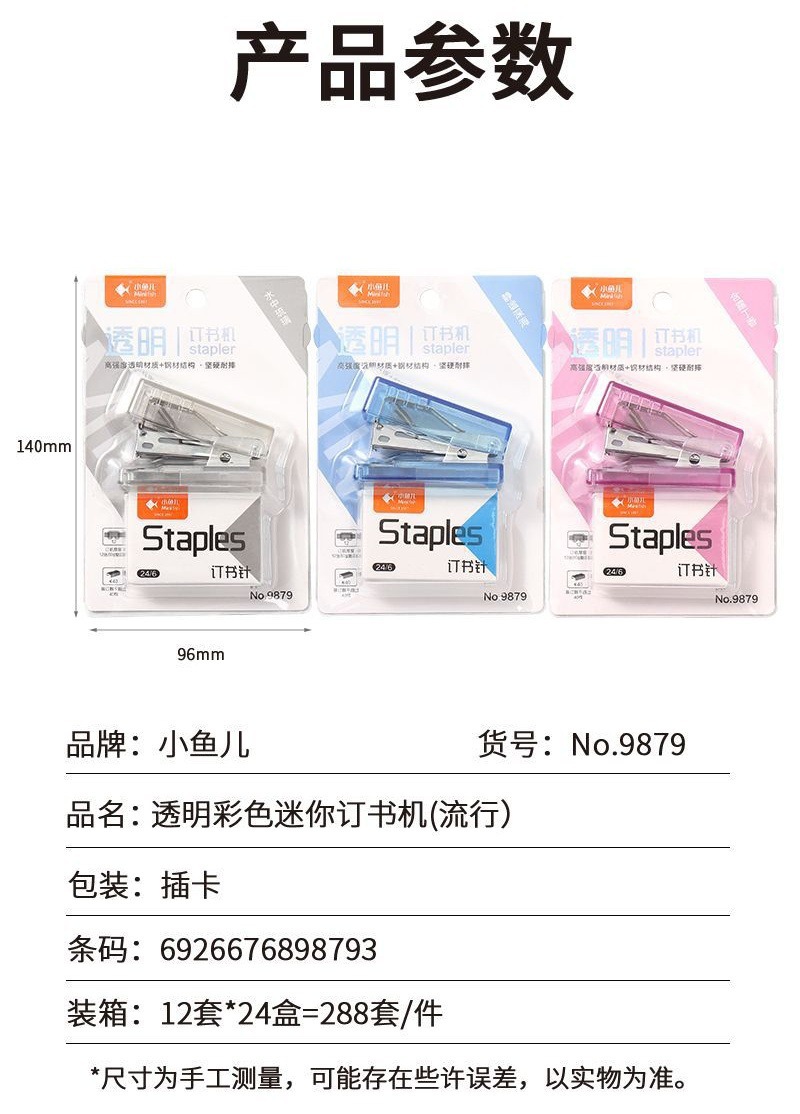 Xiaoyuer 귀여운 미니 바인더 스테이플 투명 스테이플러 세트 사무용품 학생 상품 선물