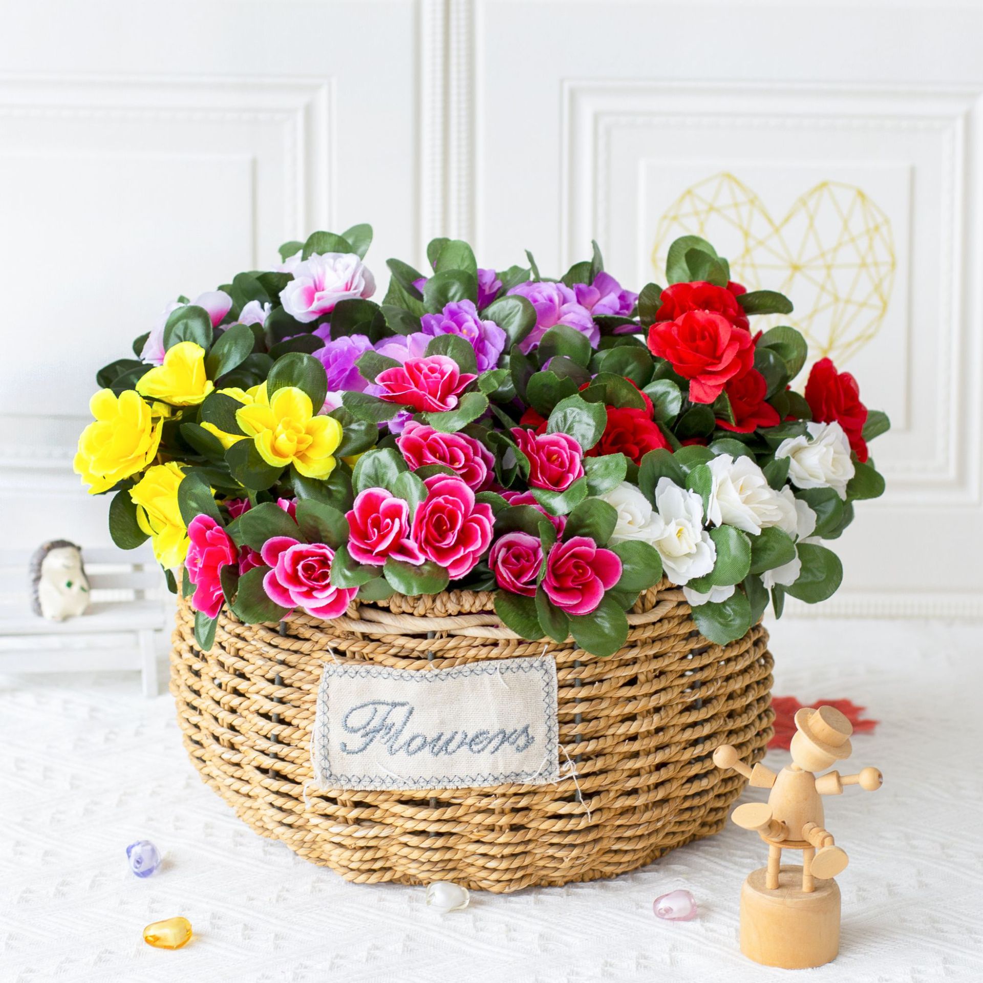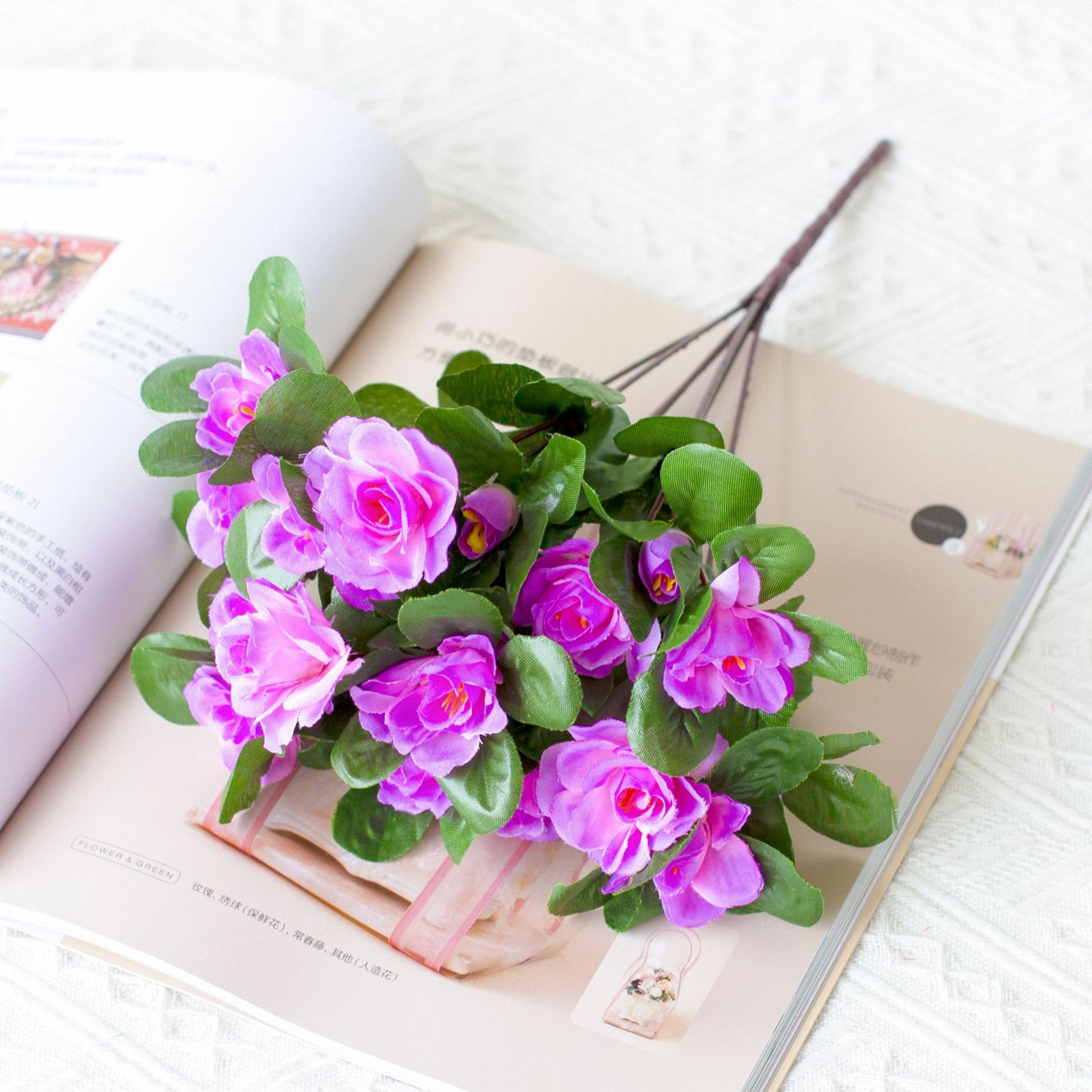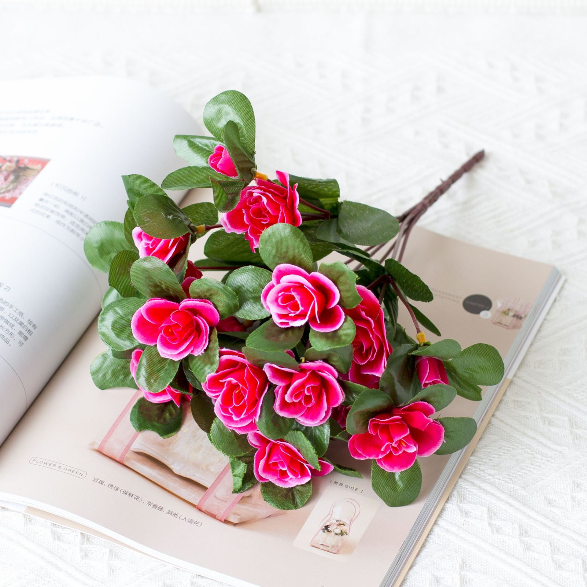 도매 시뮬레이션 7 머리 진달래 침실 결혼식 실내 및 실외 프로젝트 홈 장식 가짜 꽃다발