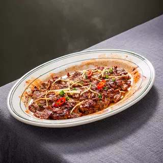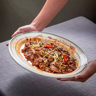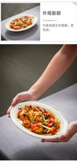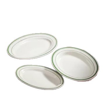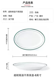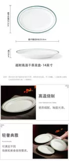 초고온 저항성 Shunde 건식 찜갈비 특수 두꺼운 세라믹 접시 타원형 미국식 바베큐 녹색 라인 식기