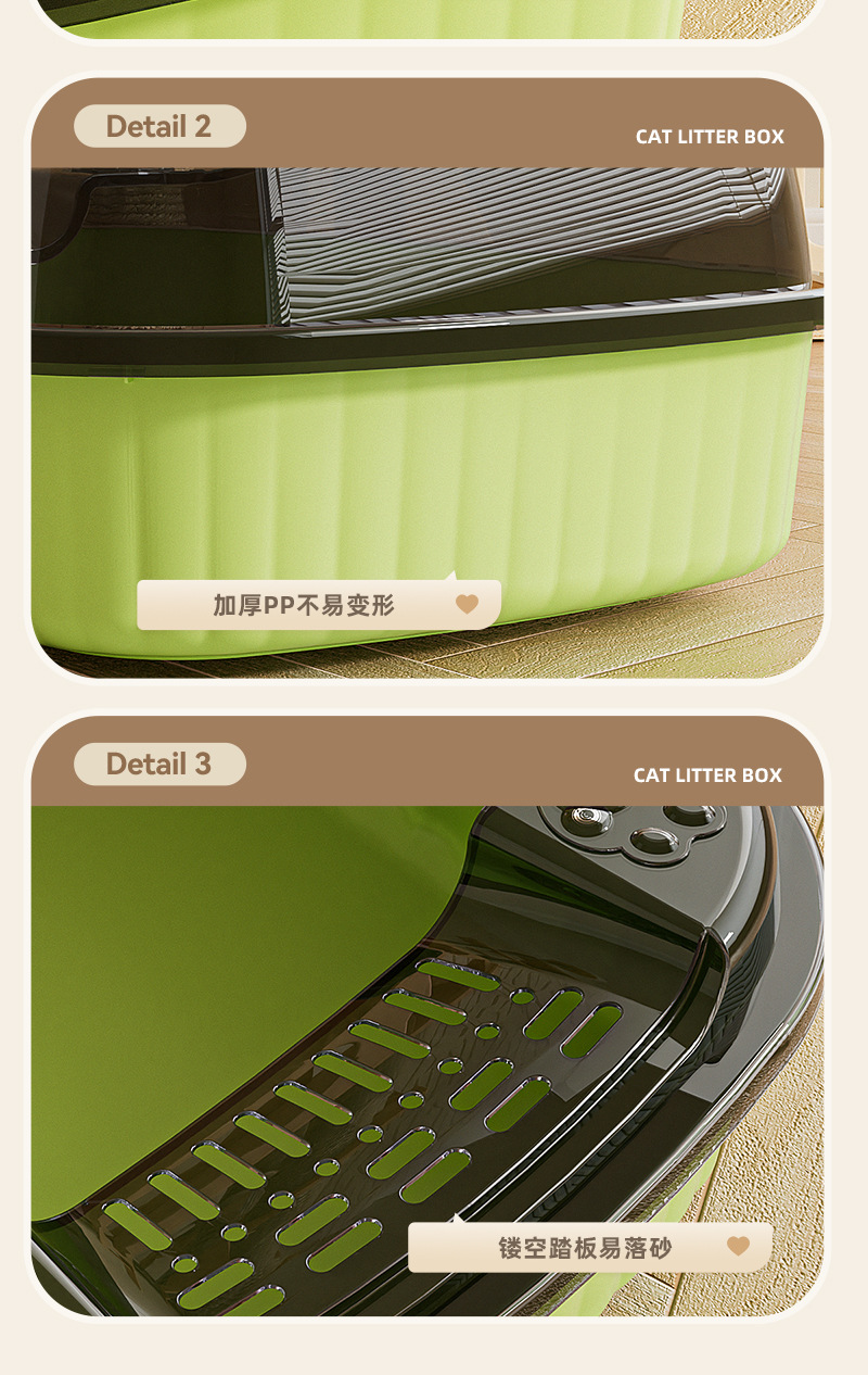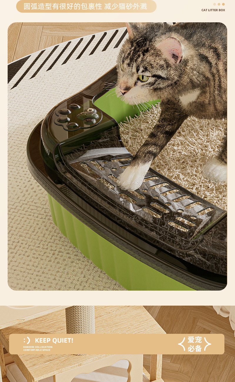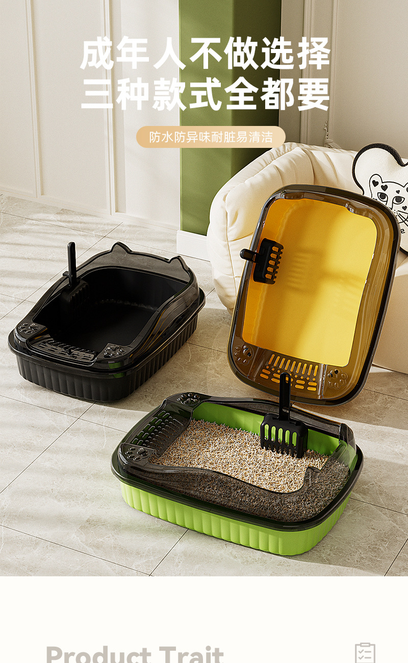 폭과 높이가 확장된 방수 반밀폐형 고양이 화장실, 초대형 고양이 화장실, 고양이 청소 애완동물 용품, 고양이 화장실