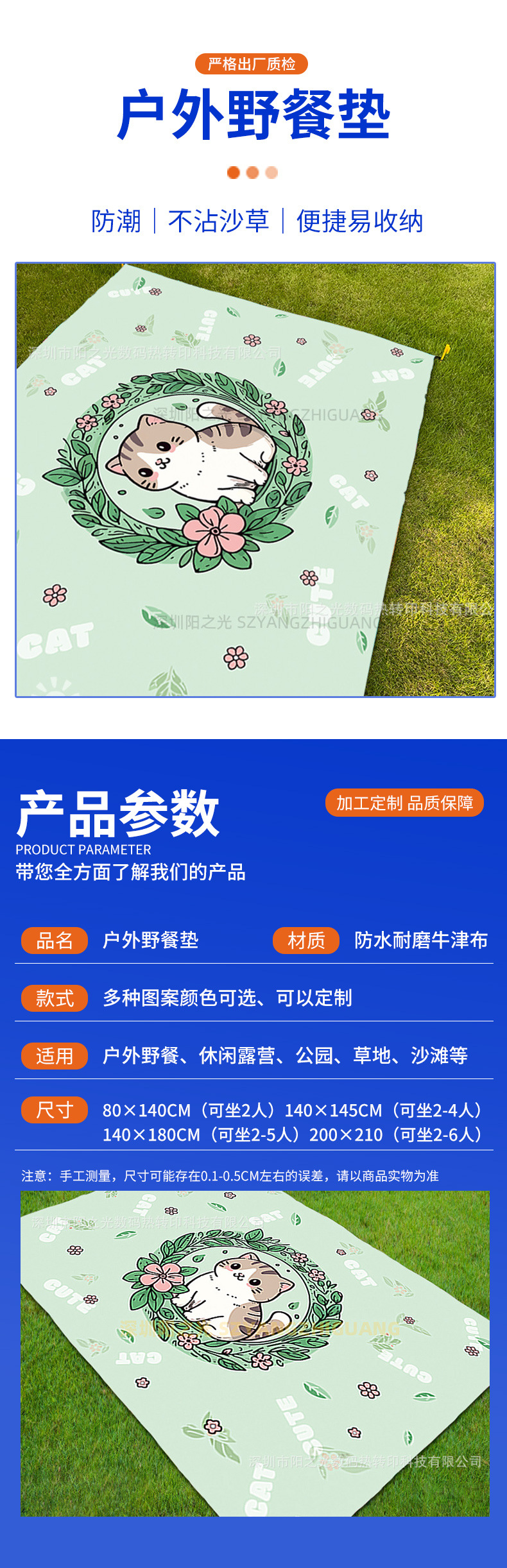캠핑 캠핑 방습 매트 두꺼운 옥스포드 천 피크닉 매트 야외 휴대용 방수 비치 매트 쿠션 화환 고양이