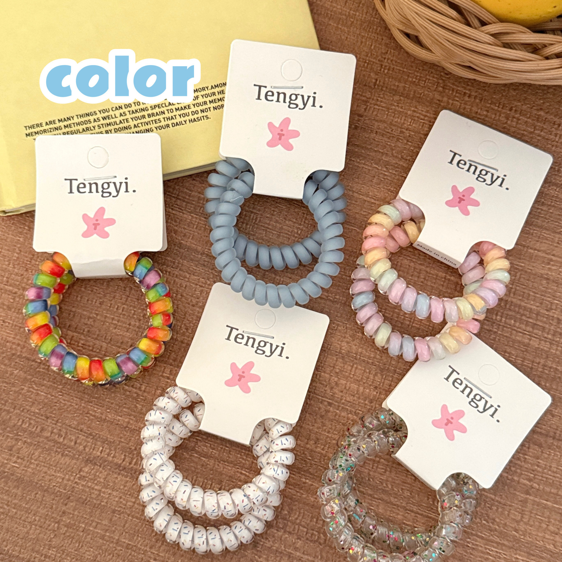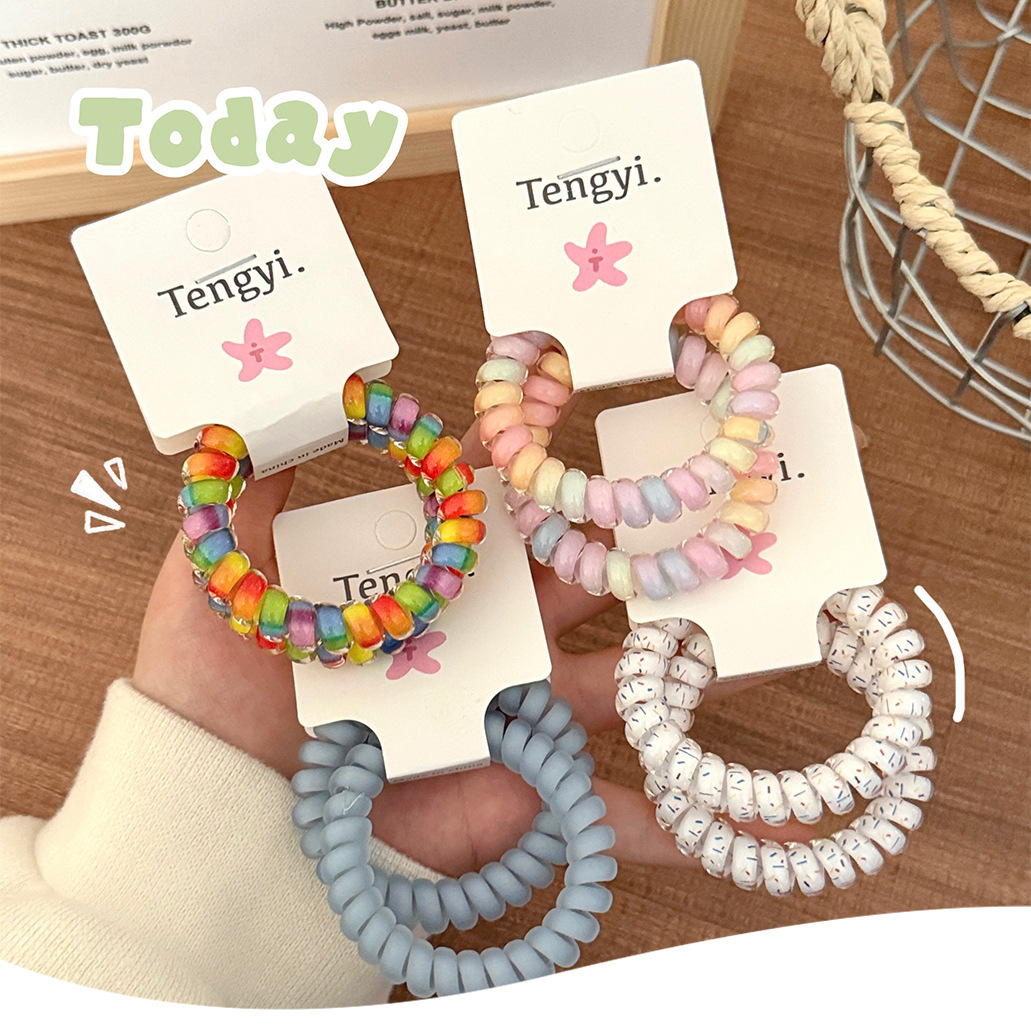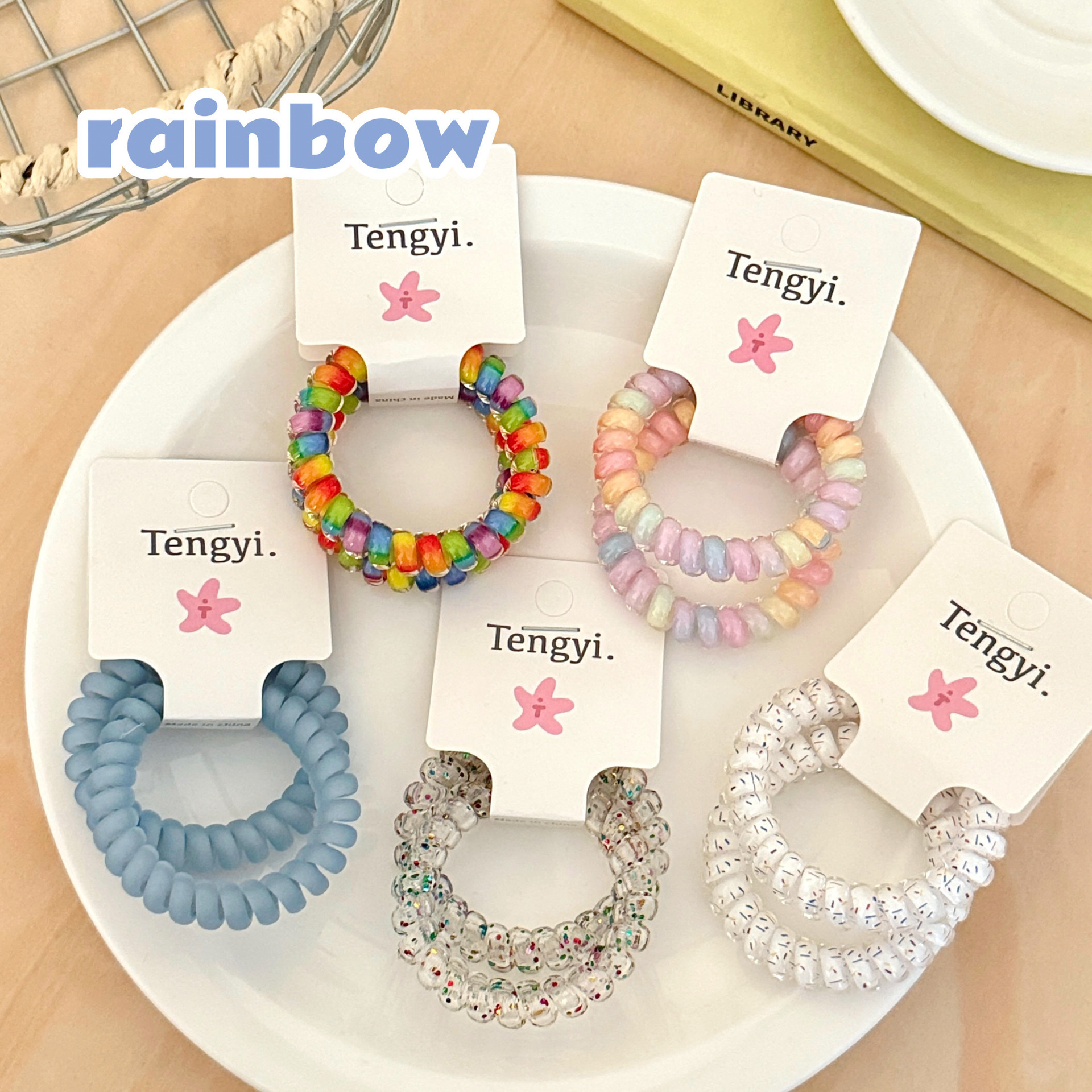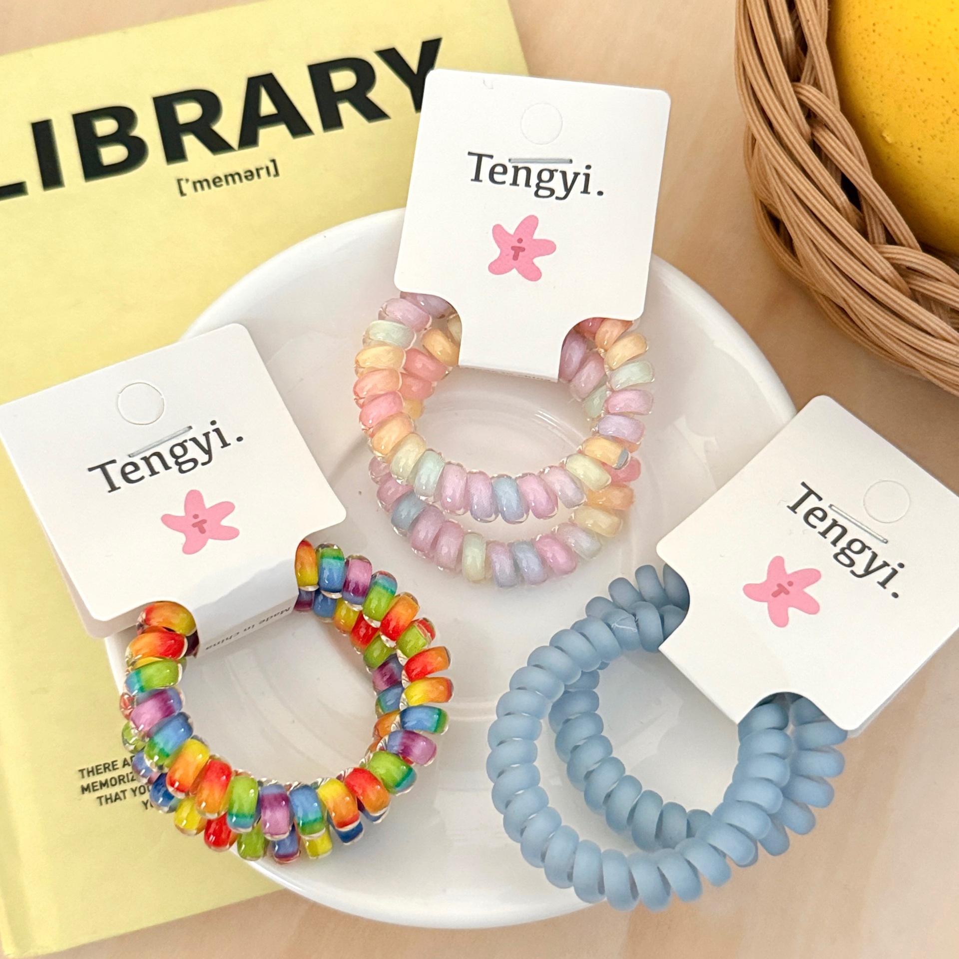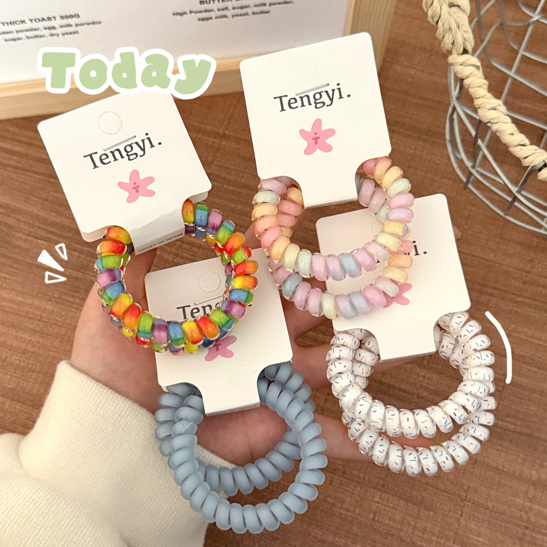 새로운 무지개 그라데이션, 흔적 없음, 손상 없음, 전화선 머리끈, 소녀의 간단한 머리 장식, 머리끈, 다용도 헤어 액세서리
