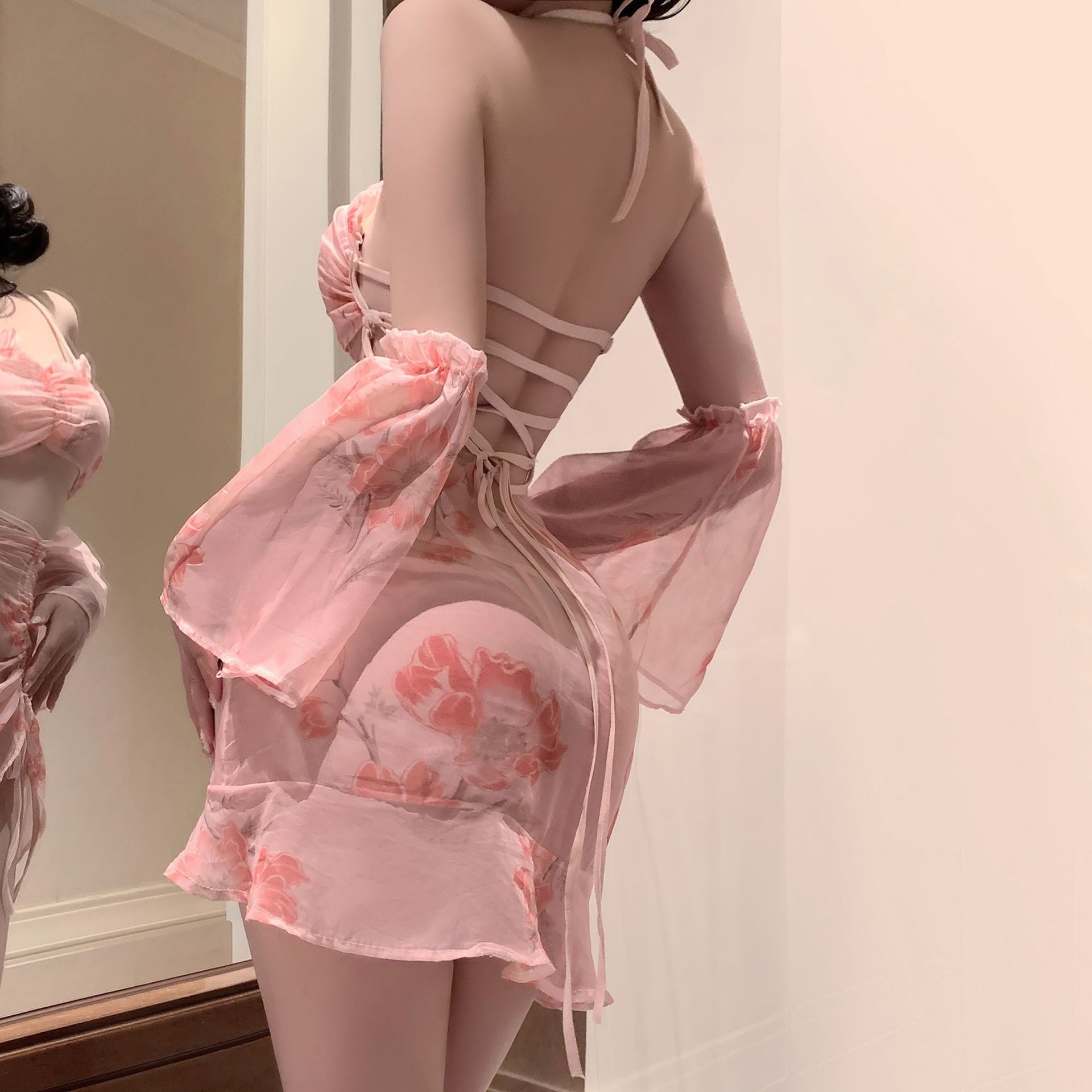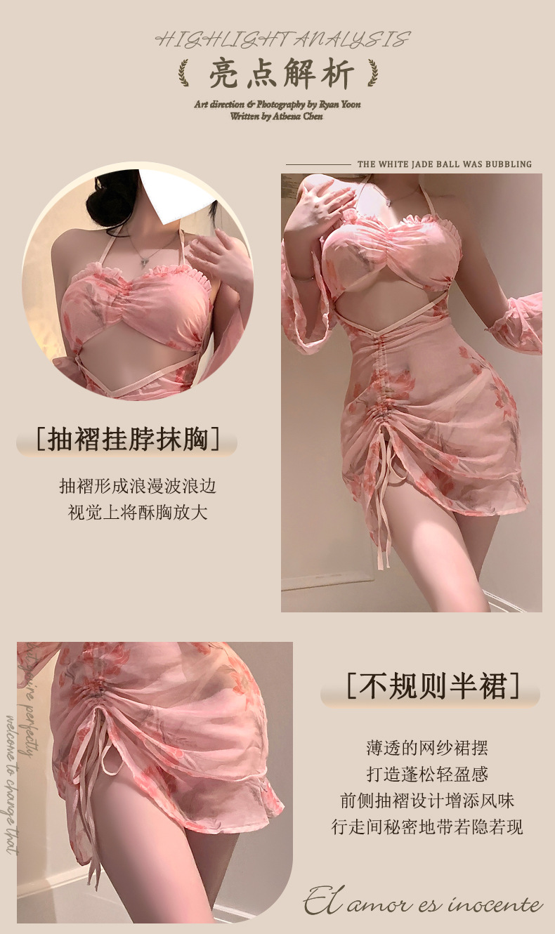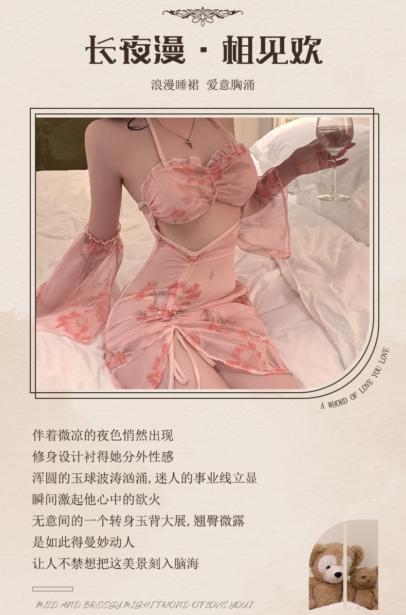 달콤한 머리카락 프렌치 메쉬 서스펜더 섹시 속옷 섹시 드레스 순수한 욕망 감정 잠옷 침대 금욕 유니폼