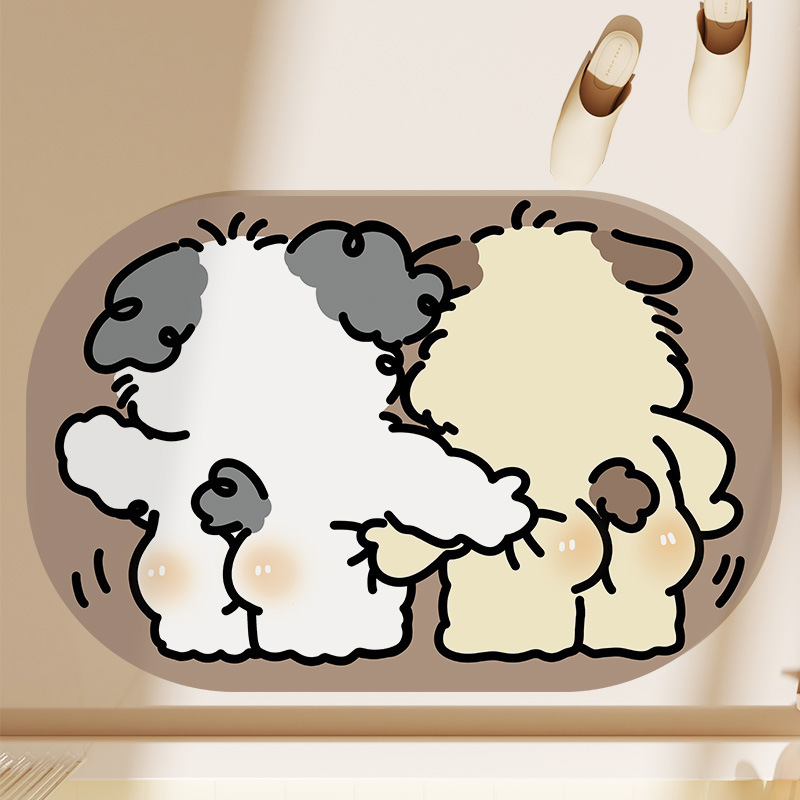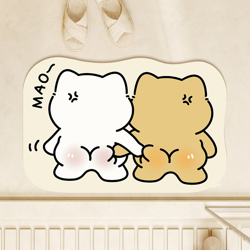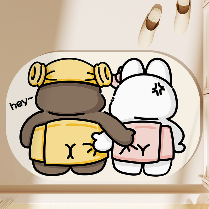 귀여운 작은 동물 규조토 진흙 흡수성 바닥 매트 화장실 욕실 문 미끄럼 방지 발 매트 만화 목욕 문 매트
